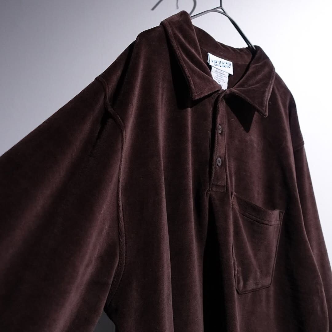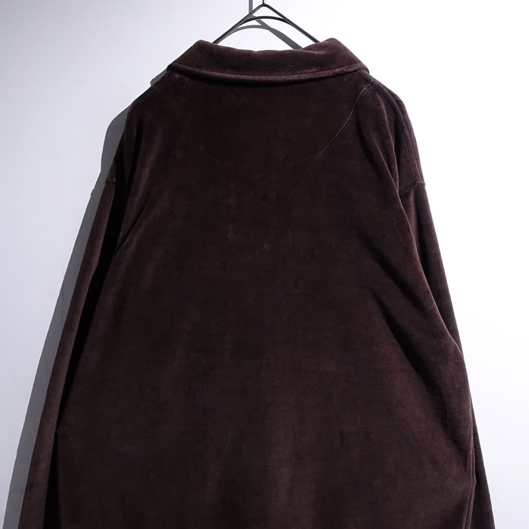 90s Brown Velour Fabric Polo Shirt