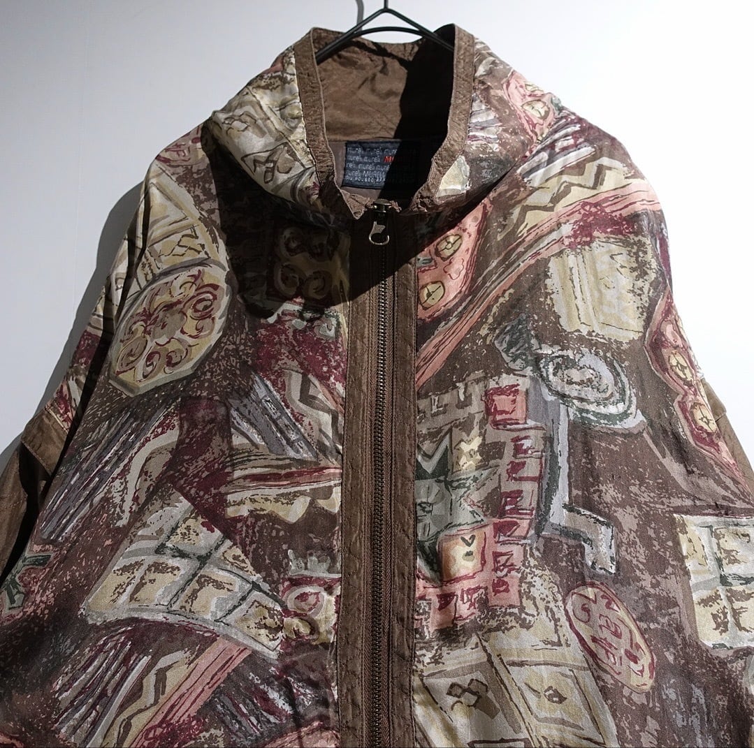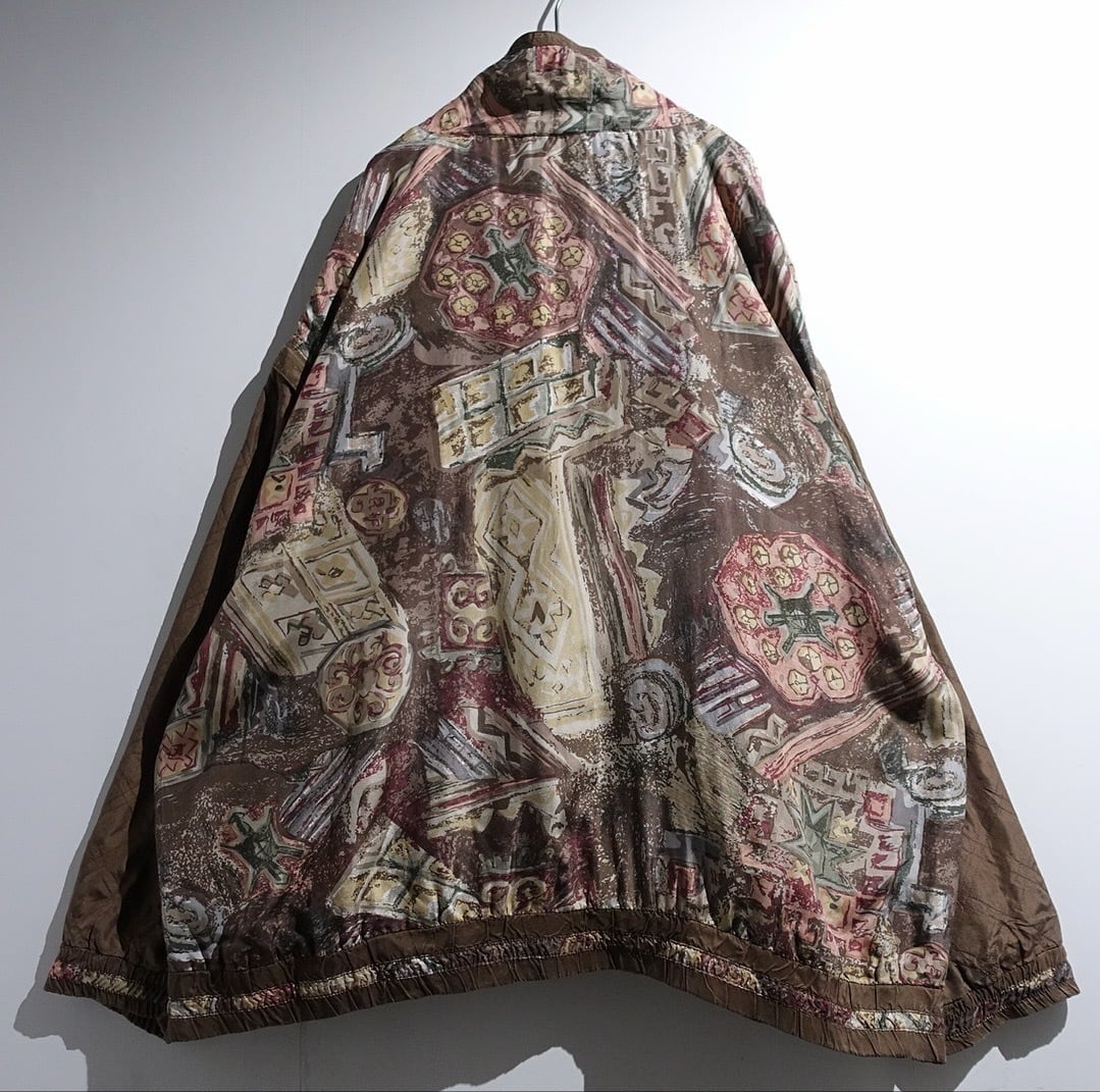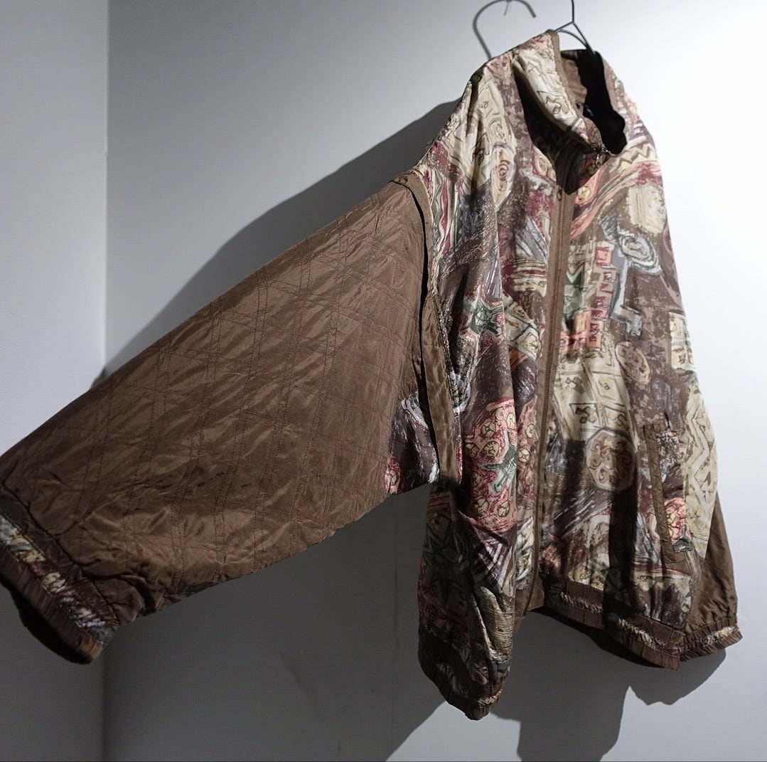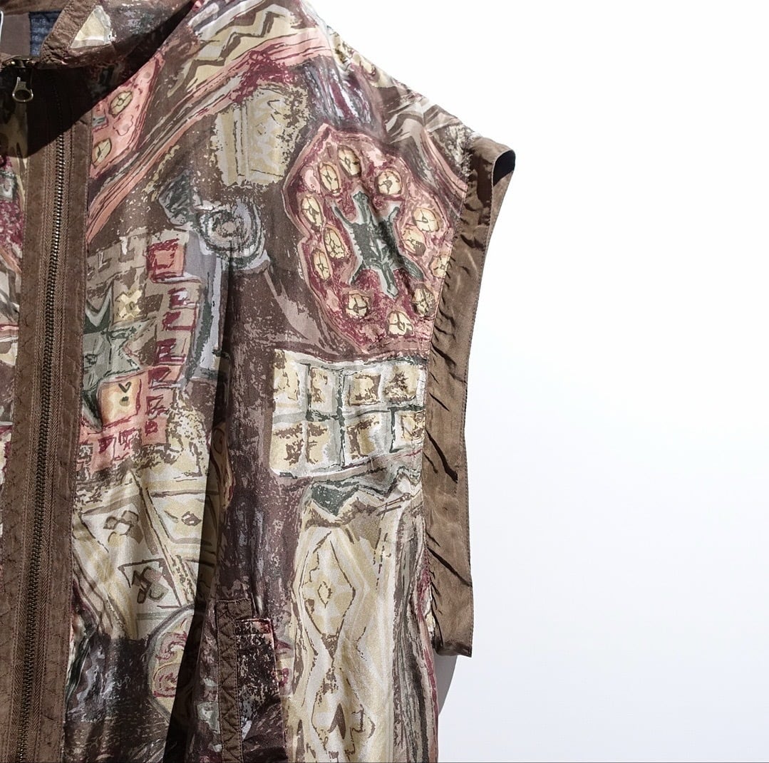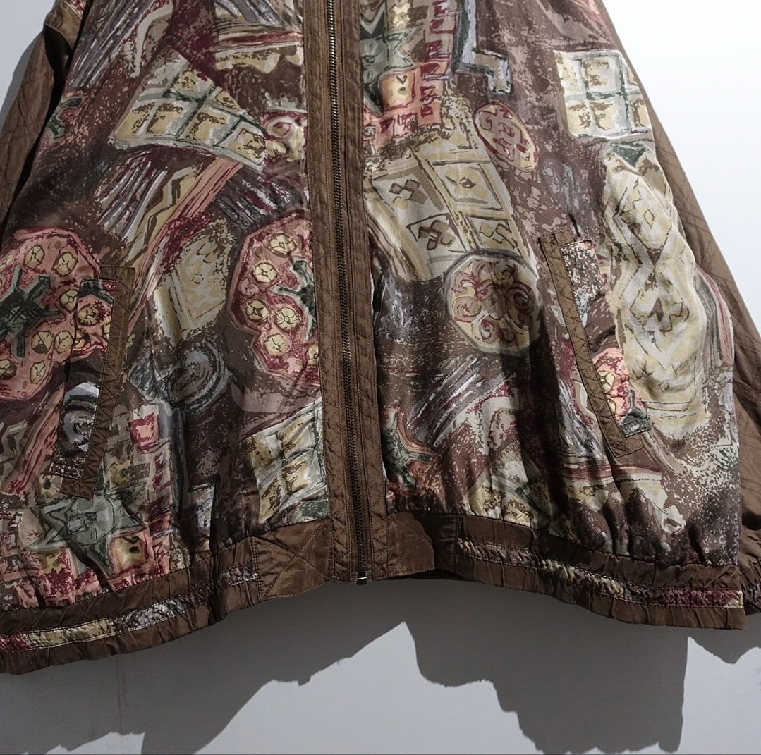 90s Brown Artistic Patterned Detachable Silk Blouson