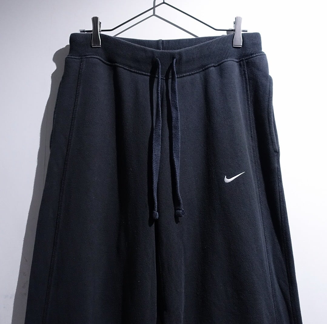 00s "NIKE" Black Logo Curved Stitchwork Design Wide Straight Sweat Pants
