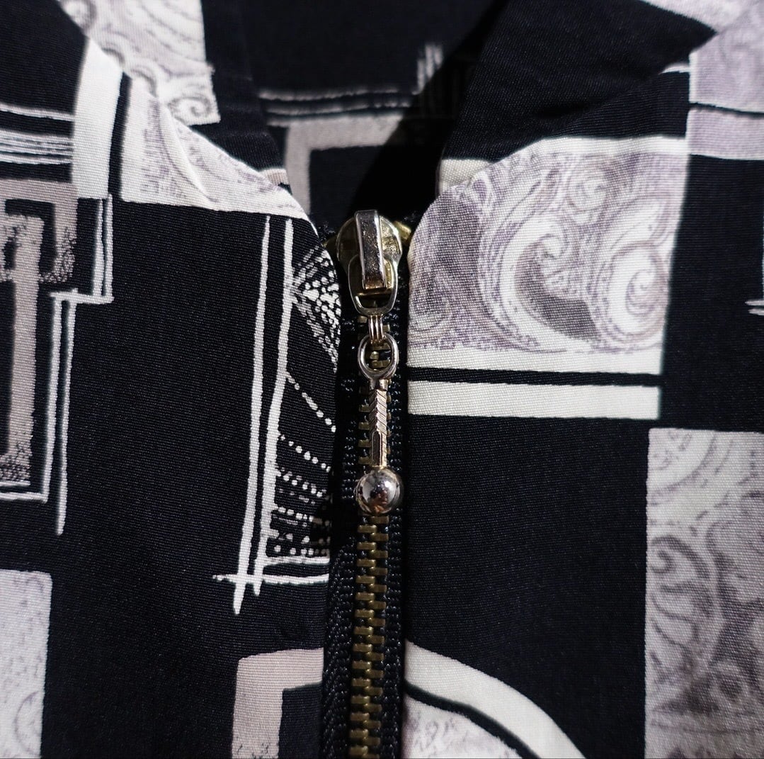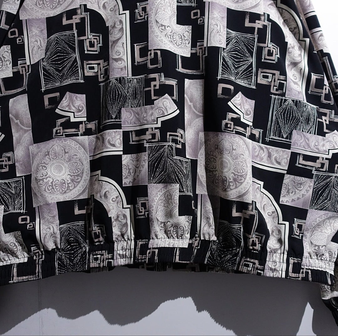 90s Monotone Geometric Artistic Pattern Design Blouson