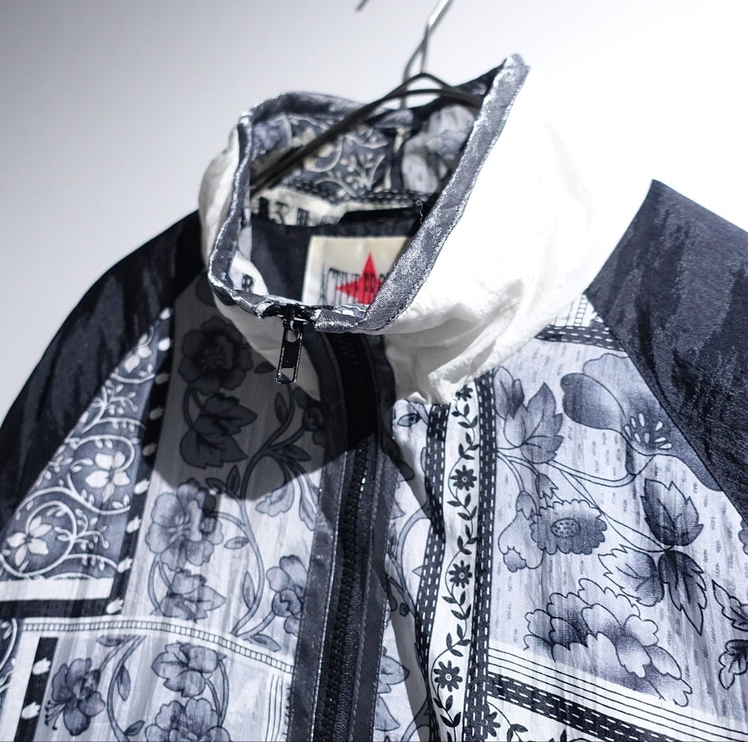90s Monotone Flower Pattern Switching Desgin Nylon Blouson