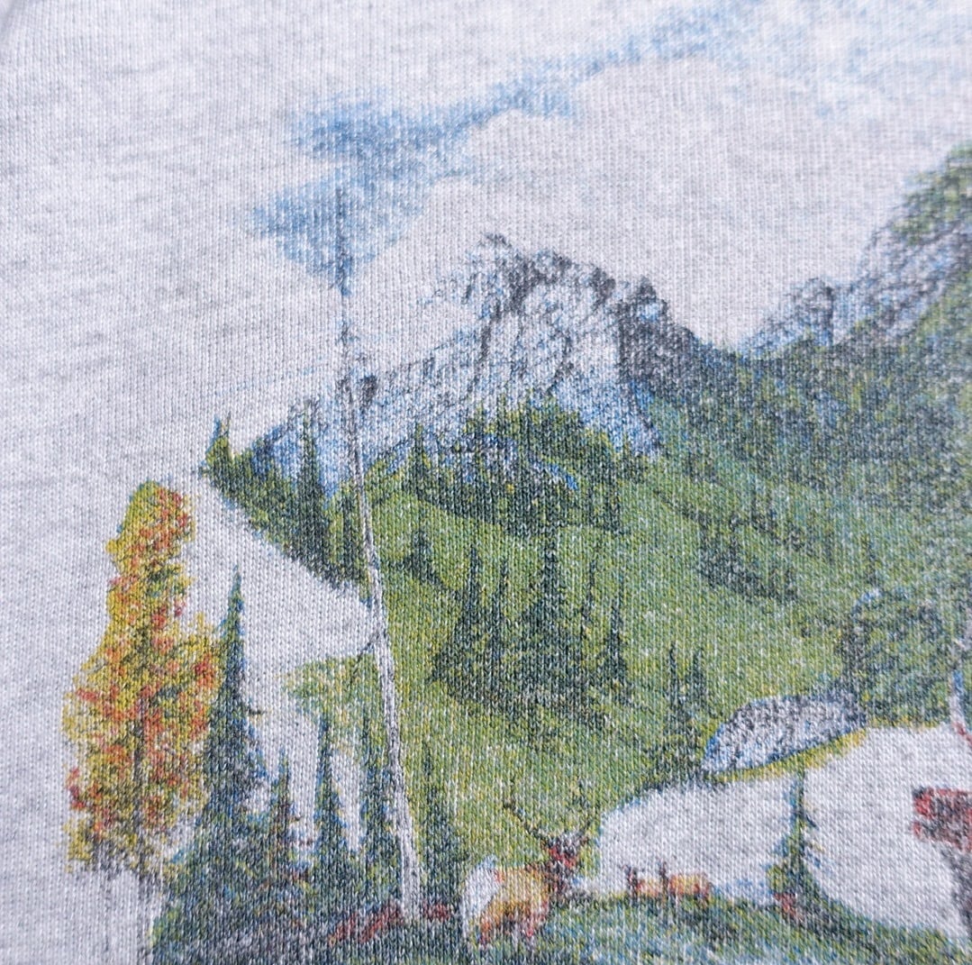 90s "JERZEES" Gray Fall Landscape Elk Artistic Print Sweat