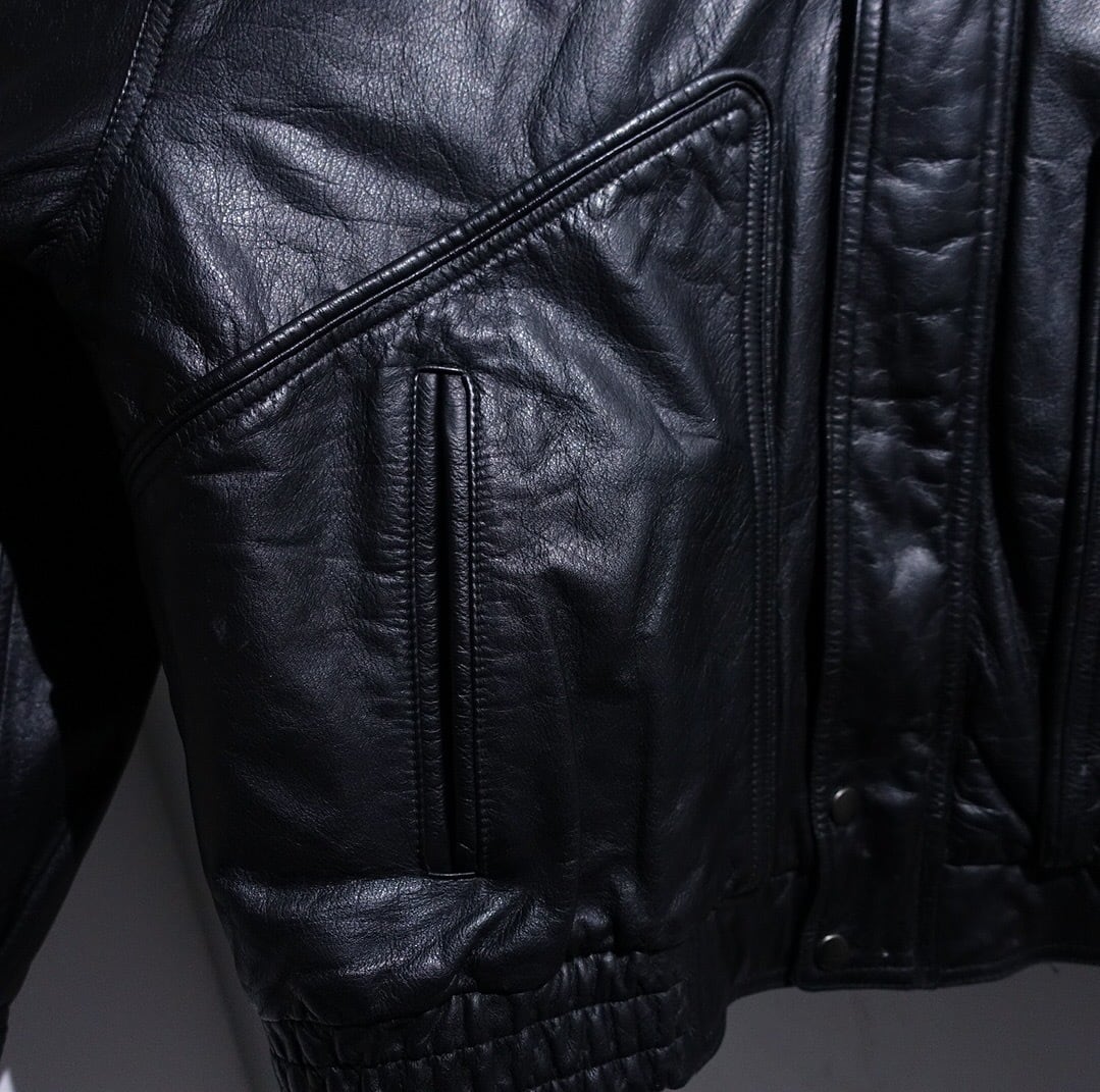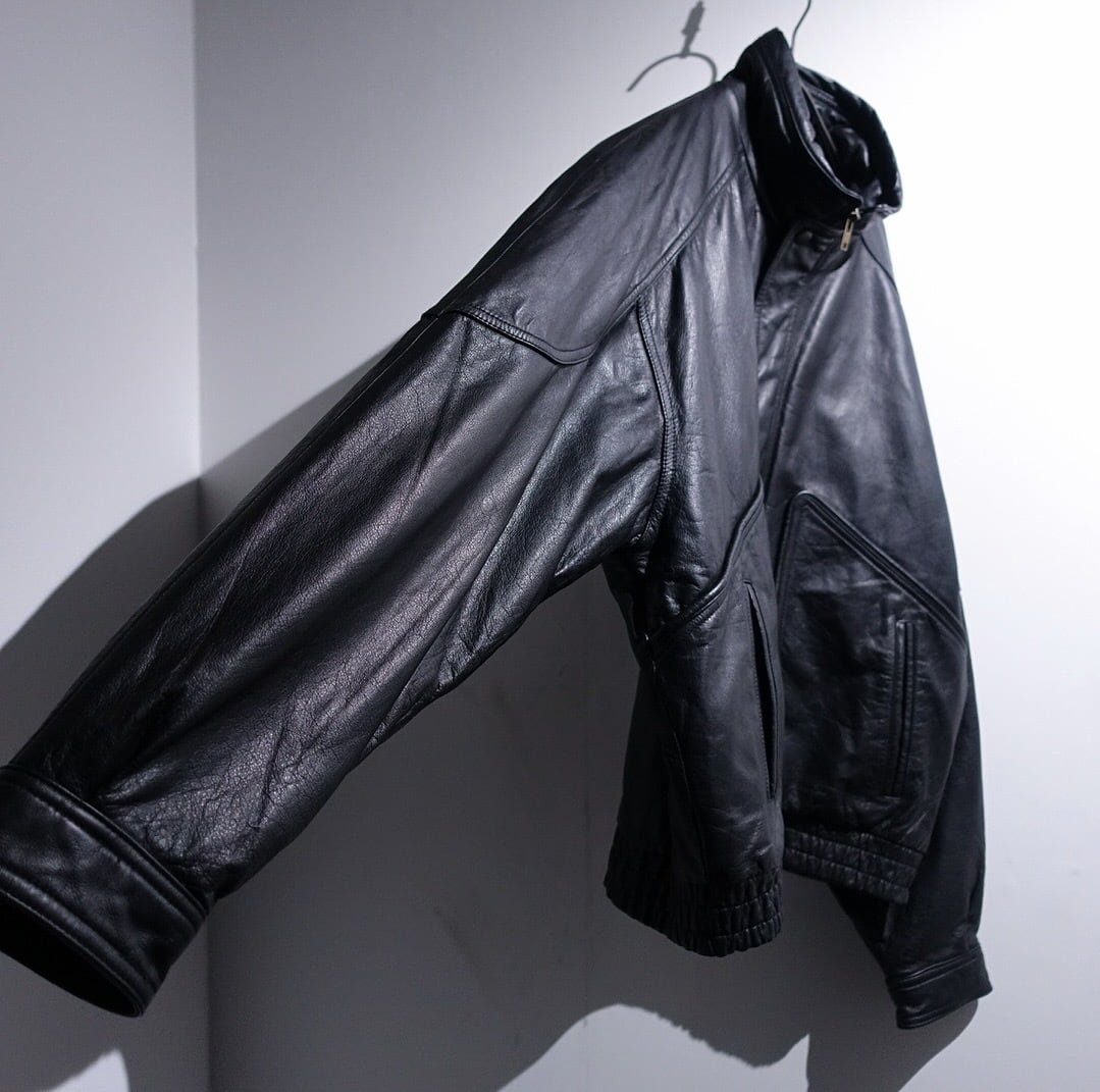 90s HILL & ARCHER Black Leather High-Neck Blouson