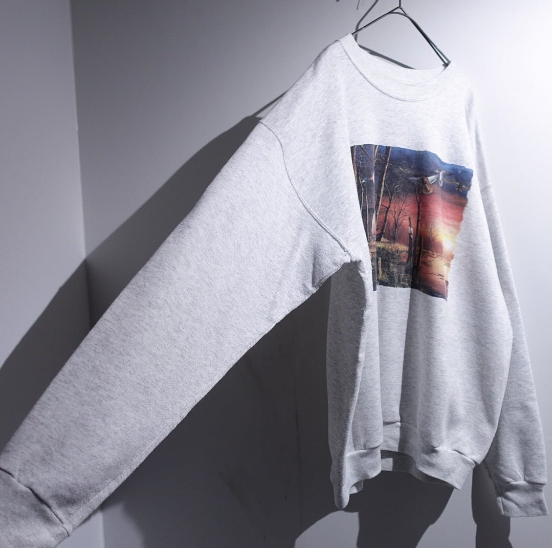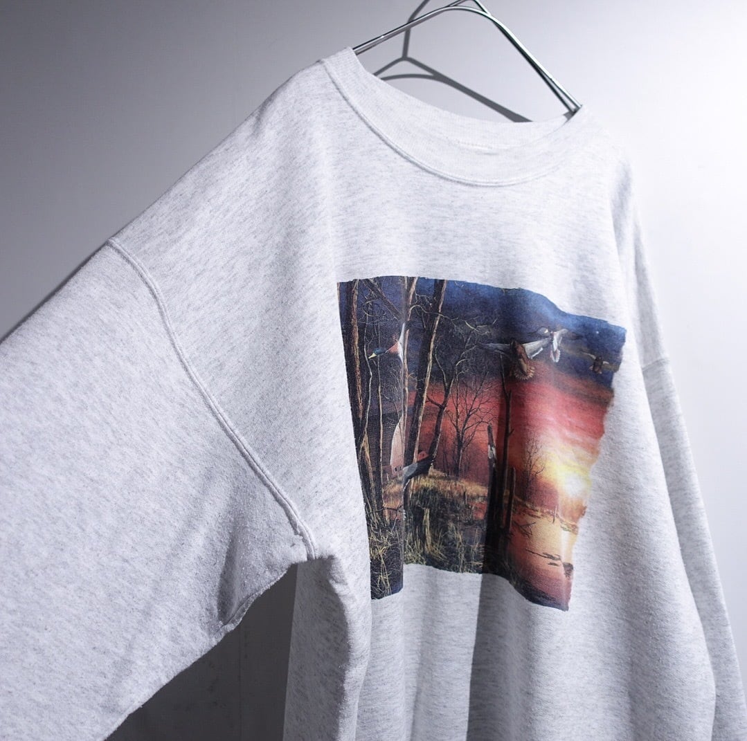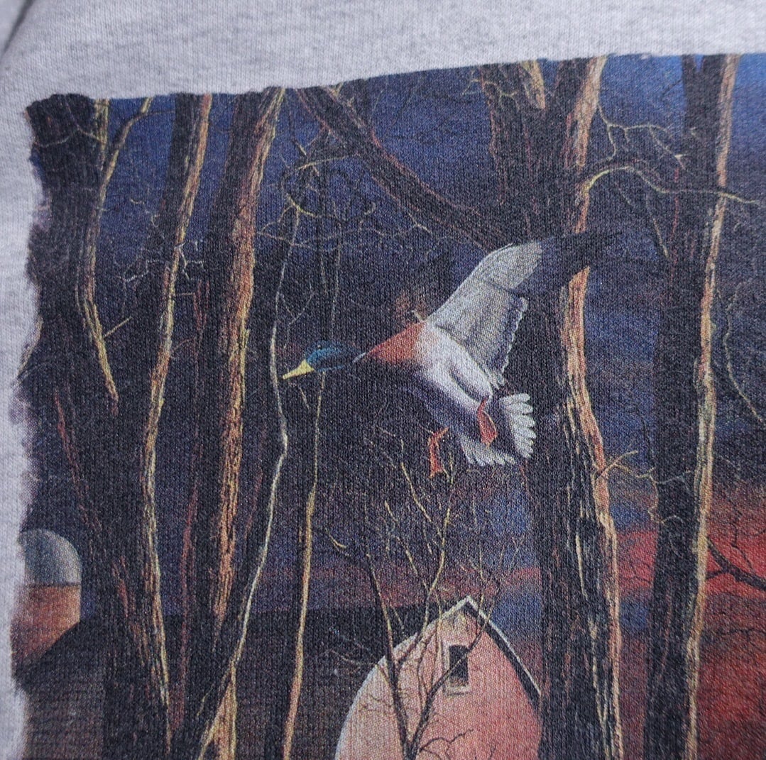 00s “Hanes” Gray Duck Sunset Landscape Artistic Print Sweat