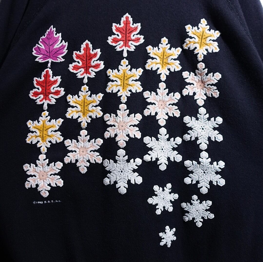 90s "Hanes" Black Autumn Leaves & Snowflake Print Sweat