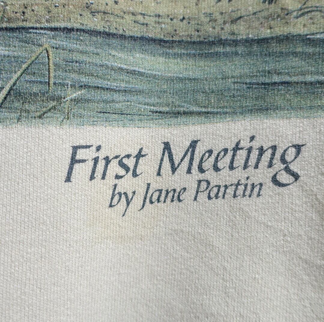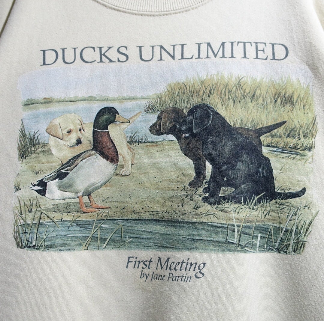 90s Beige Dog & Camo First Meeting Print Design T-Shirt
