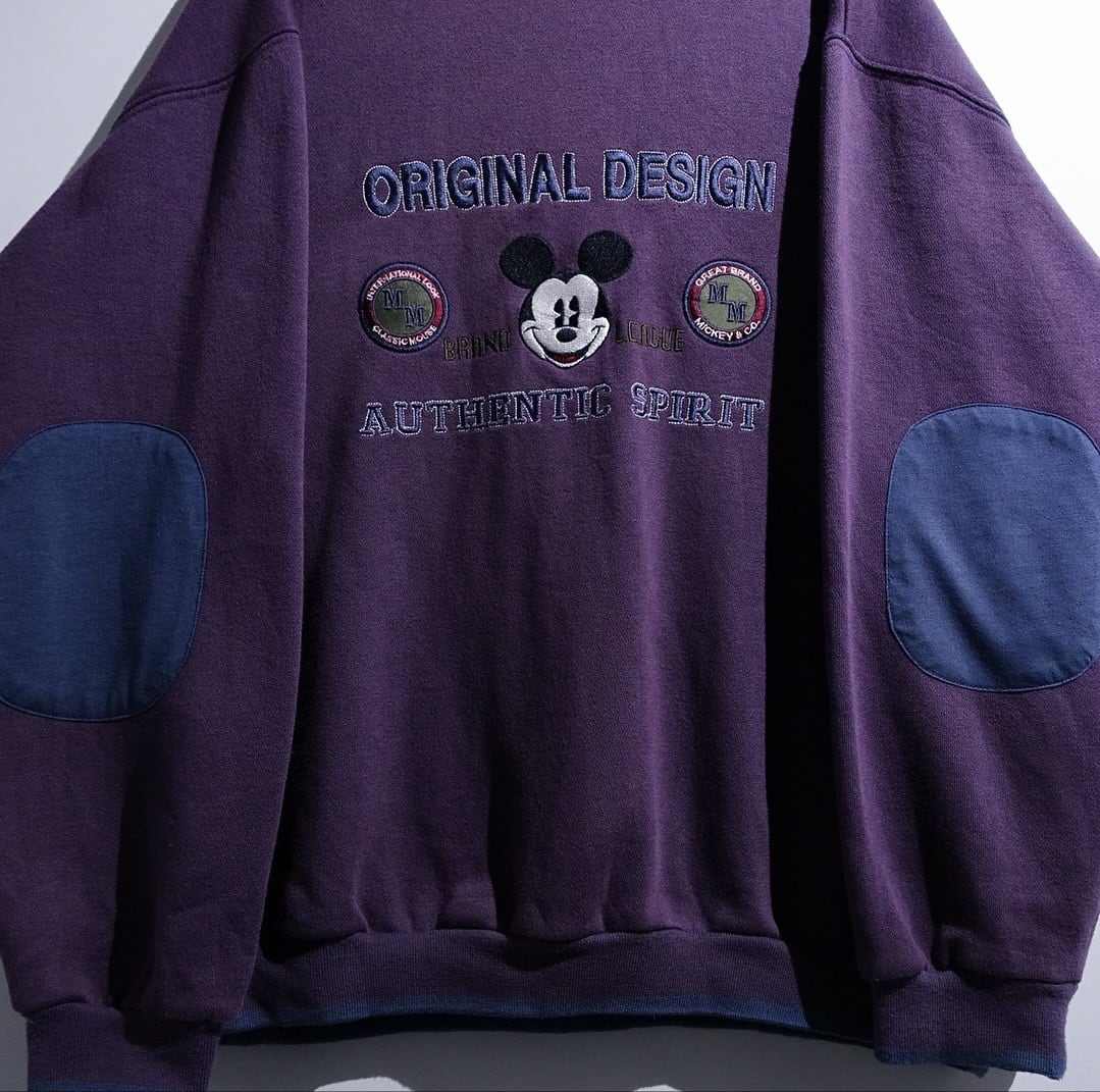 90s "Disney" Purple Mickey Embroidered & Elbow Patch Sweat