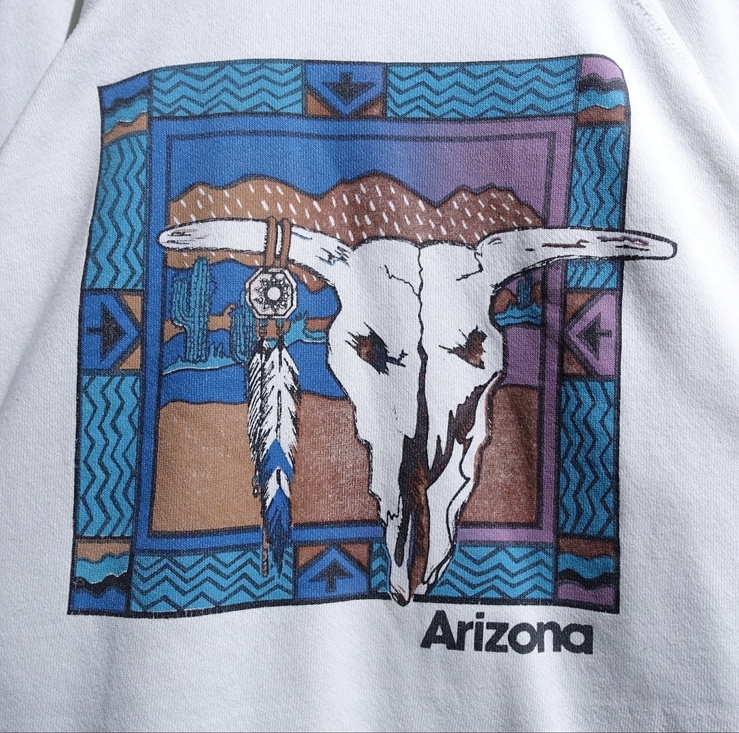 90s "Tultex" White Bison Skull Artistic Print Desgin Sweat
