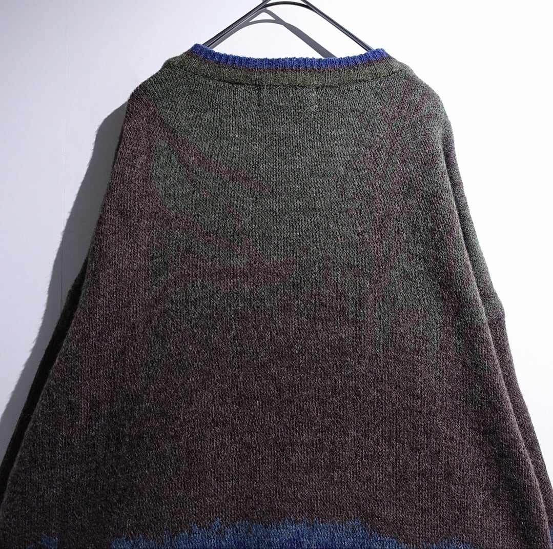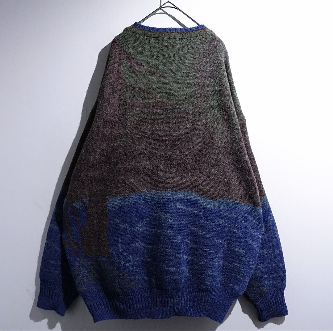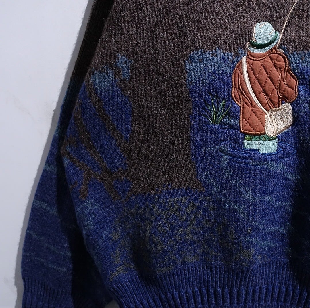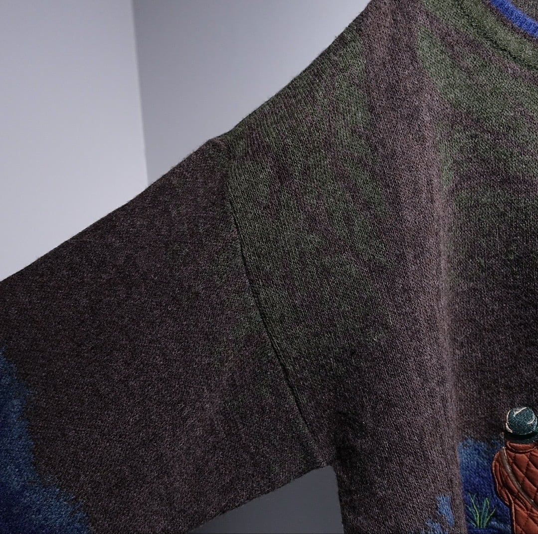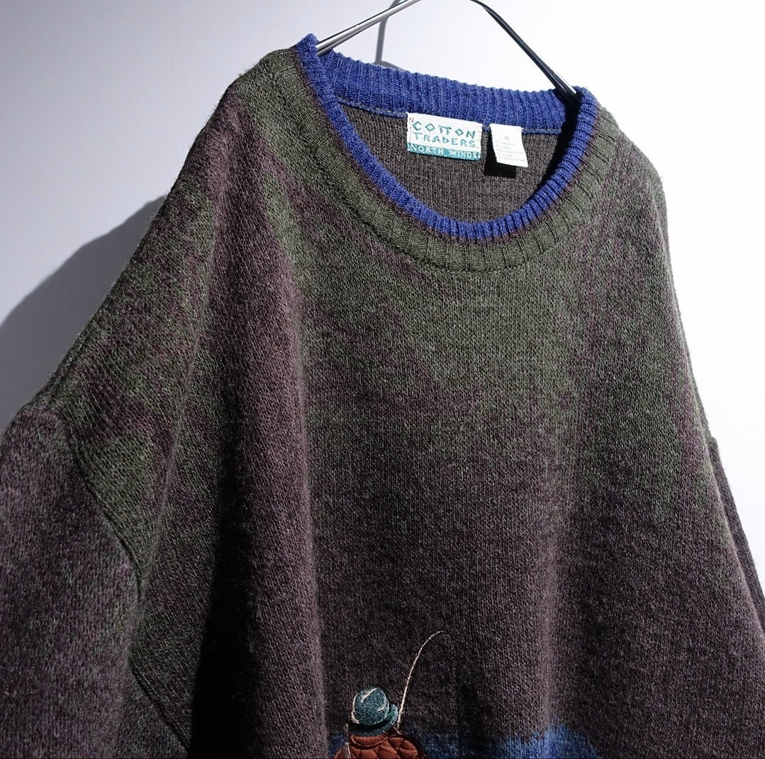 90s "COTTON TRADERS" Multicolor Fisherman Landscape Design Knit