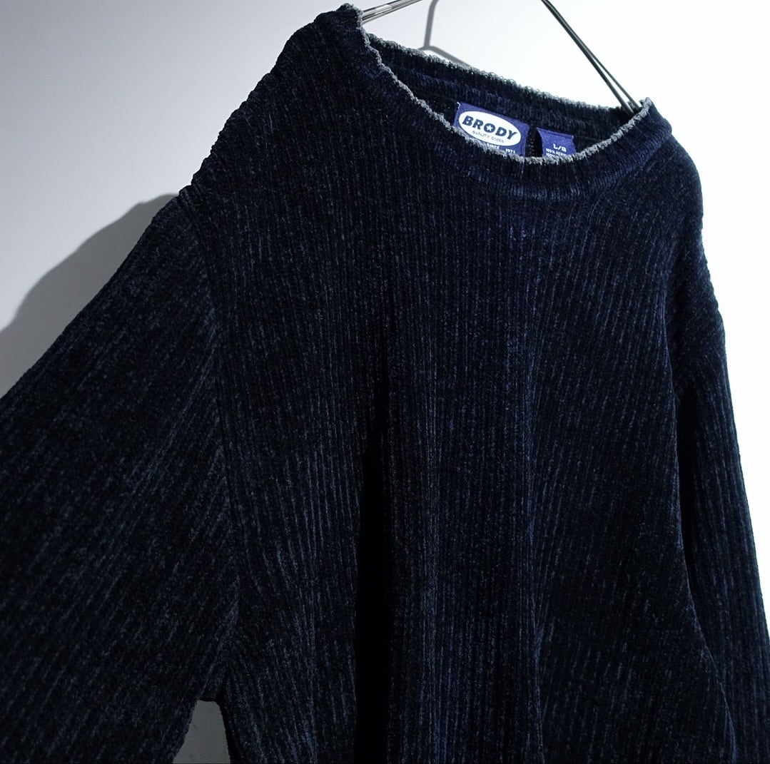90s "BRODY" Deep Navy Velour-Touch Rib Knit