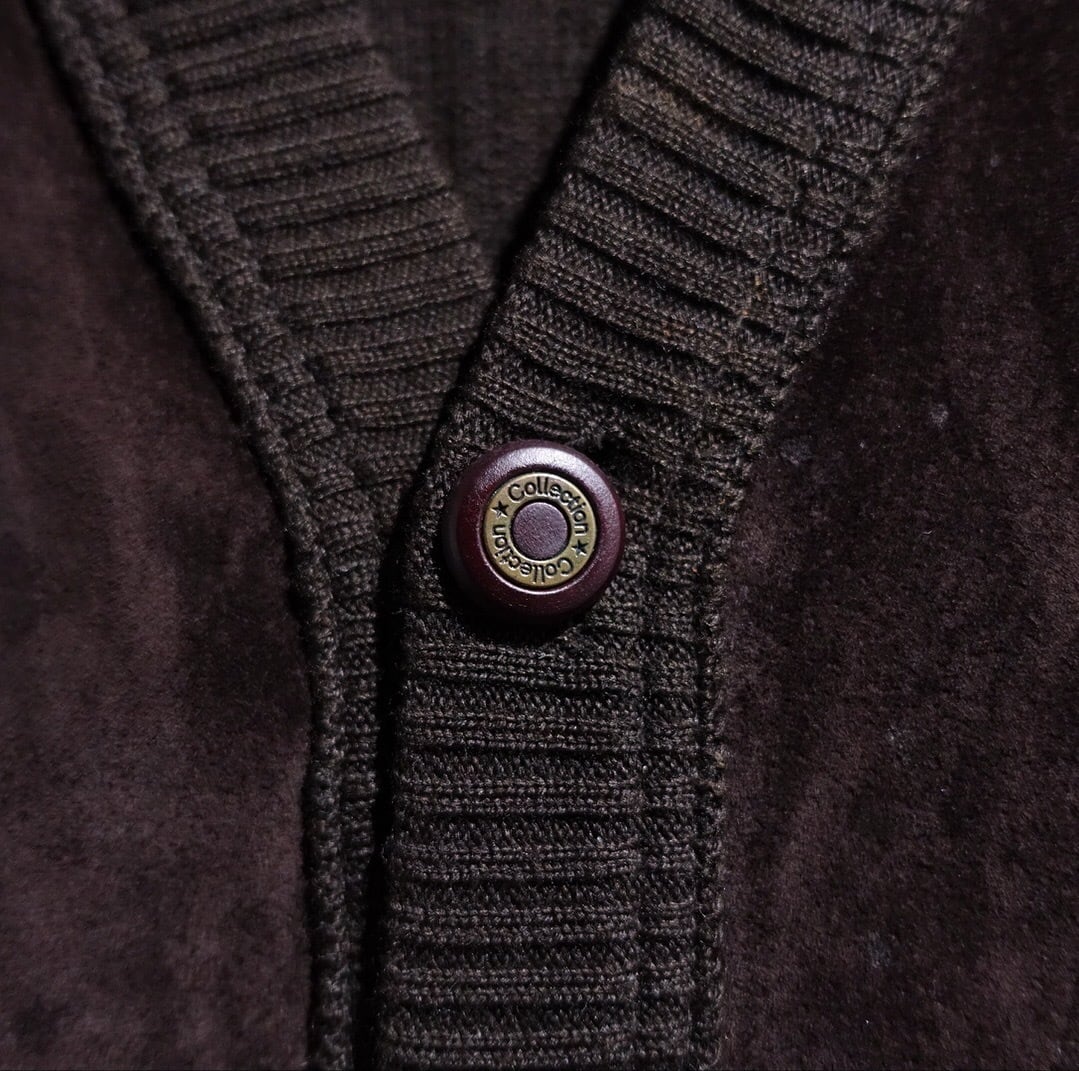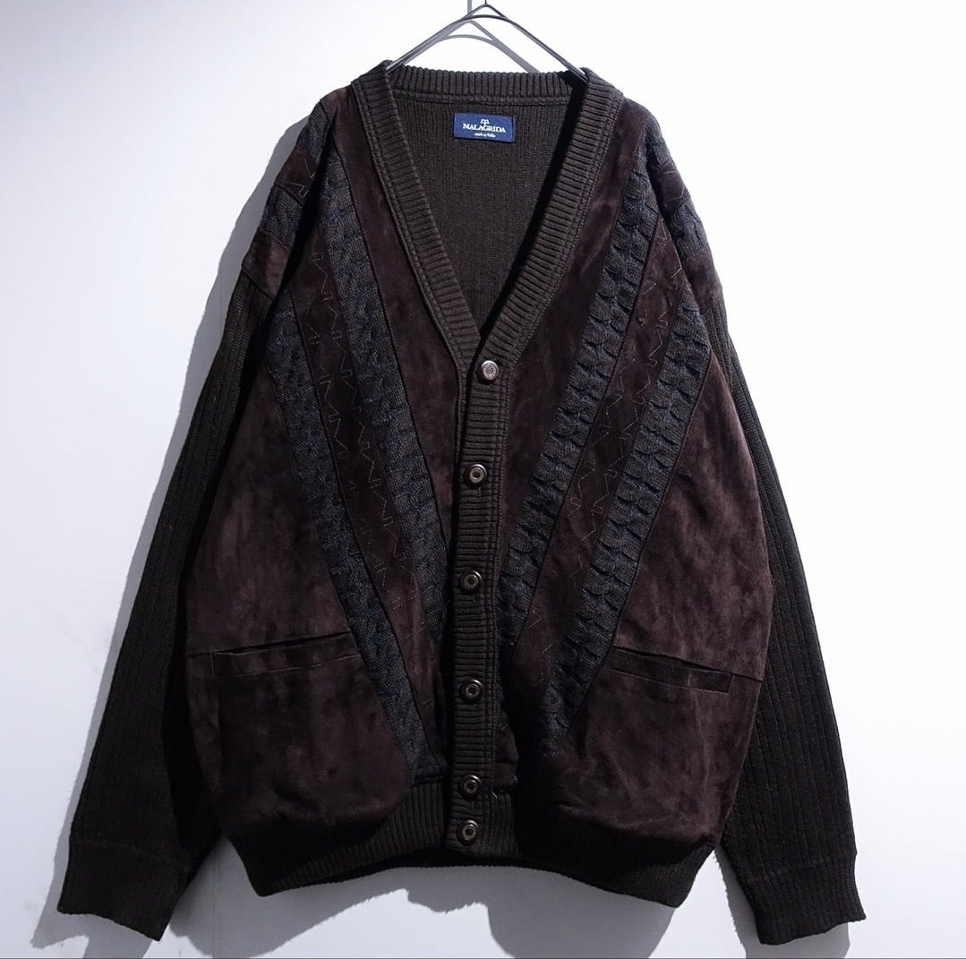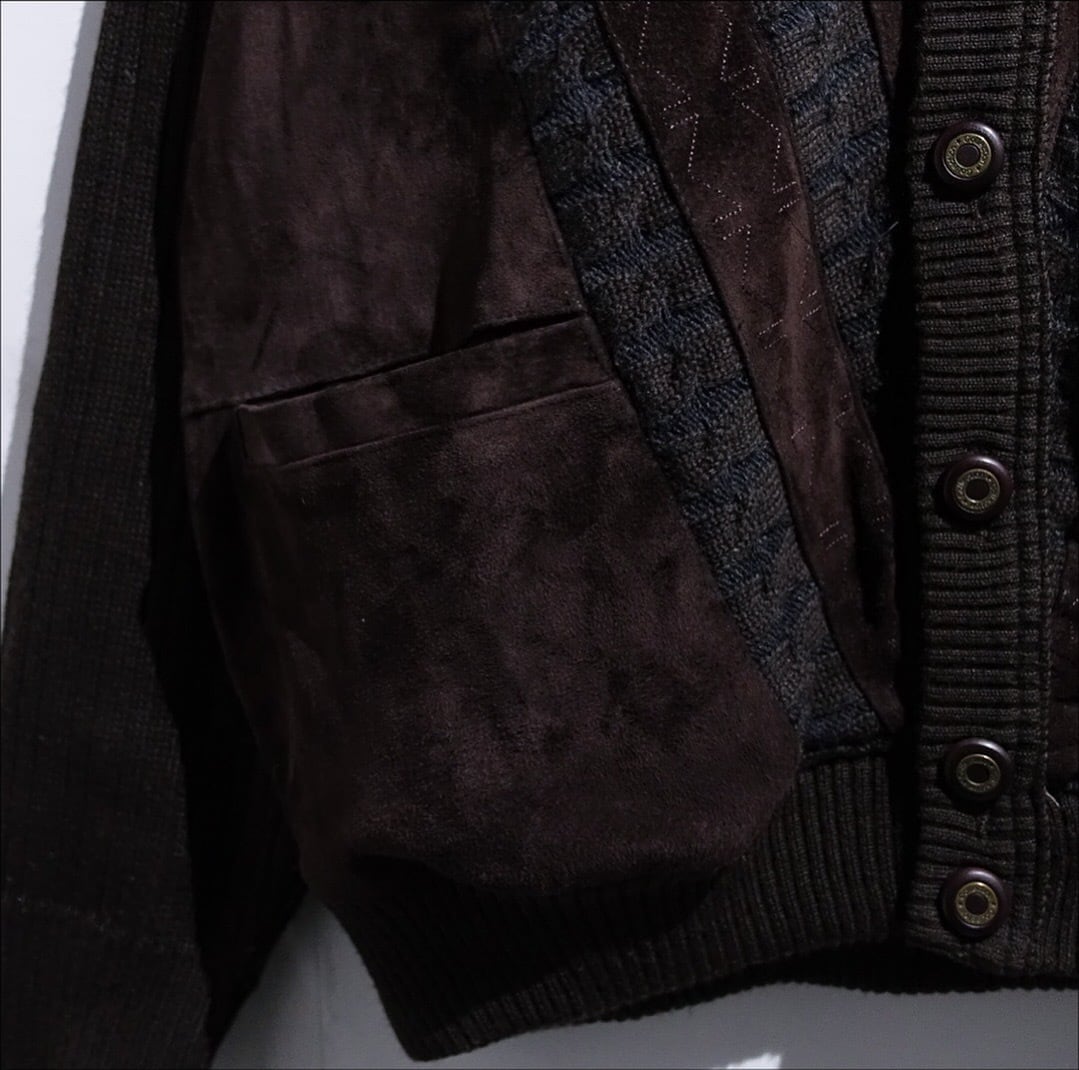 90s "MALAGRIDA" Brown Suede x Knit Panel Design Cardigan Made in Italy