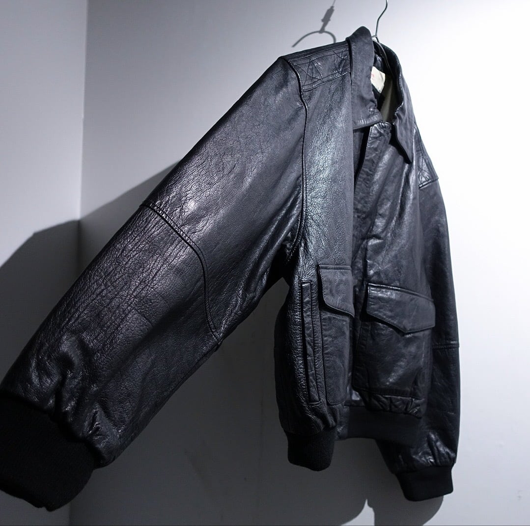 90s Black Leather Map Lining A-2 Type Jacket
