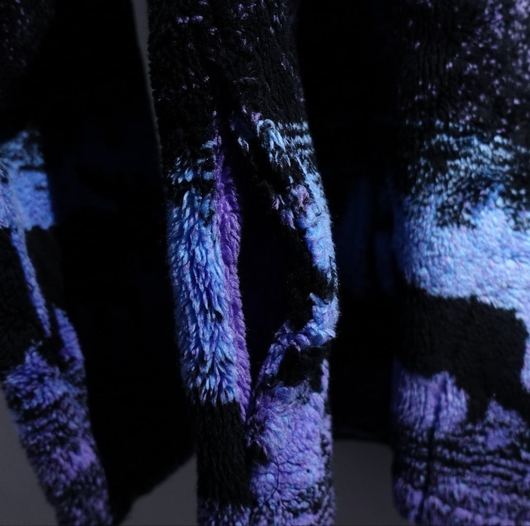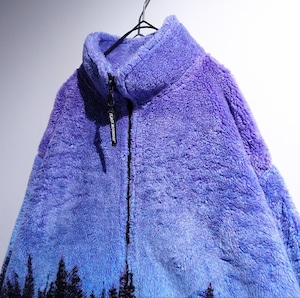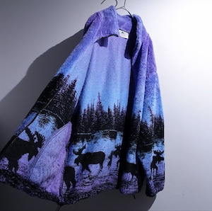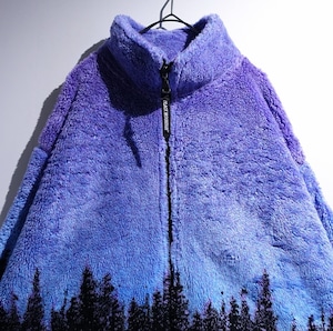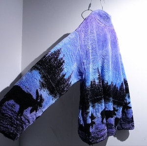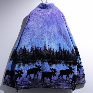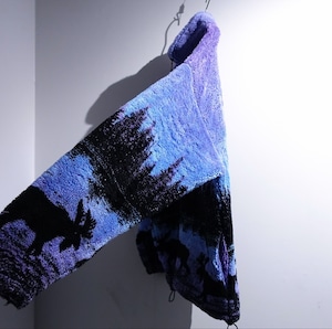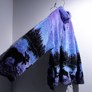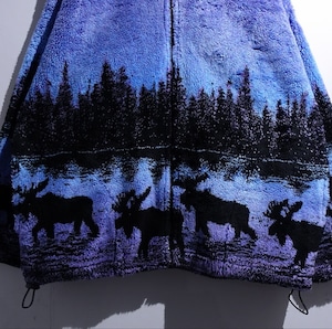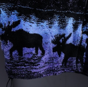 90s "BLACK MOUNTAIN" Gradient Moose Silhouette Artistic Design Fleece Jacket