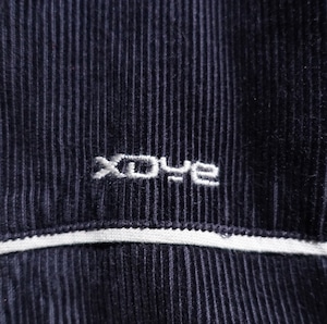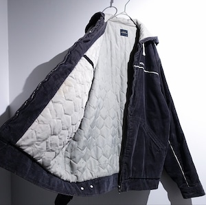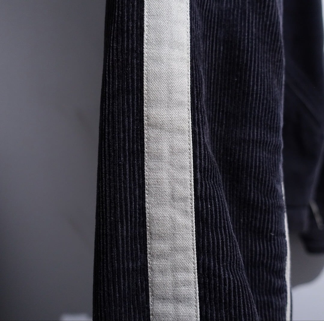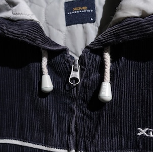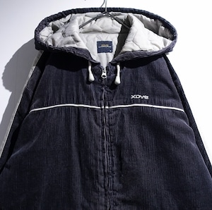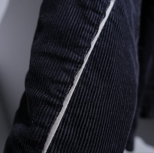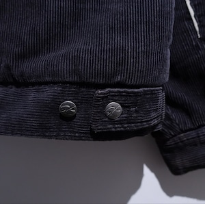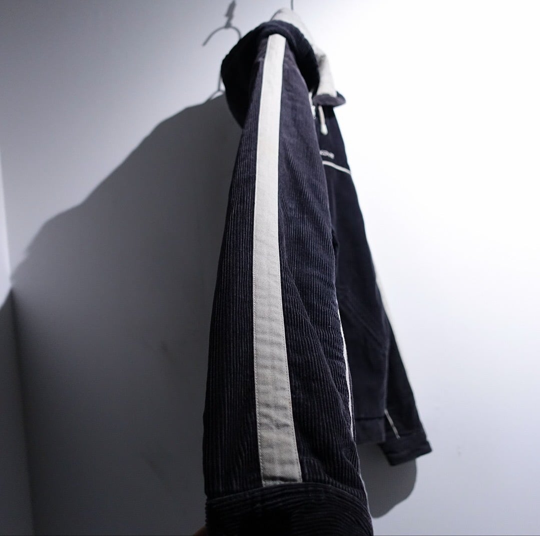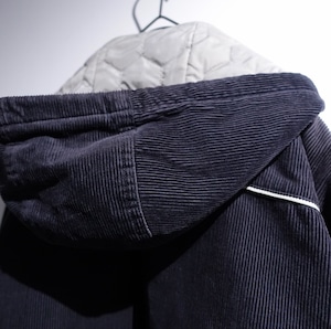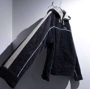 Black Corduroy Logo & Line Design Hooded Jacket