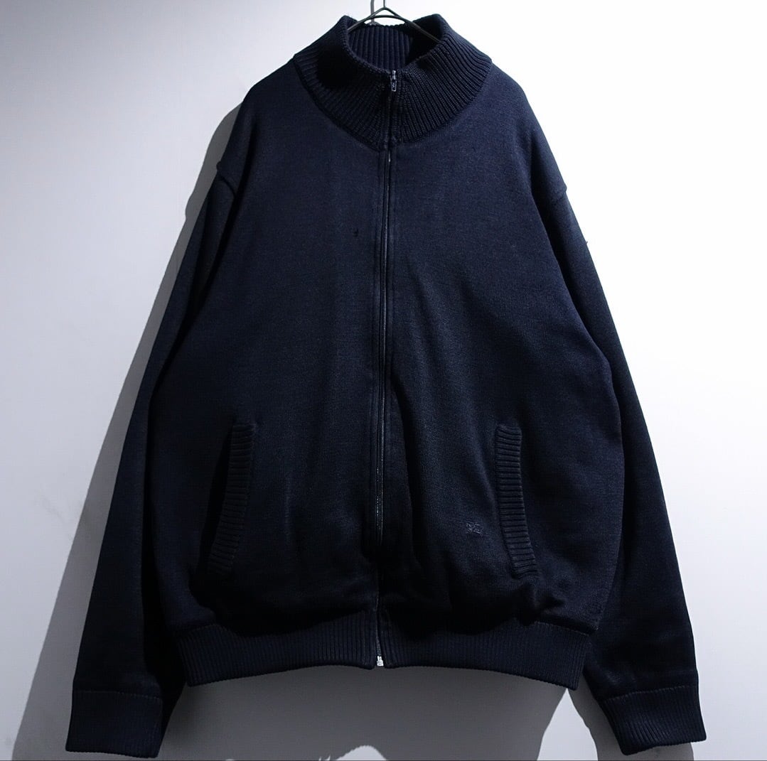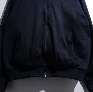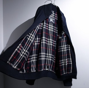 90s "Burberry" Navy Logo Nova Check Design Zip Knit Blouson
