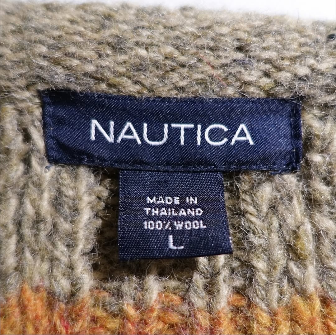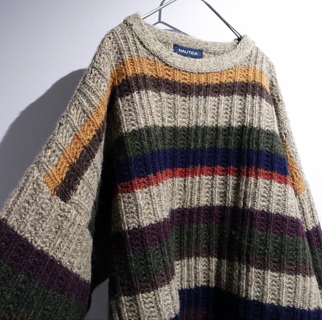 OOs "NAUTICA" Multicolored Thick Border Desgin Wool Knit