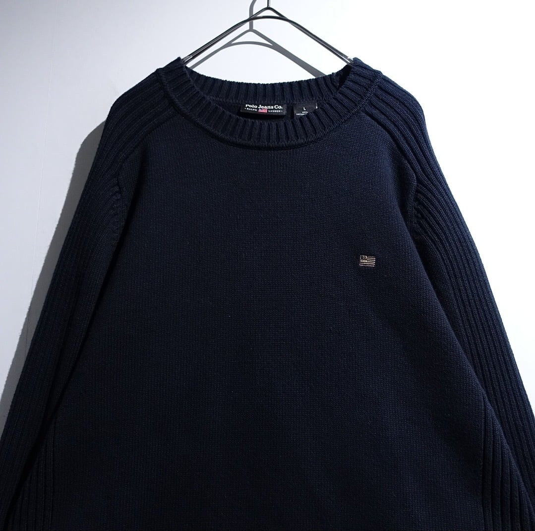 "Ralph Lauren" Black Logo Knitting Switch Desgin Cotton Knit