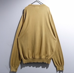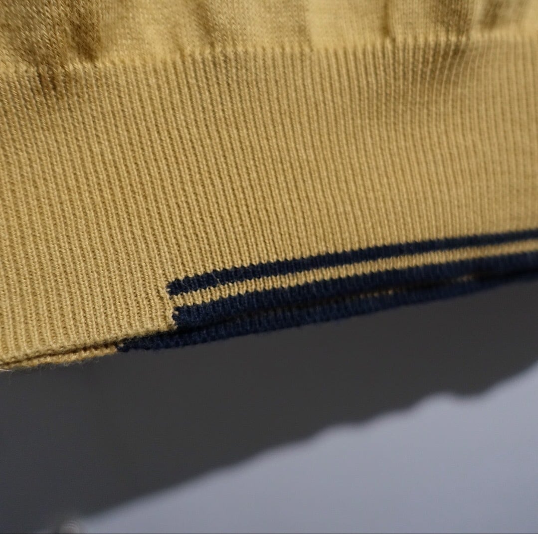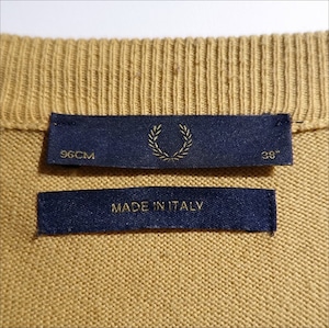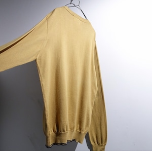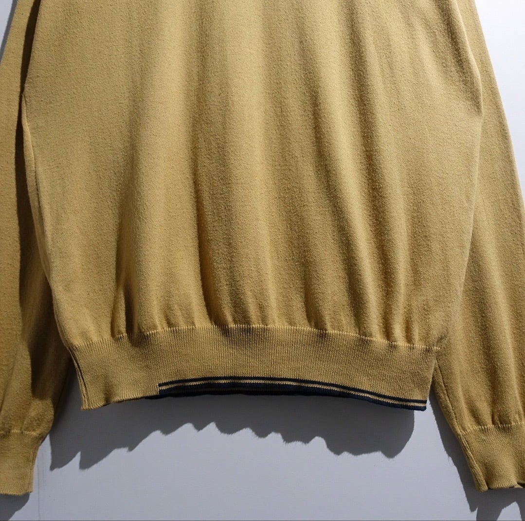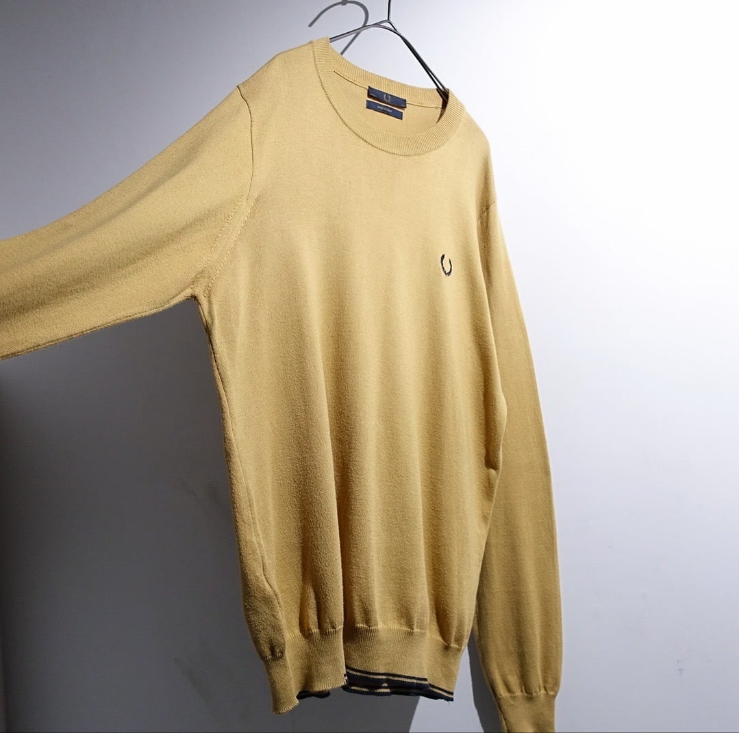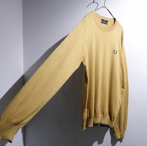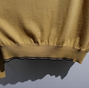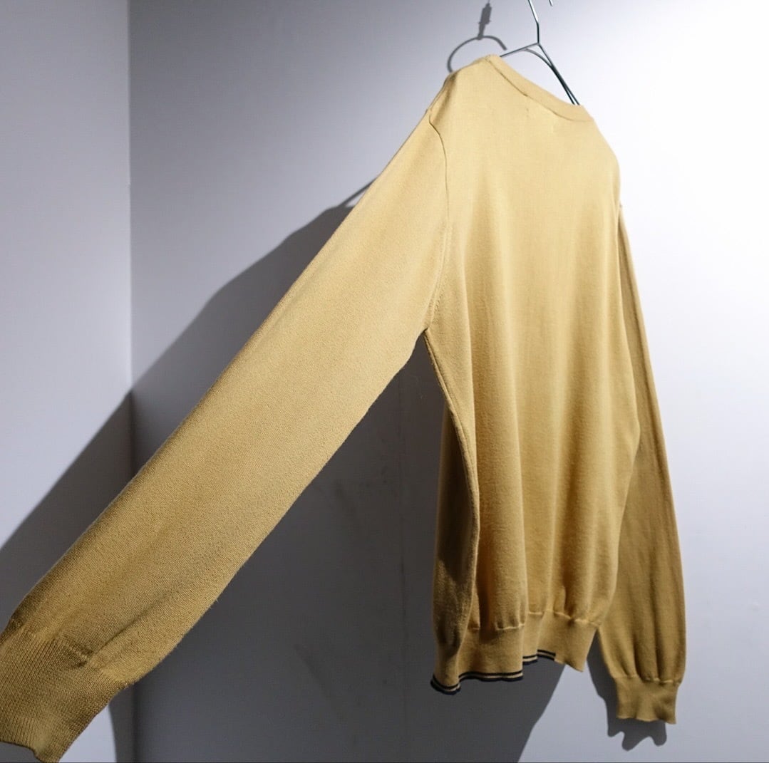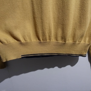 90s EURO "FRED PERRY" Yellow One-Point Logo & Line Design Cotton Knit