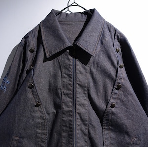 EURO Bluish Brown Lame Embroidered & Metal Detail Short Zip Jacket
