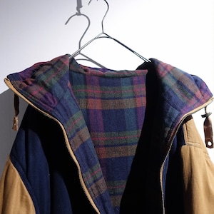 90s Multicolor & Check Design Padded Reversible Jacket