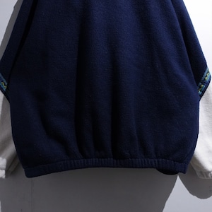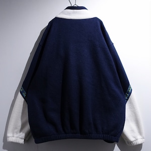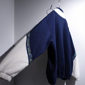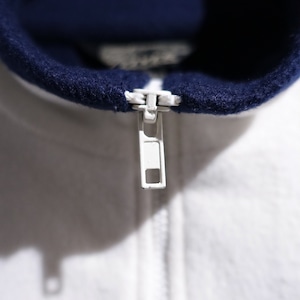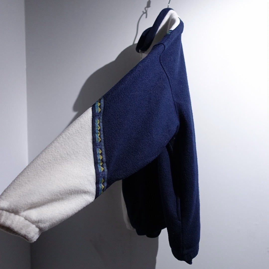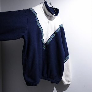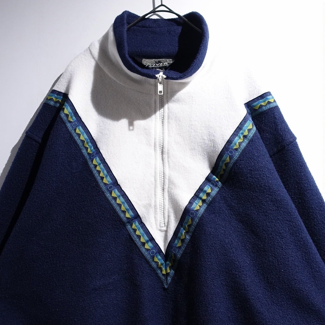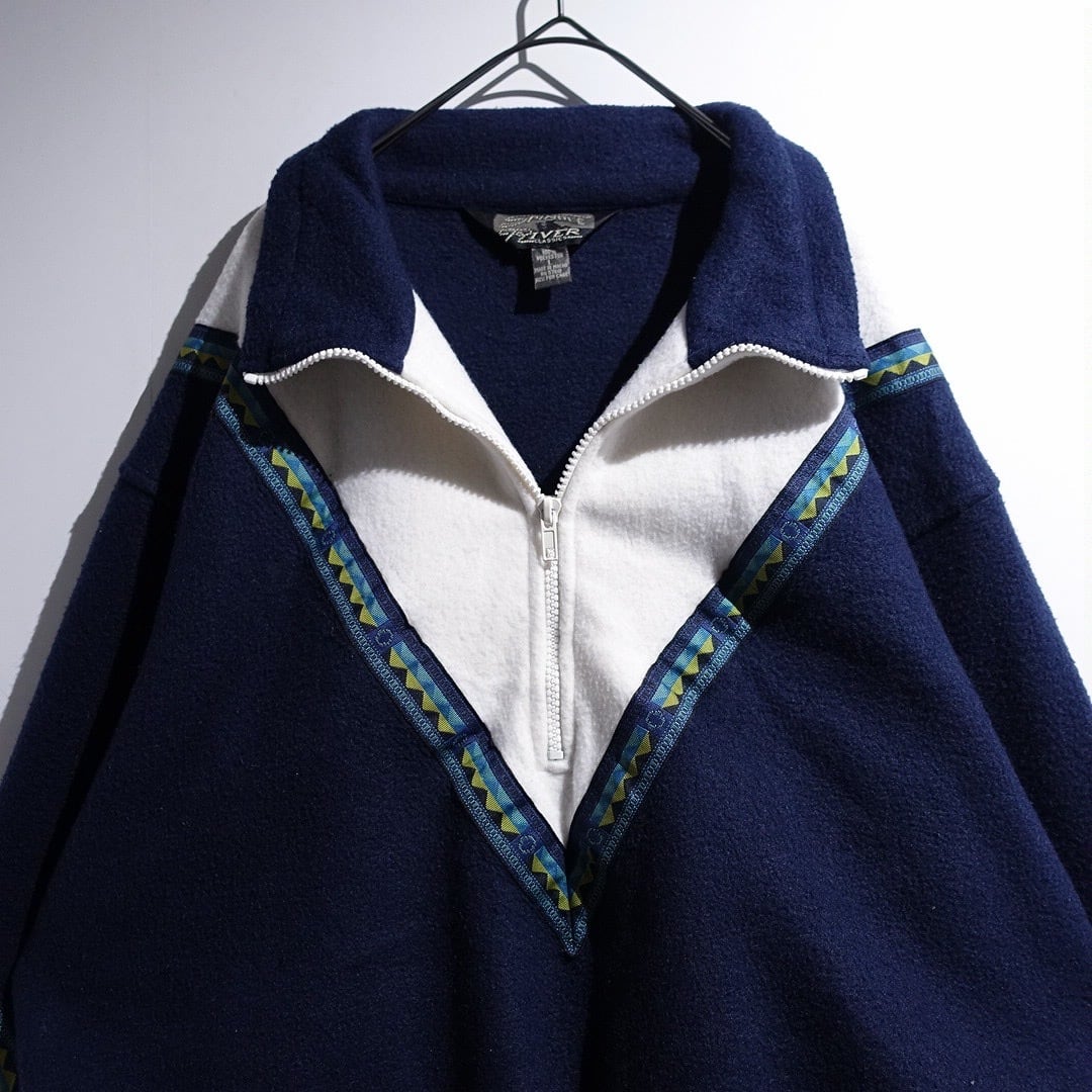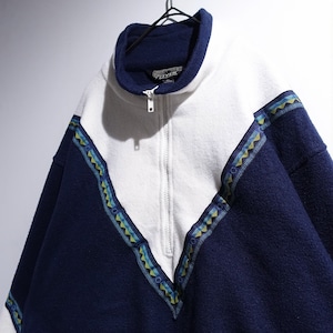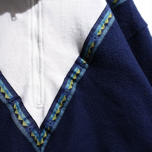 White & Navy Tyrolean Tape-Trimmed Half-Zip Fleece