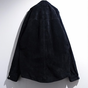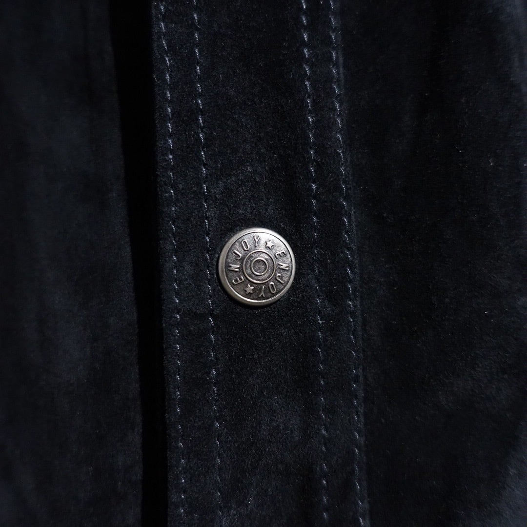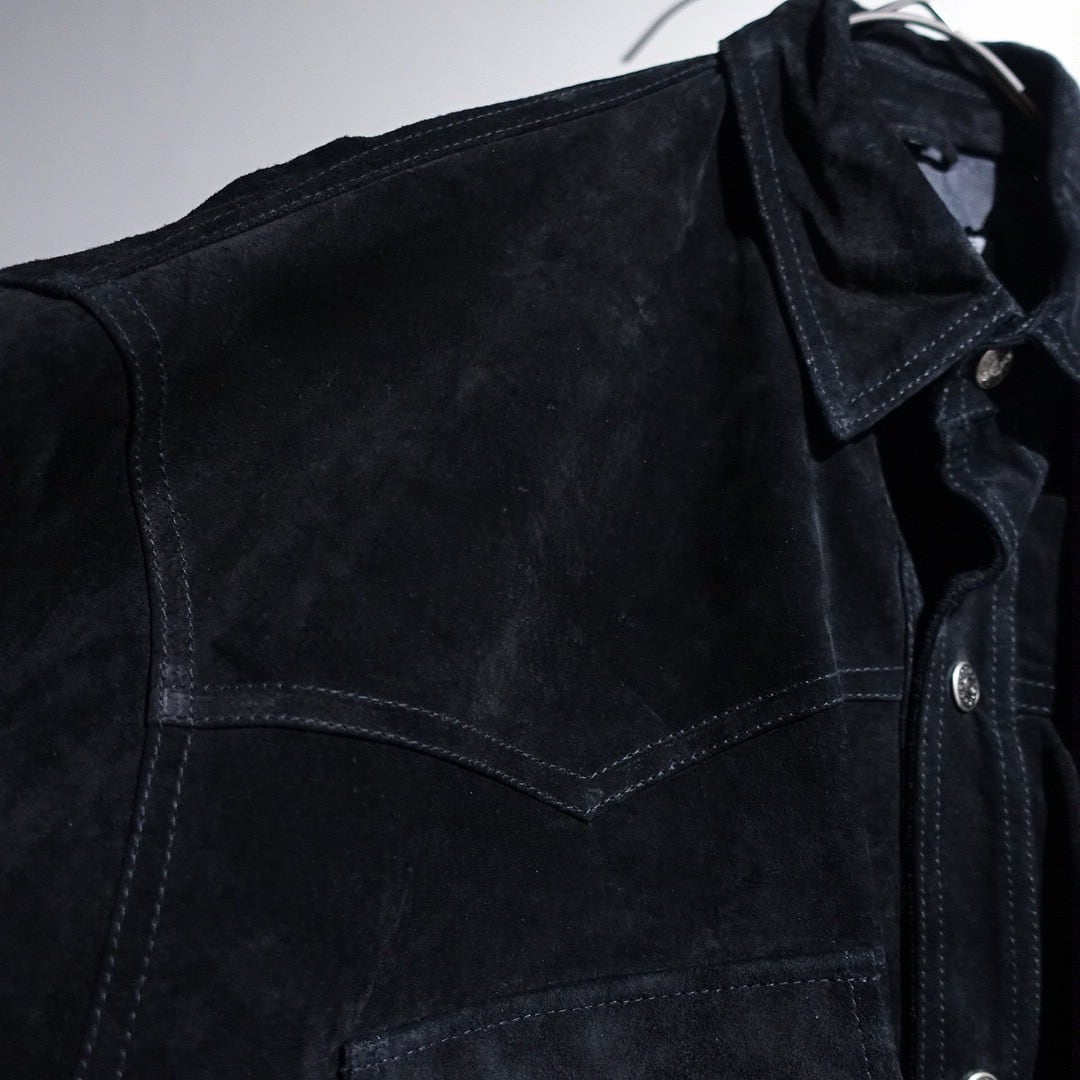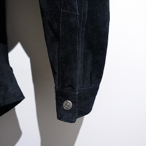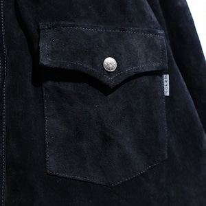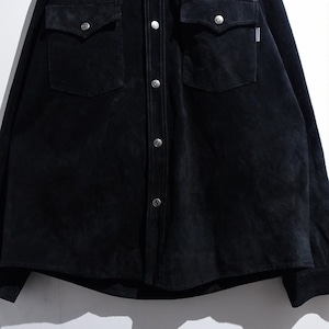 Black Suede Leather Western Design Shirt Jacket