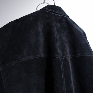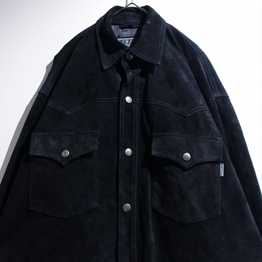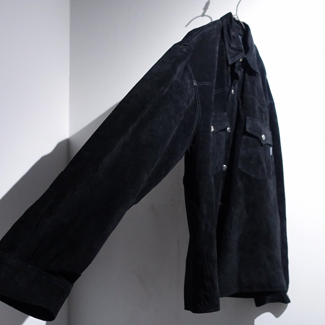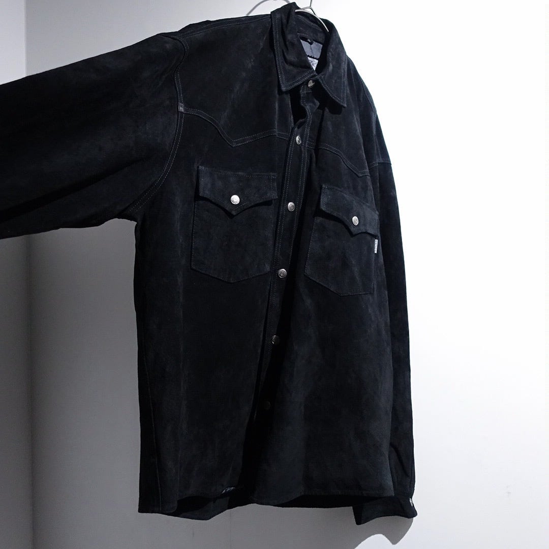 Black Suede Leather Western Design Shirt Jacket