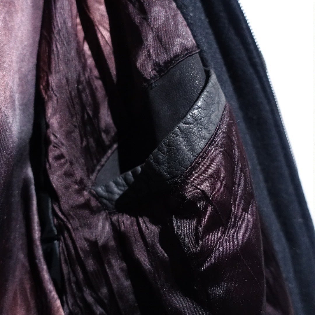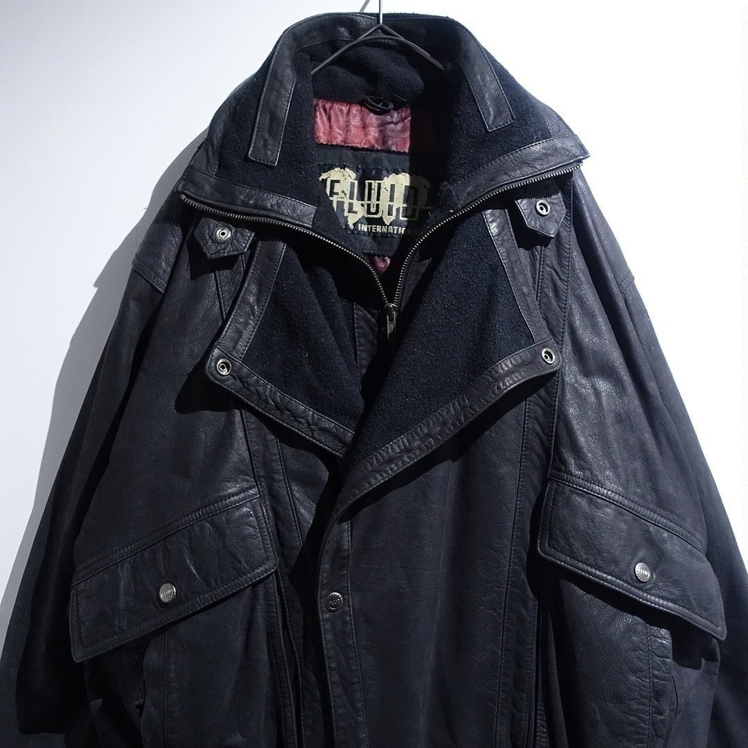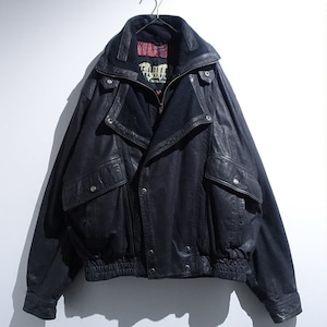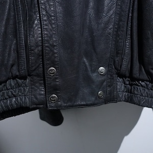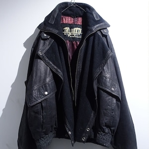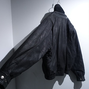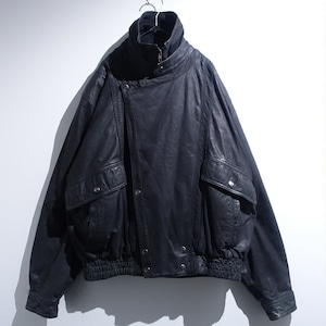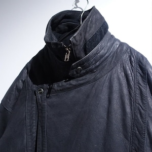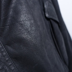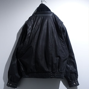 Black Layered Neck Design Leather Blouson