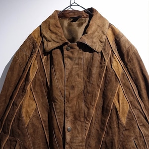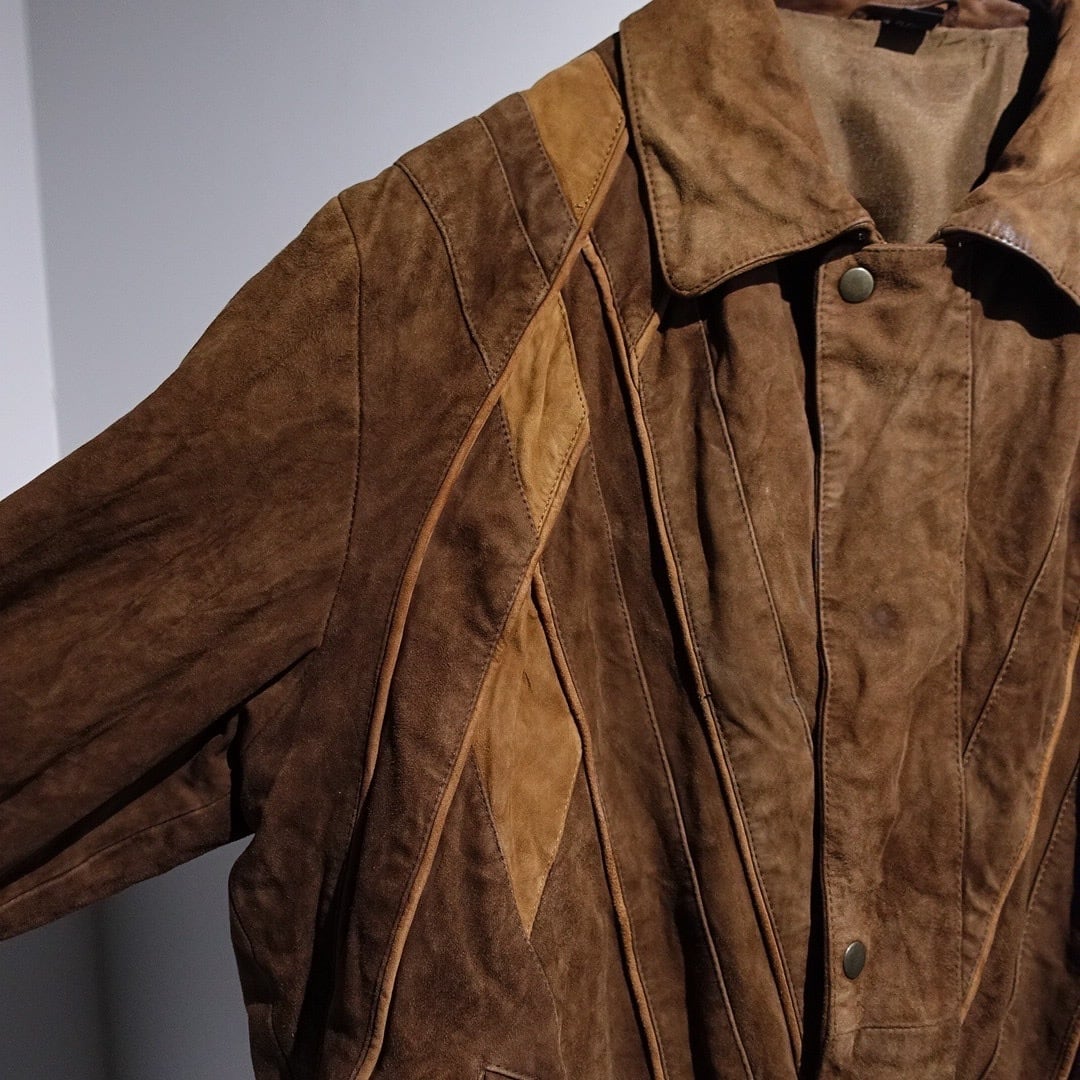 EURO Brown Diamond Switch Design Nubuck Leather Blouson