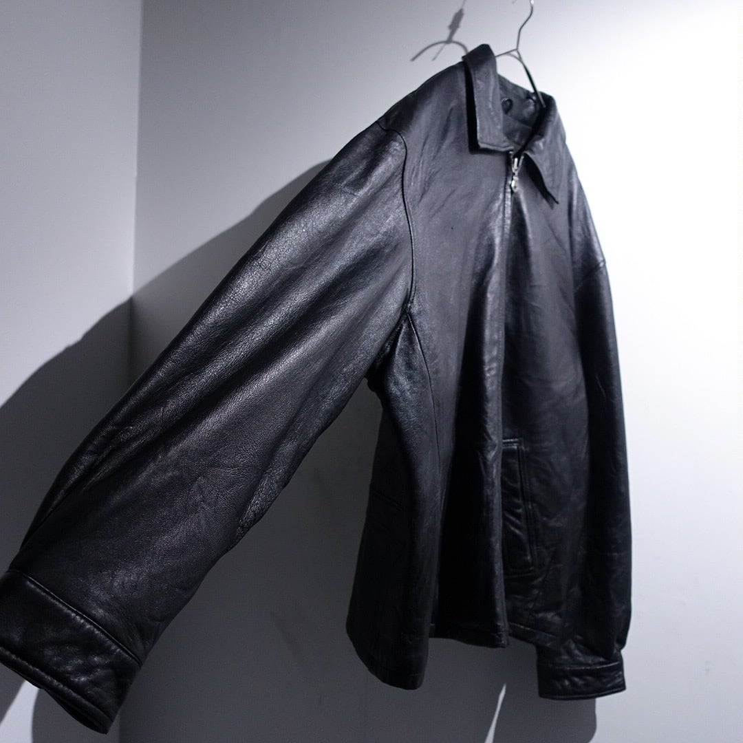 90s "WILSONS LEATHER" Black Leather Swing Top Blouson