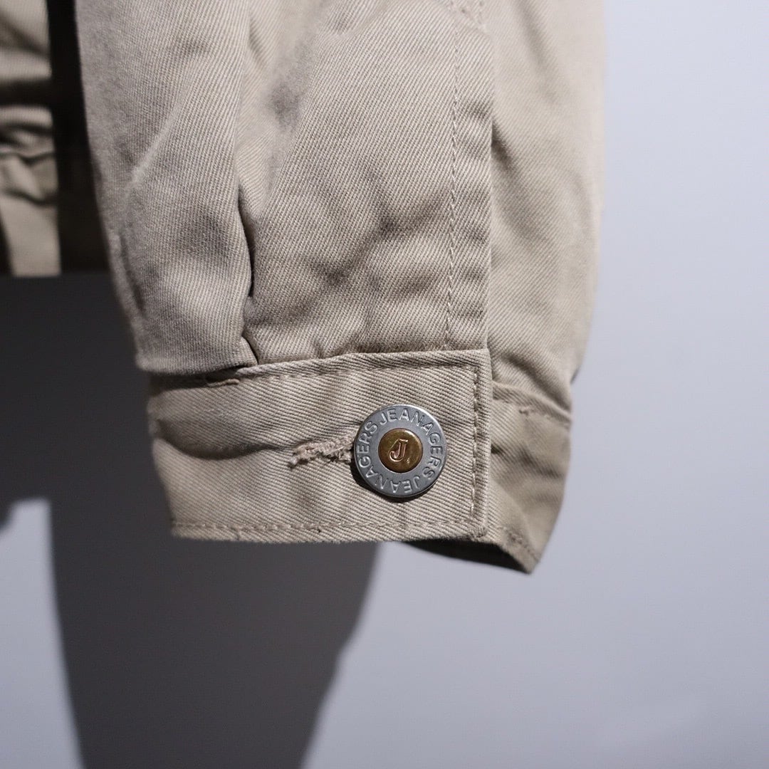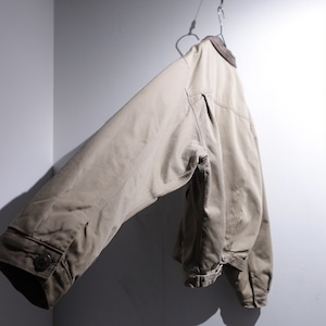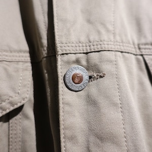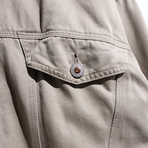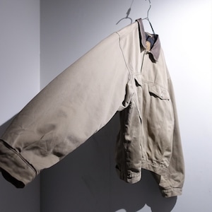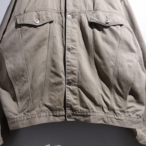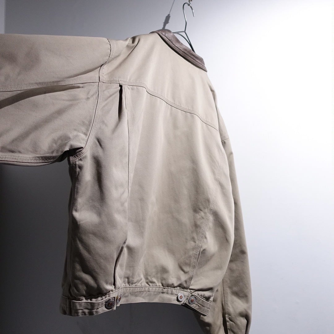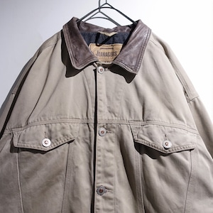 90s Greige Leather Collar Fleece Lined Design Trucker Jacket