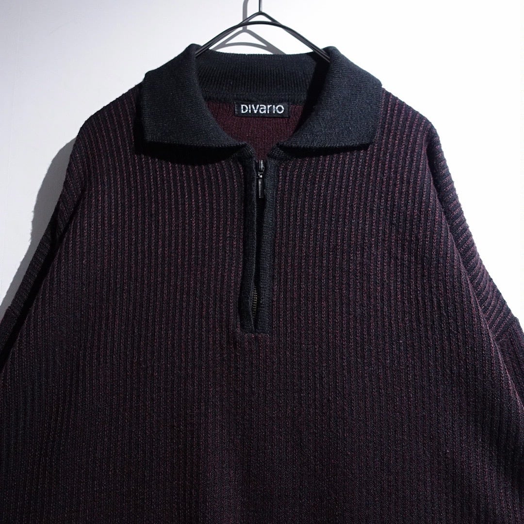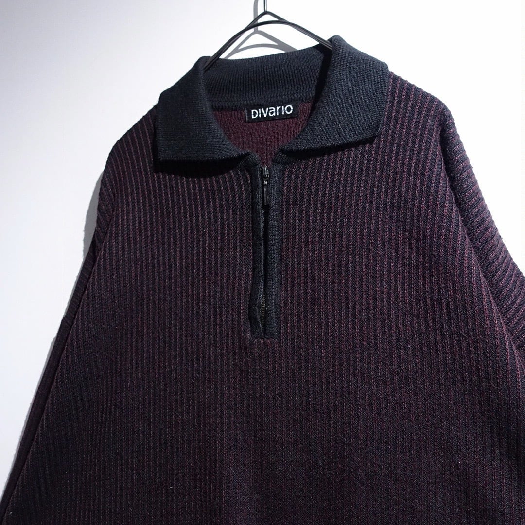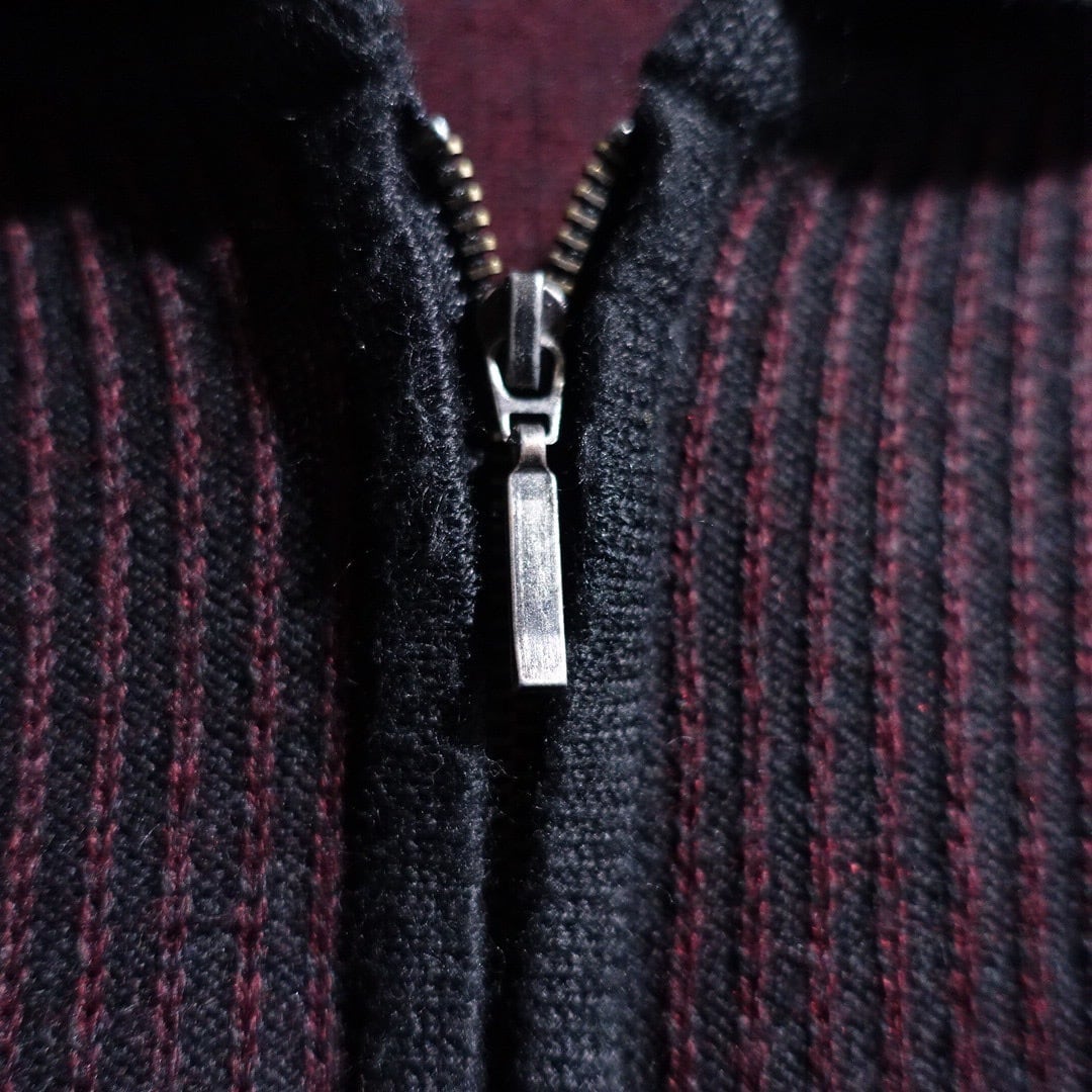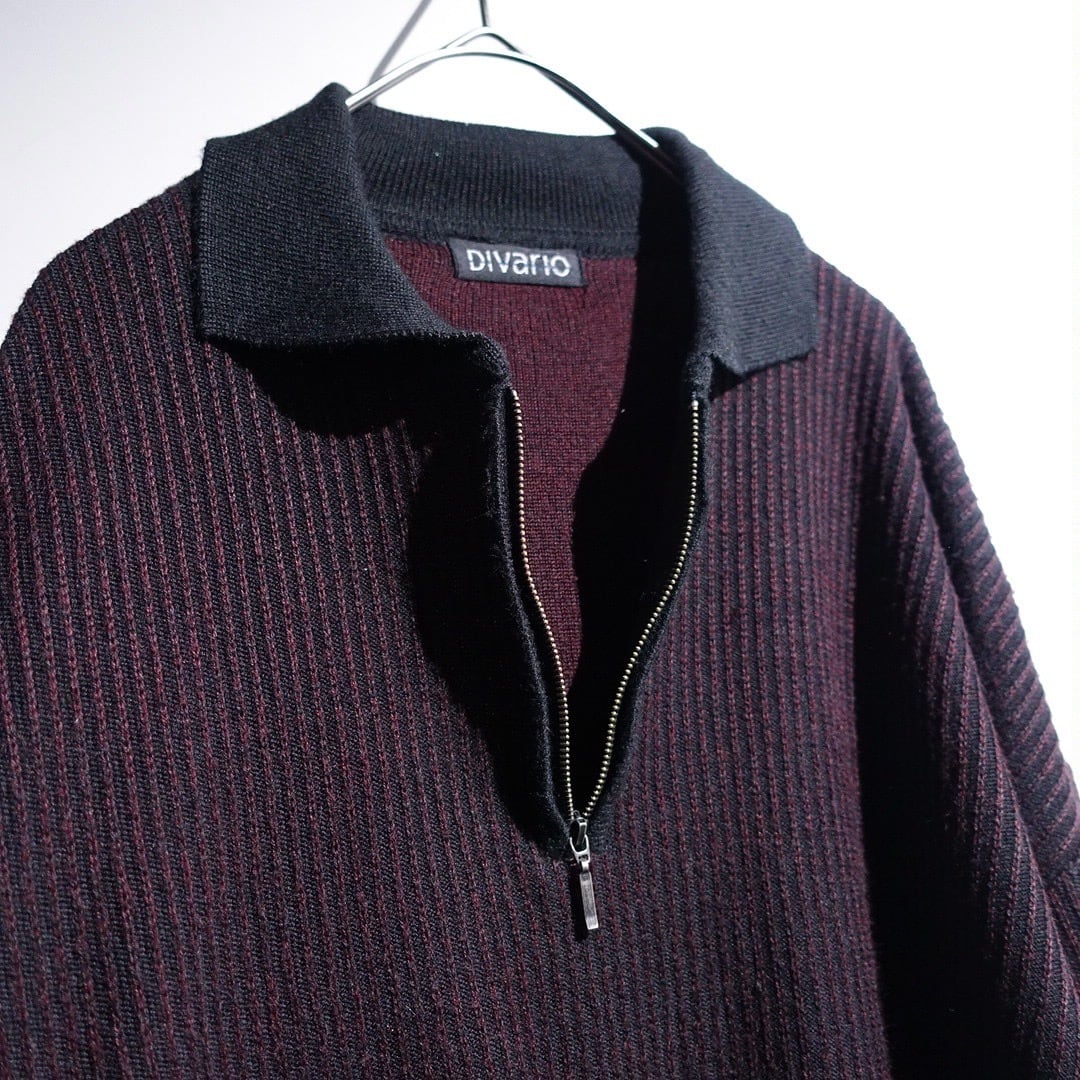 EURO Black × Red 3D Stripe Design Half-Zip Knit Polo