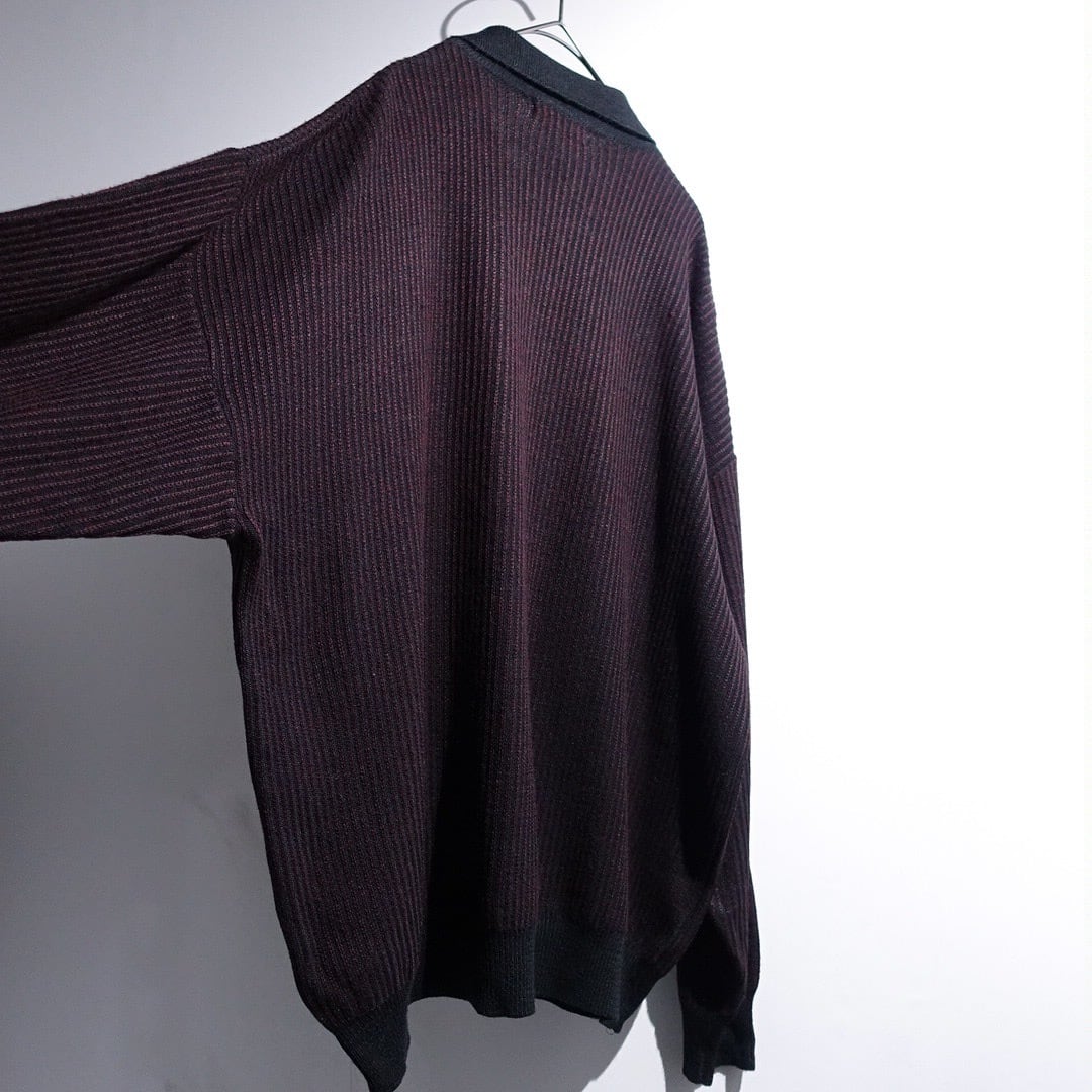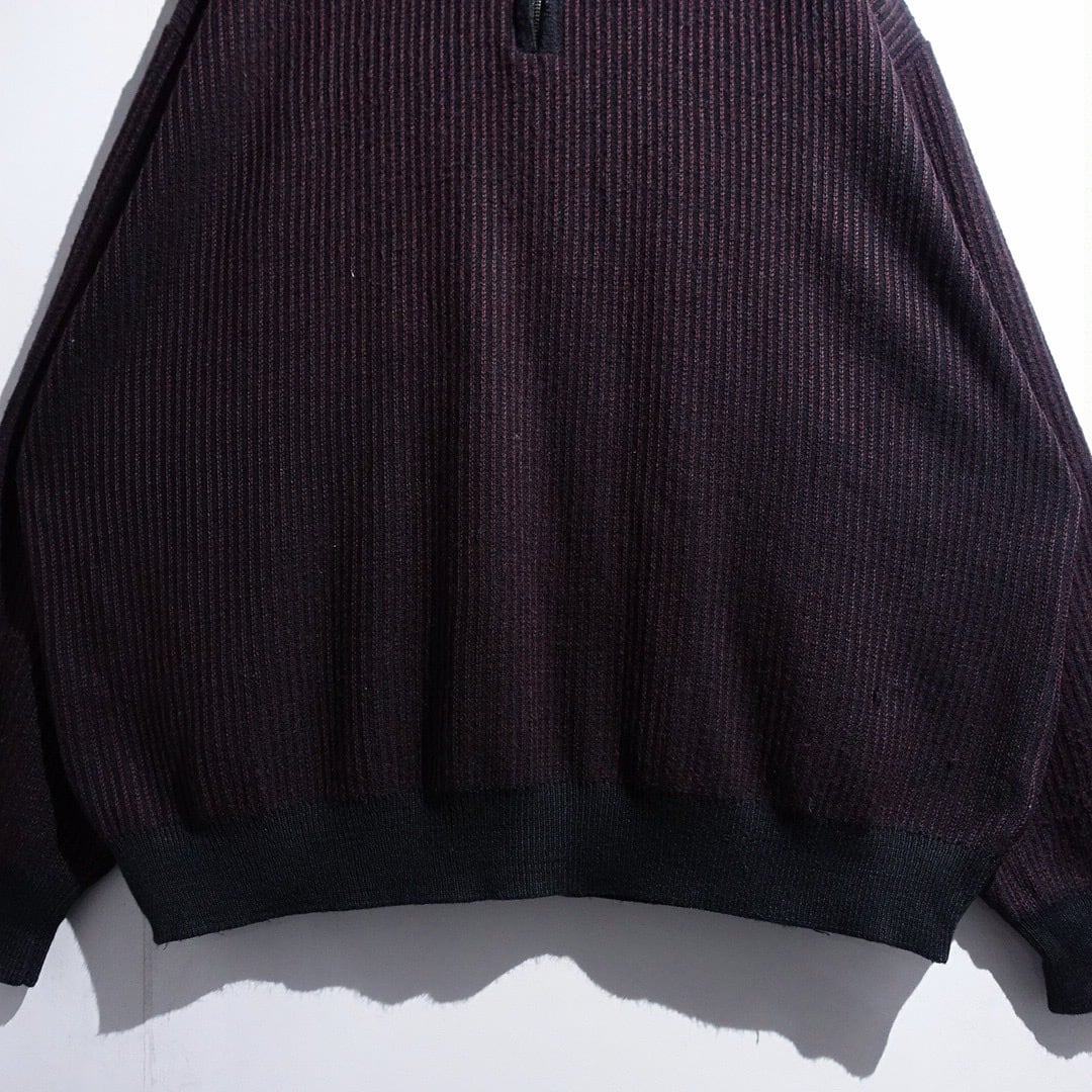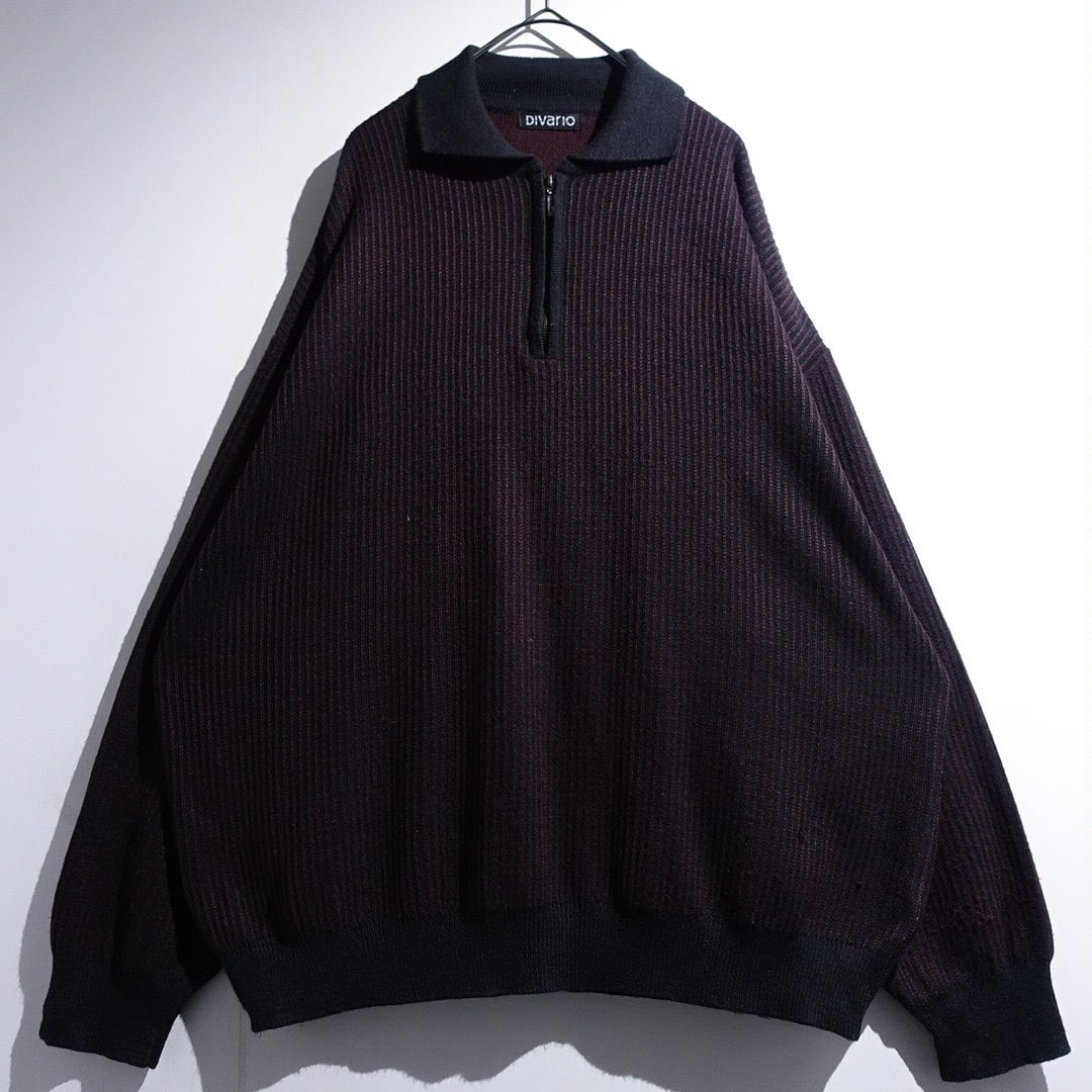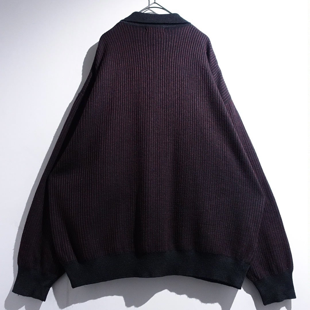 EURO Black × Red 3D Stripe Design Half-Zip Knit Polo