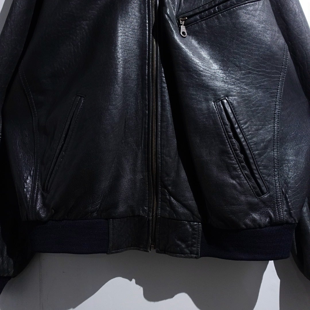 EURO Black Leather Zip Blouson