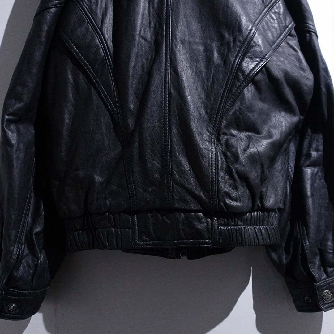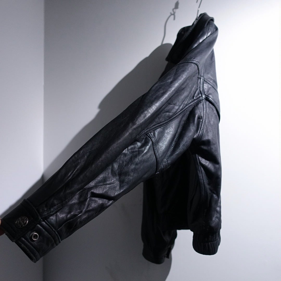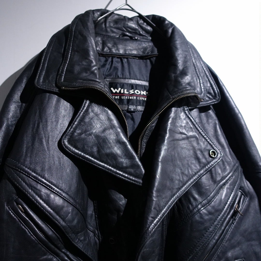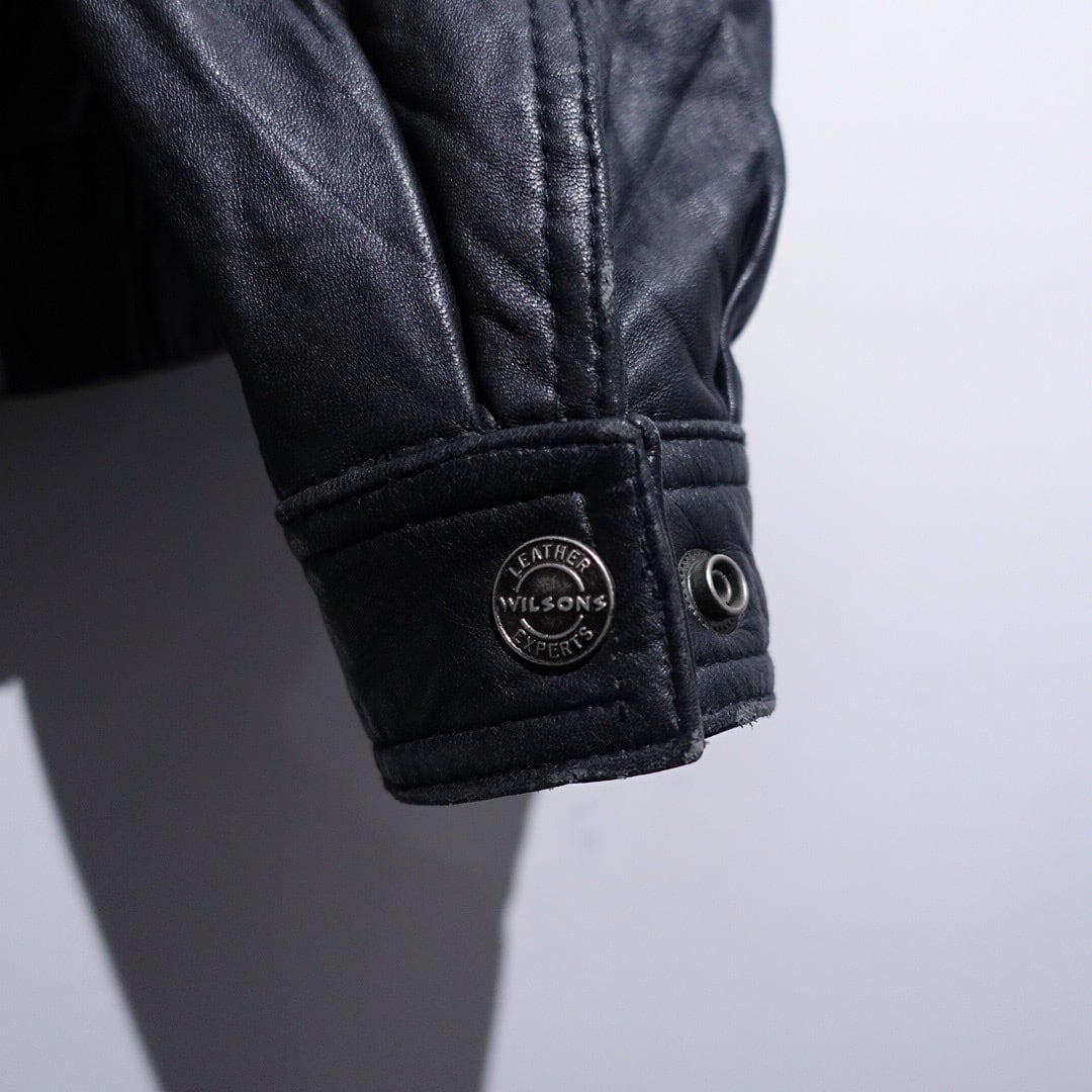 90s "WILSONS" Black Leather Layered Neck Design Blouson