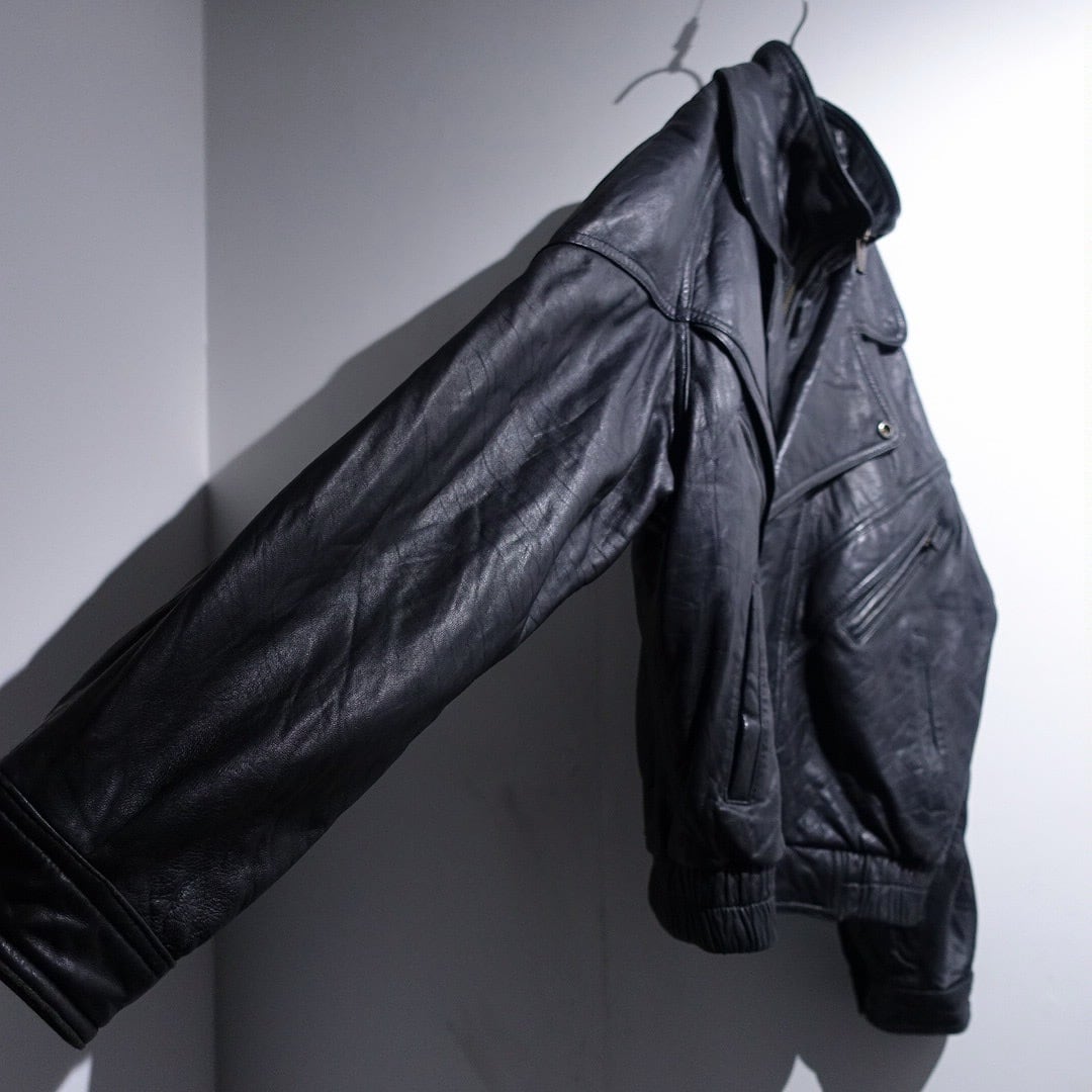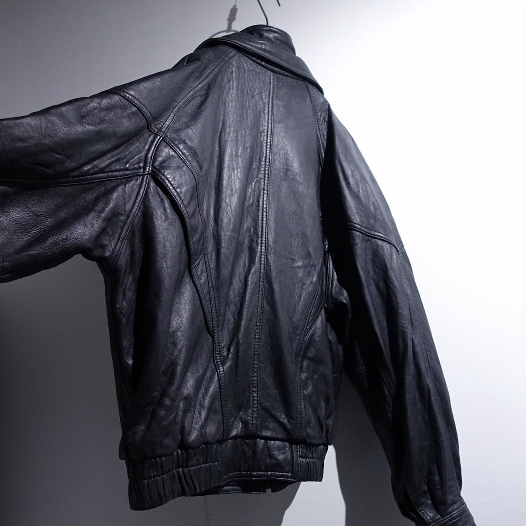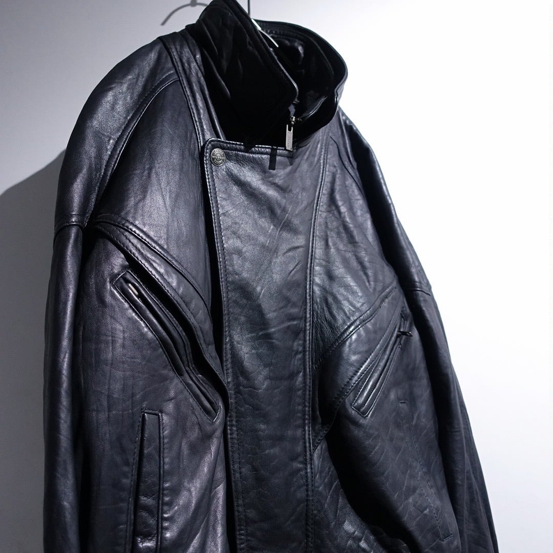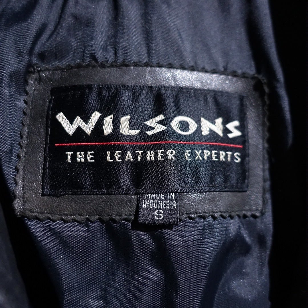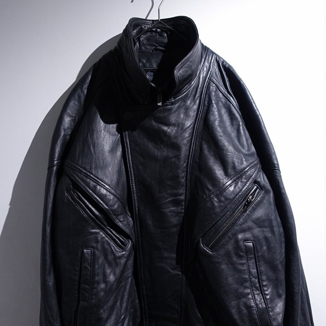 90s "WILSONS" Black Leather Layered Neck Design Blouson