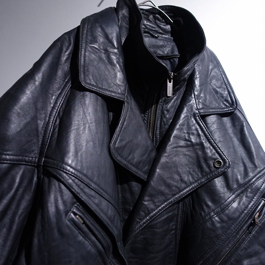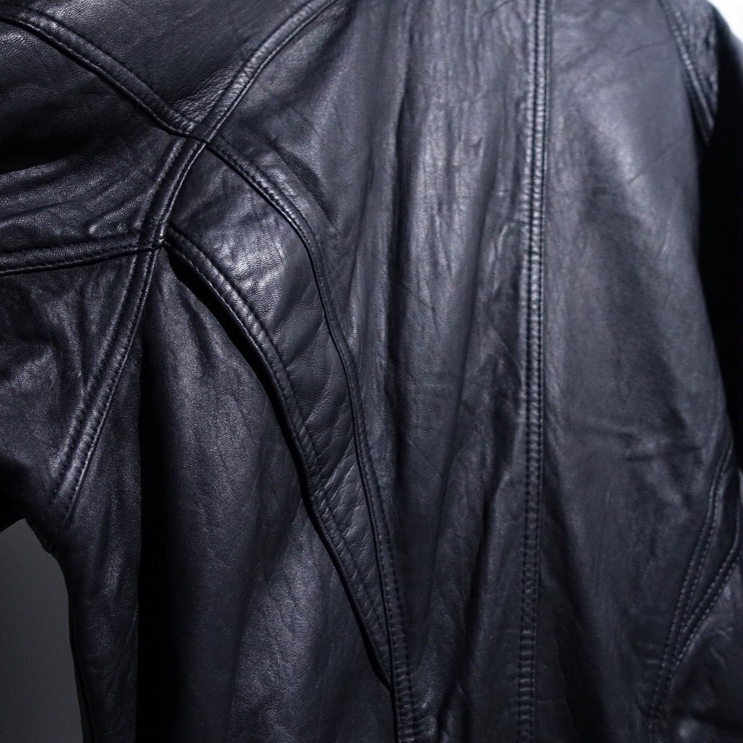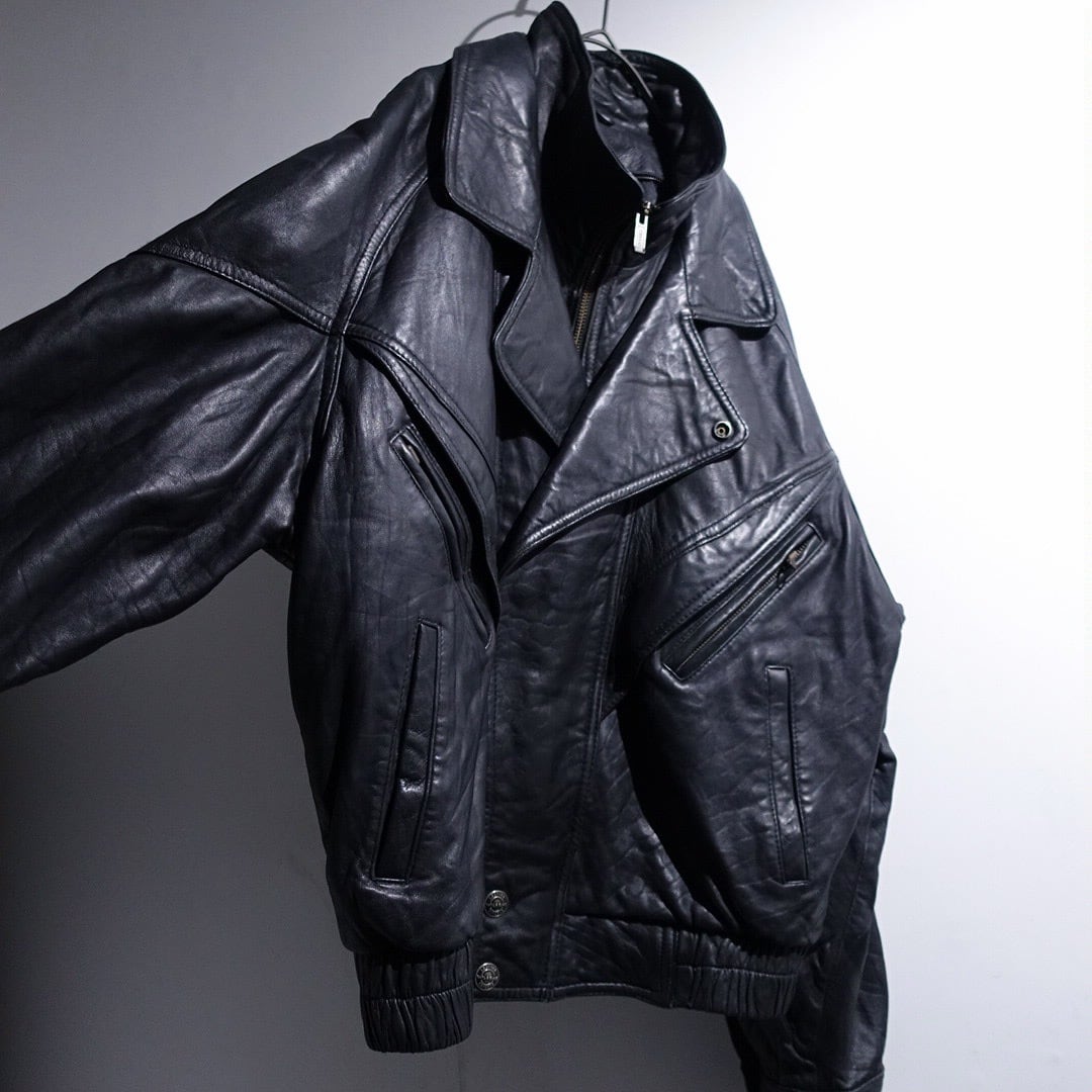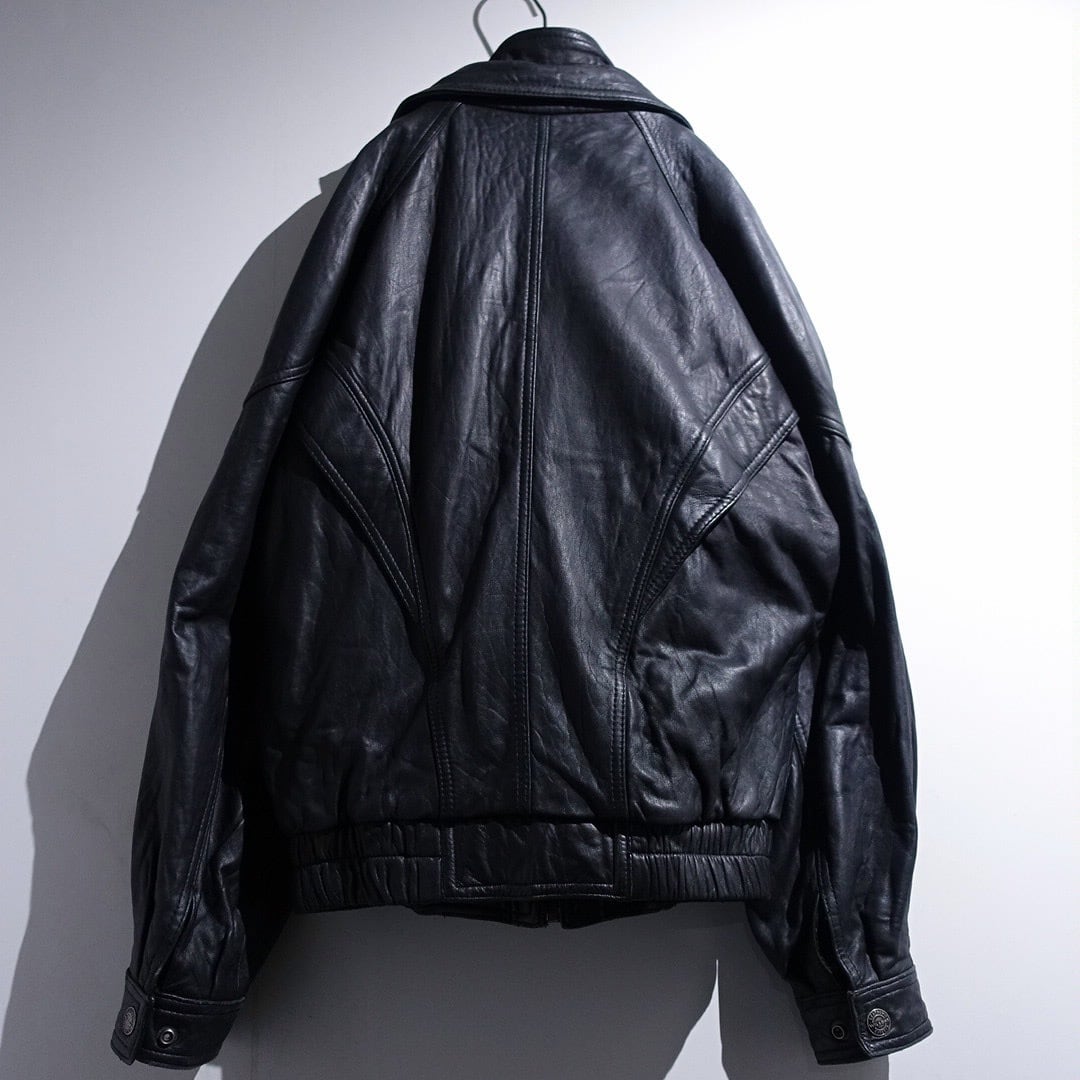 90s "WILSONS" Black Leather Layered Neck Design Blouson
