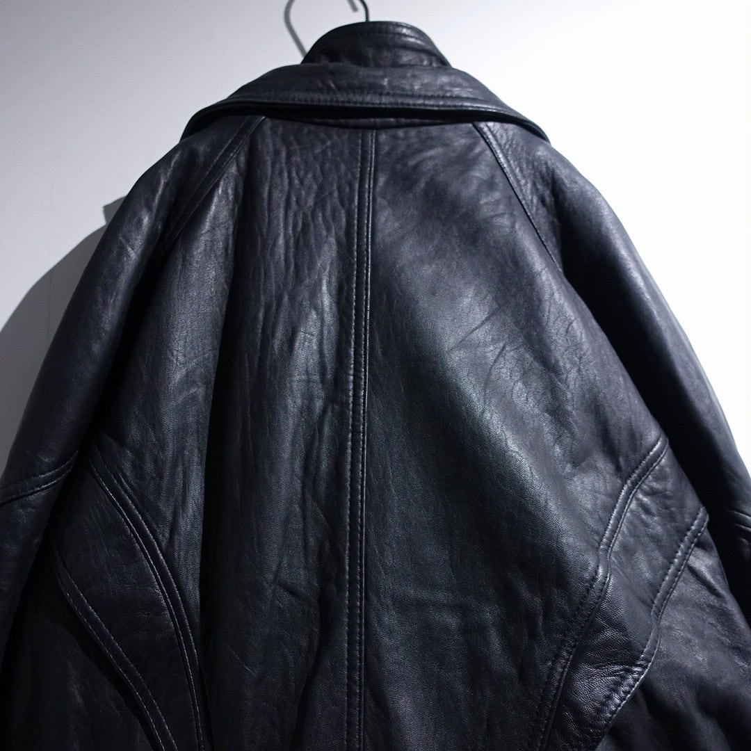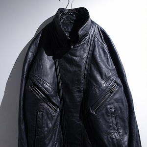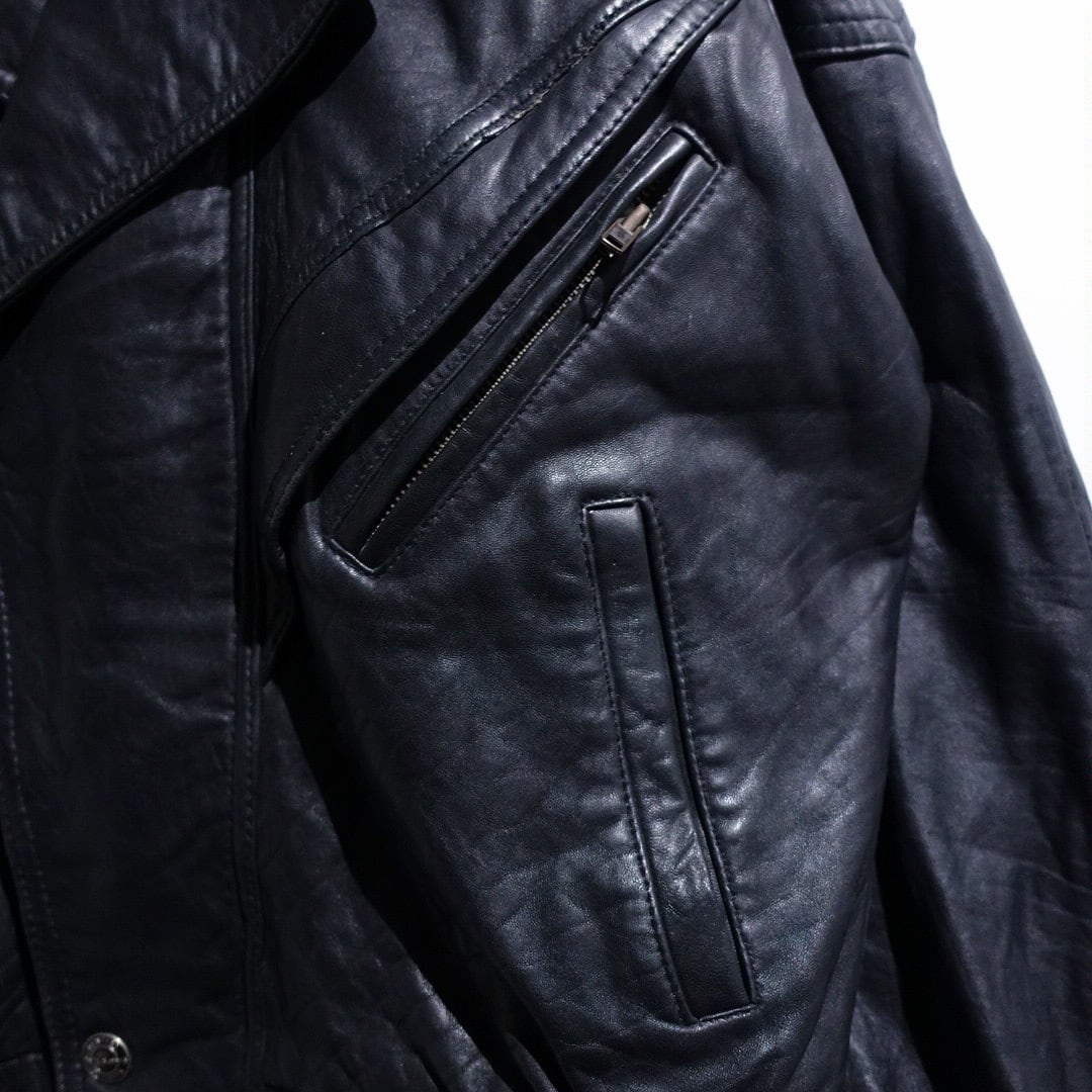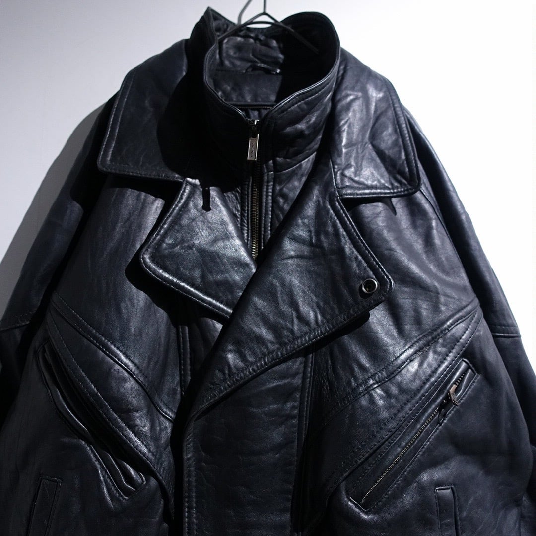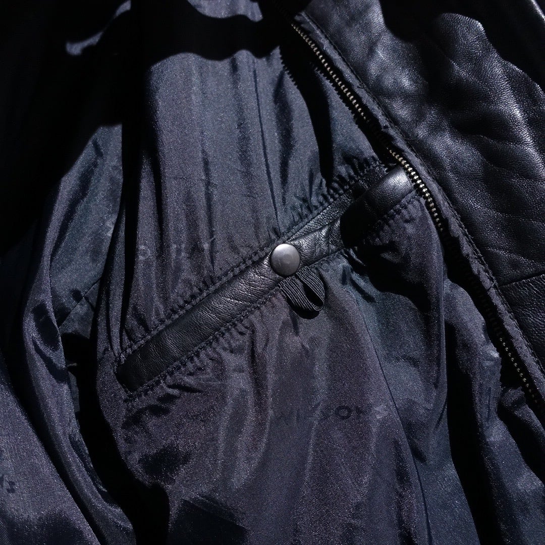 90s "WILSONS" Black Leather Layered Neck Design Blouson