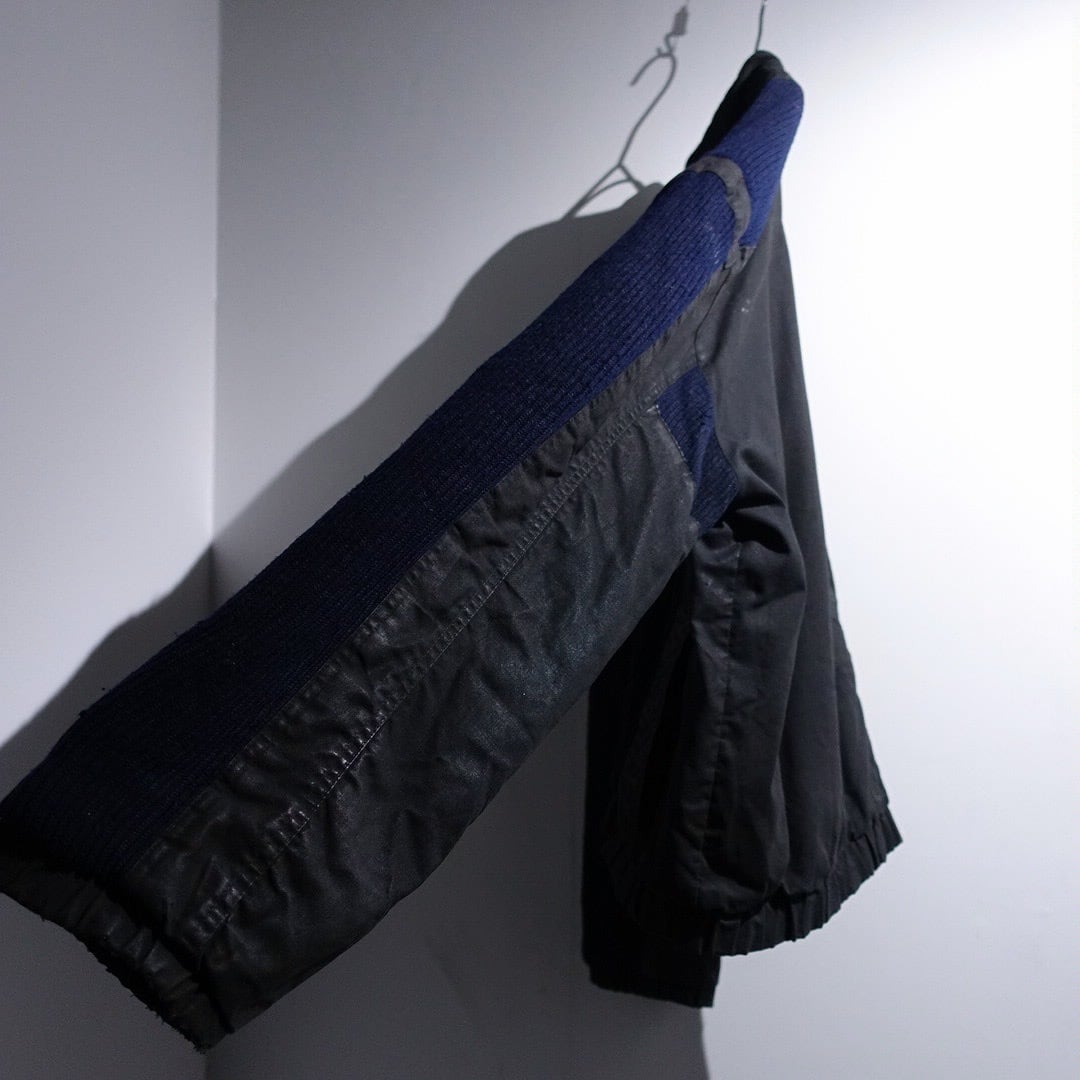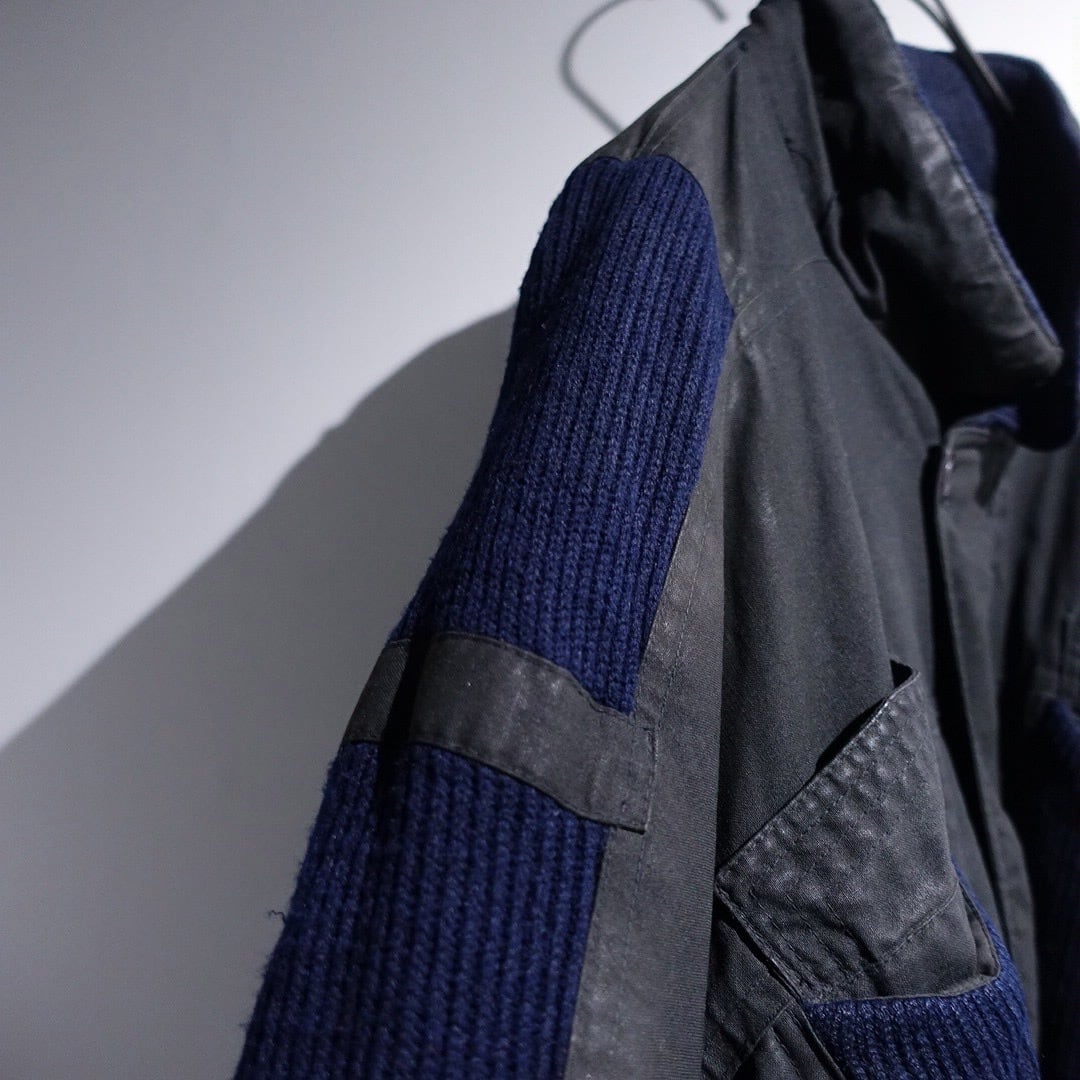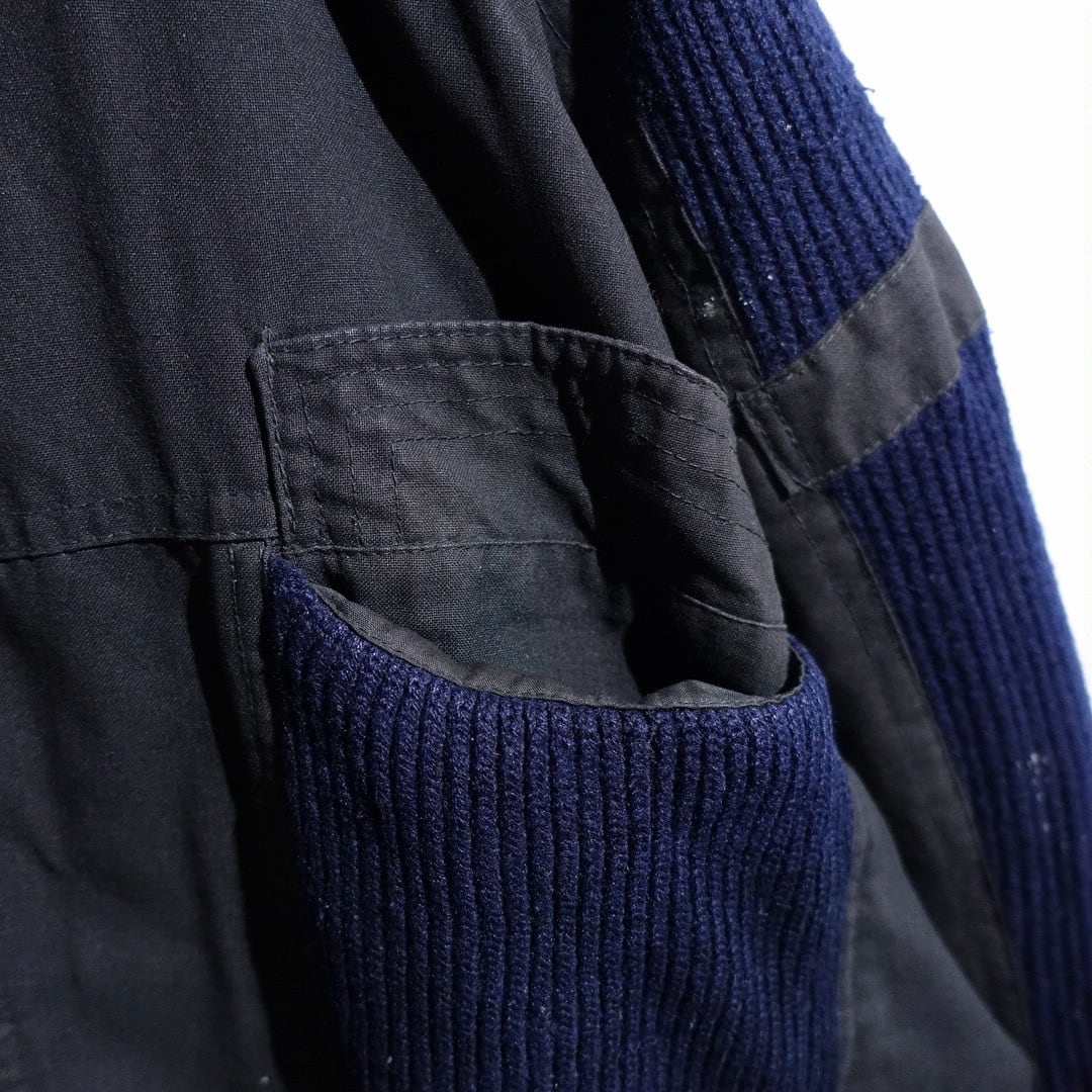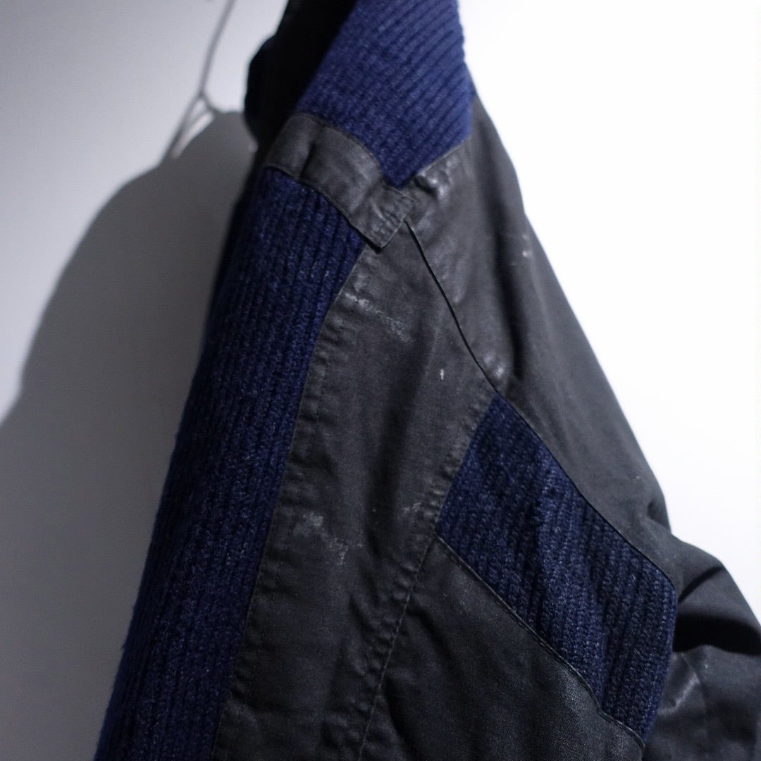90s Charcoal Gray & Navy Knit Switching Design Jacket