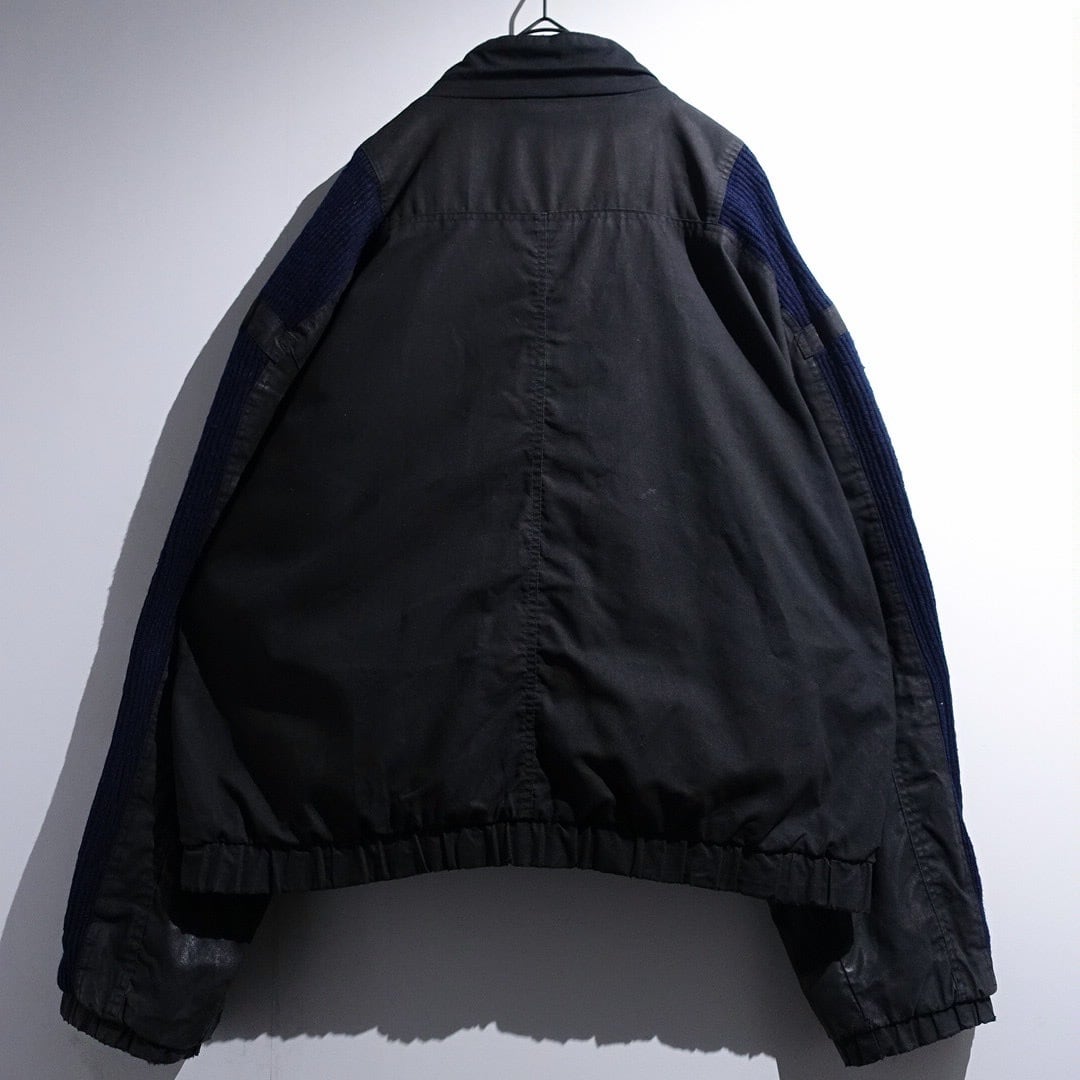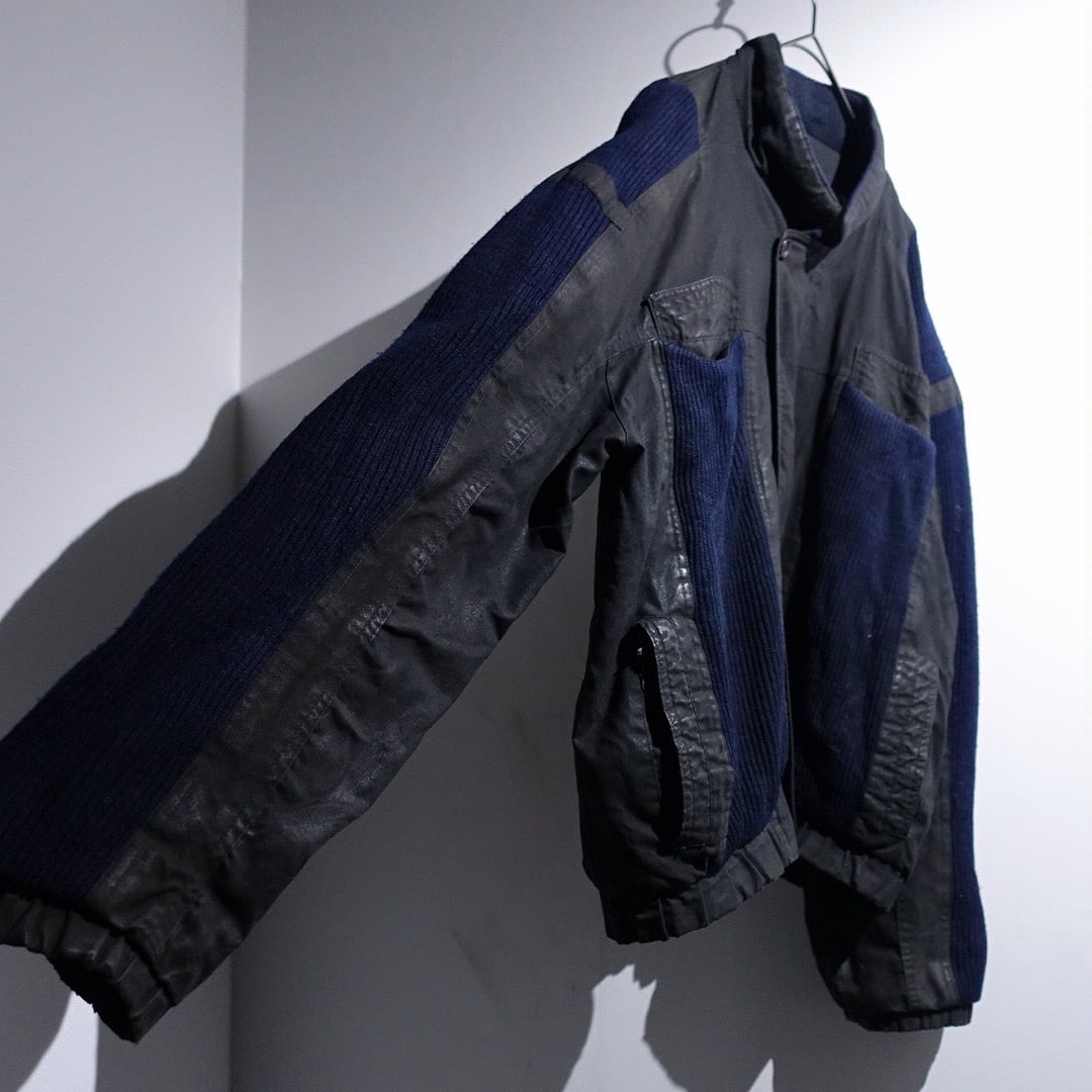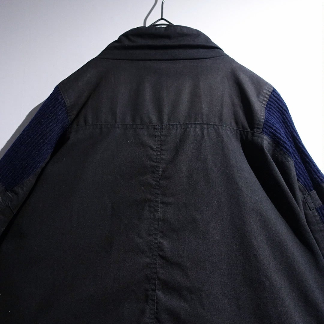 90s Charcoal Gray & Navy Knit Switching Design Jacket