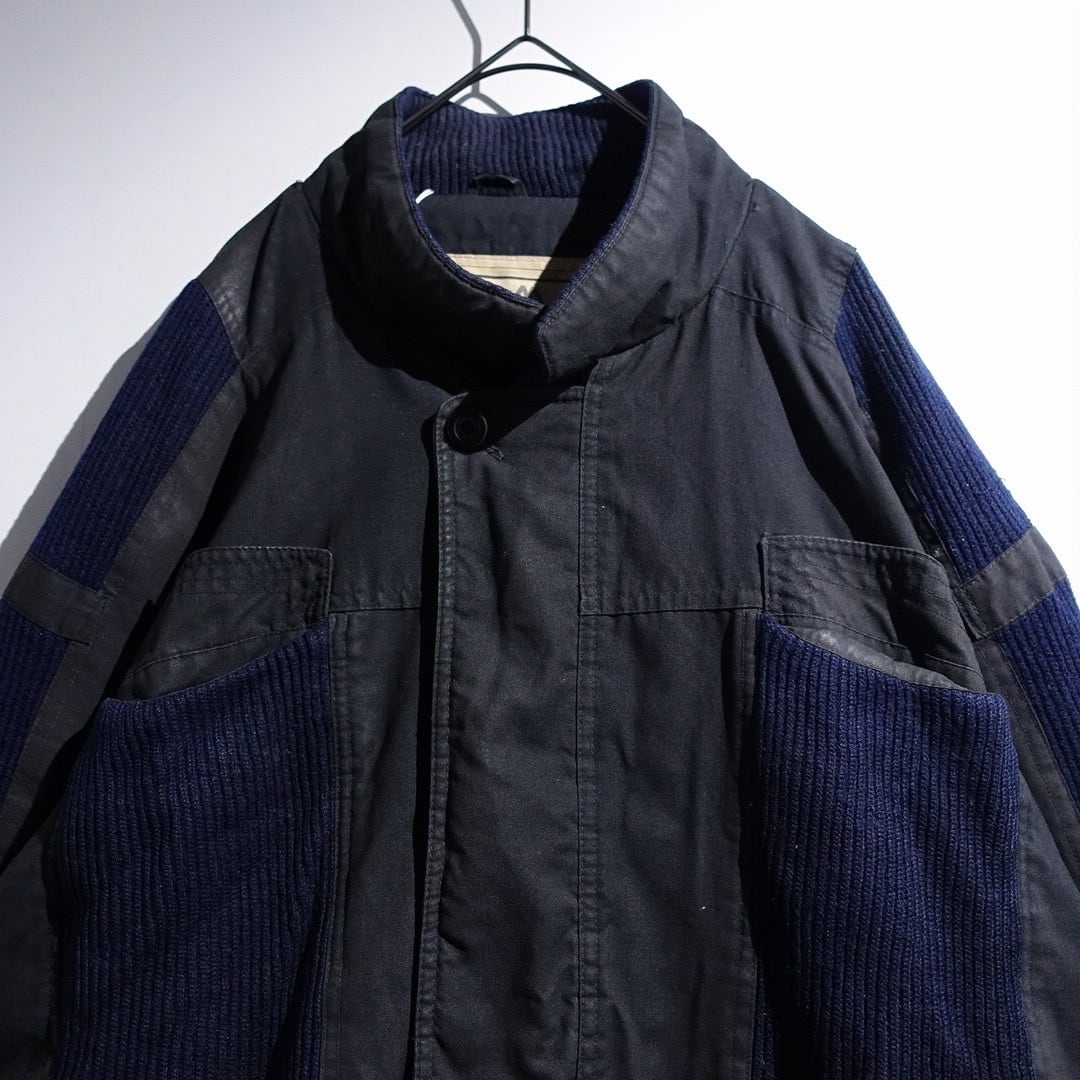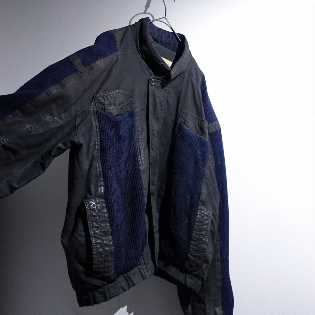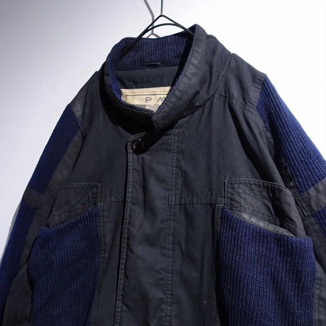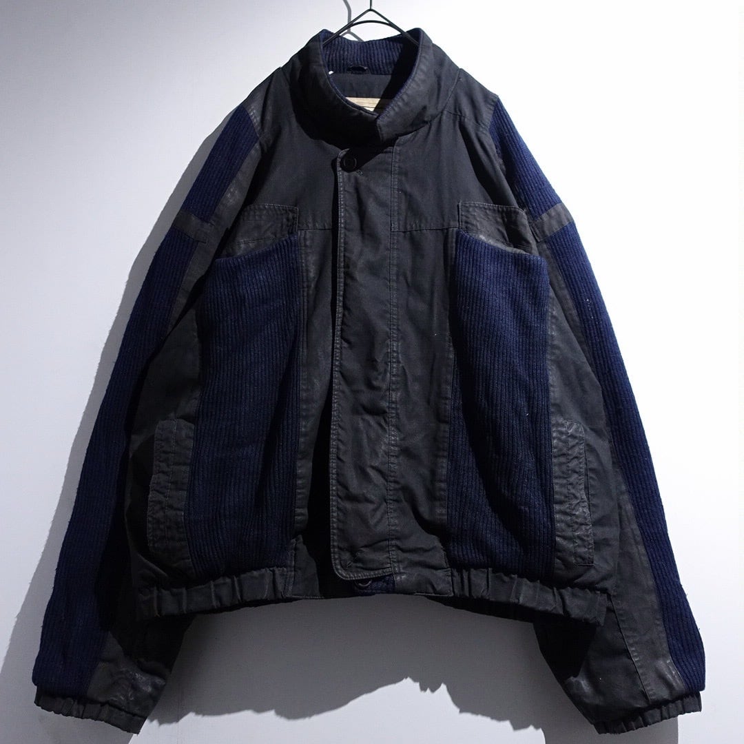 90s Charcoal Gray & Navy Knit Switching Design Jacket