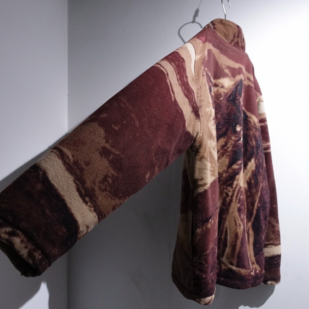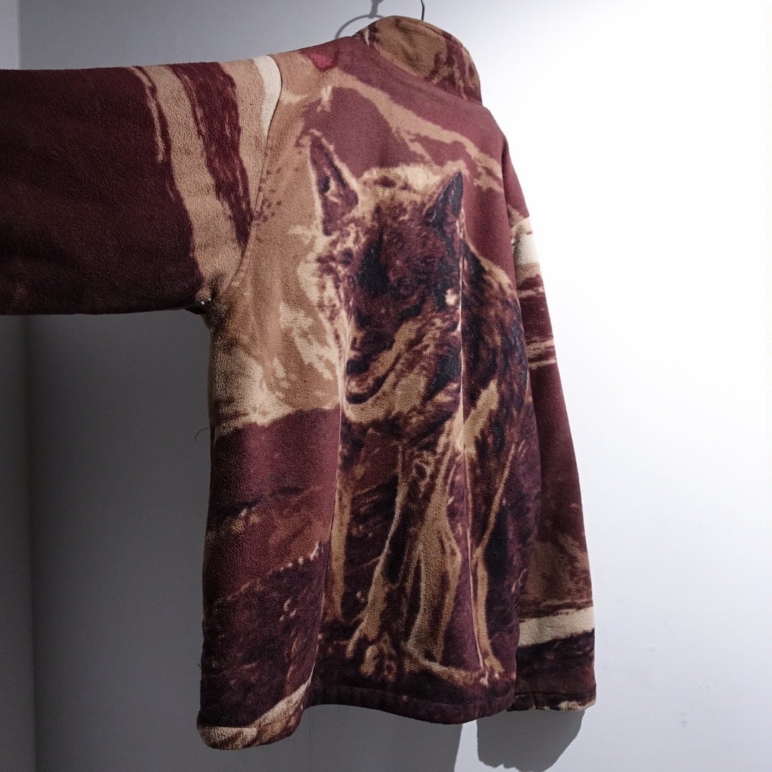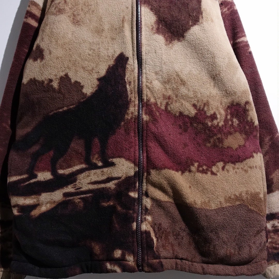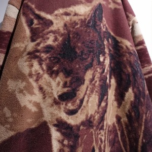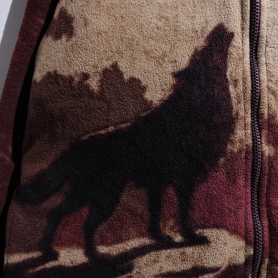 90s Multicolor Wolf Motif Design Animal Fleece Jacket