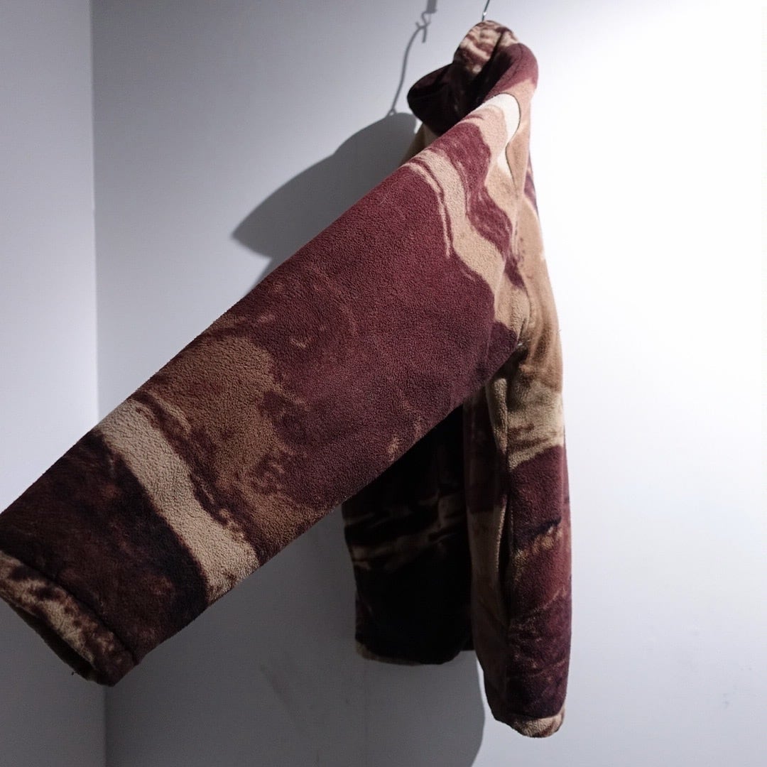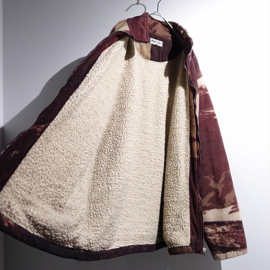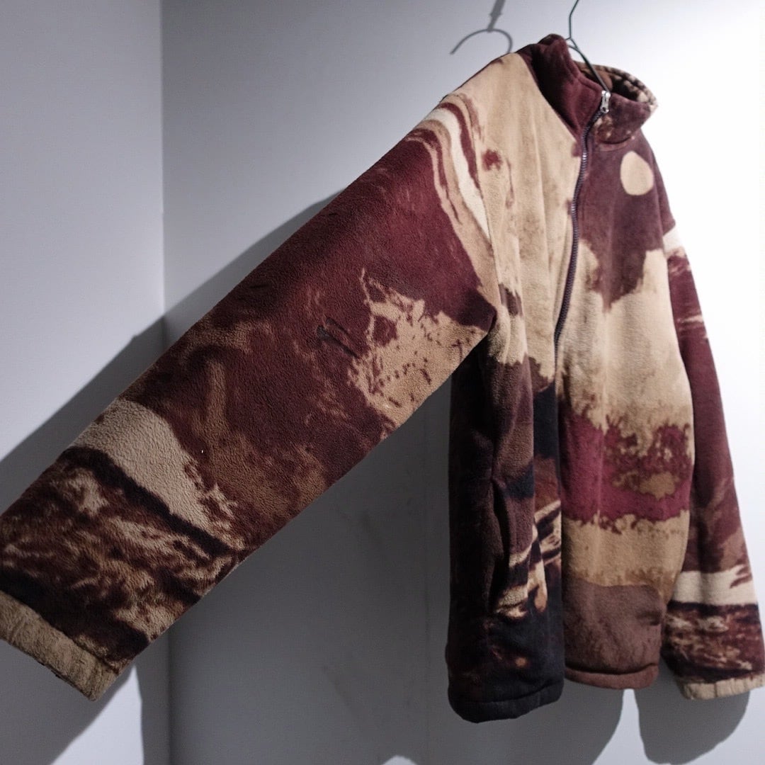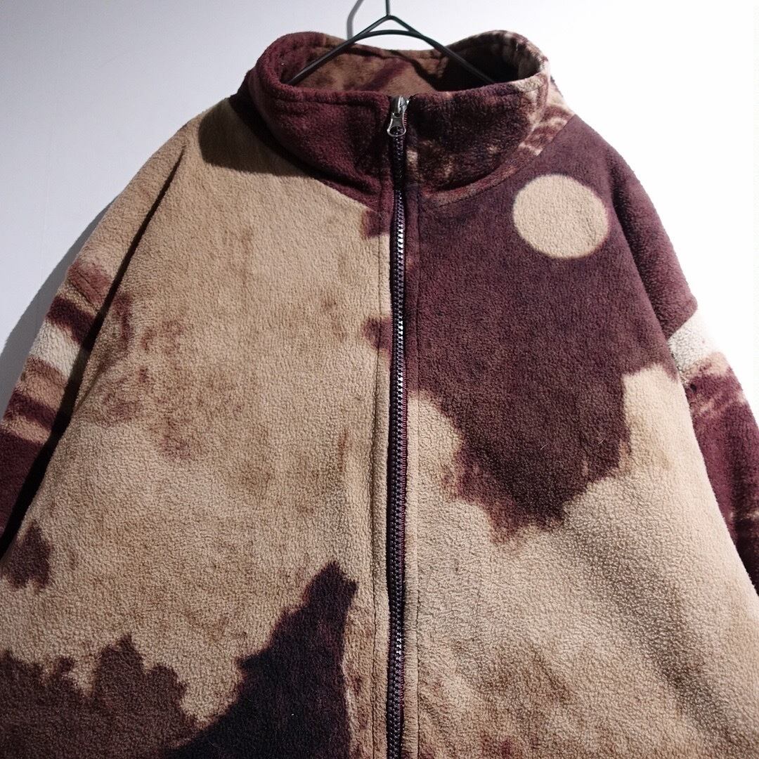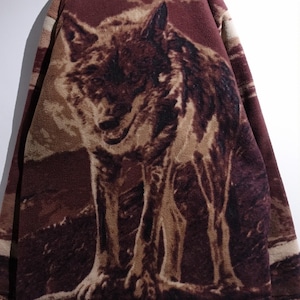 90s Multicolor Wolf Motif Design Animal Fleece Jacket