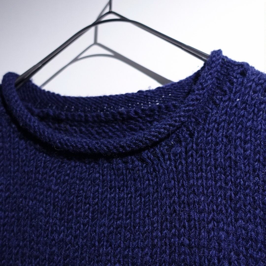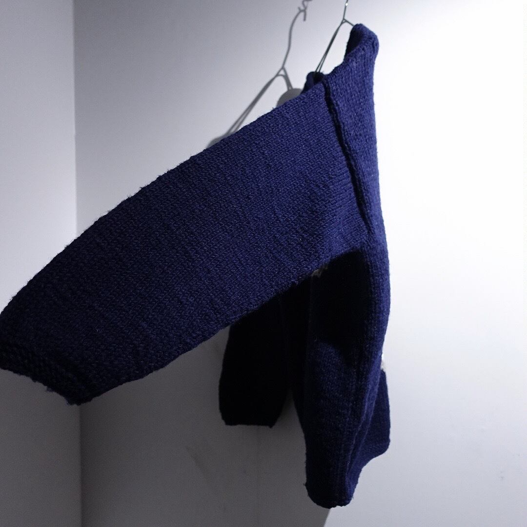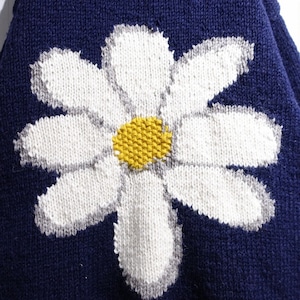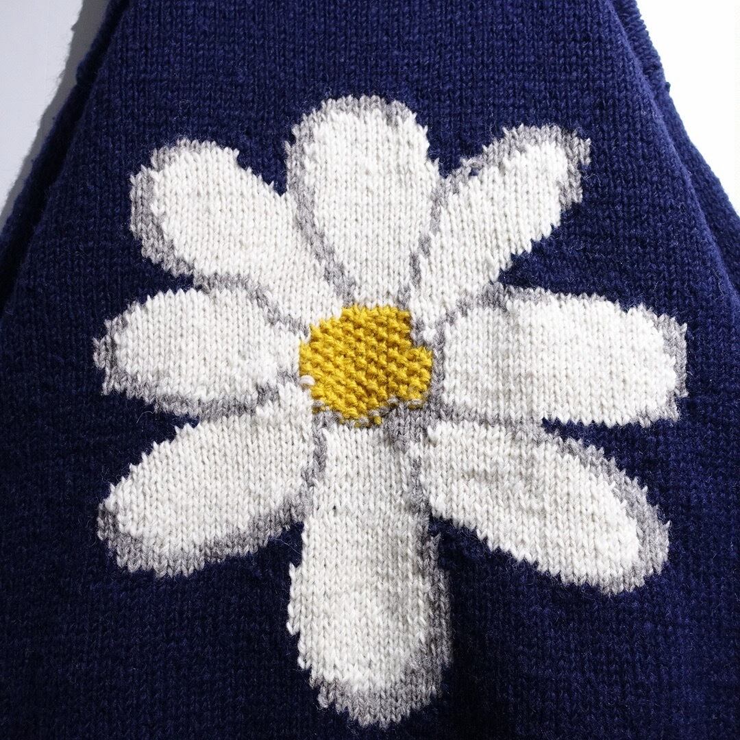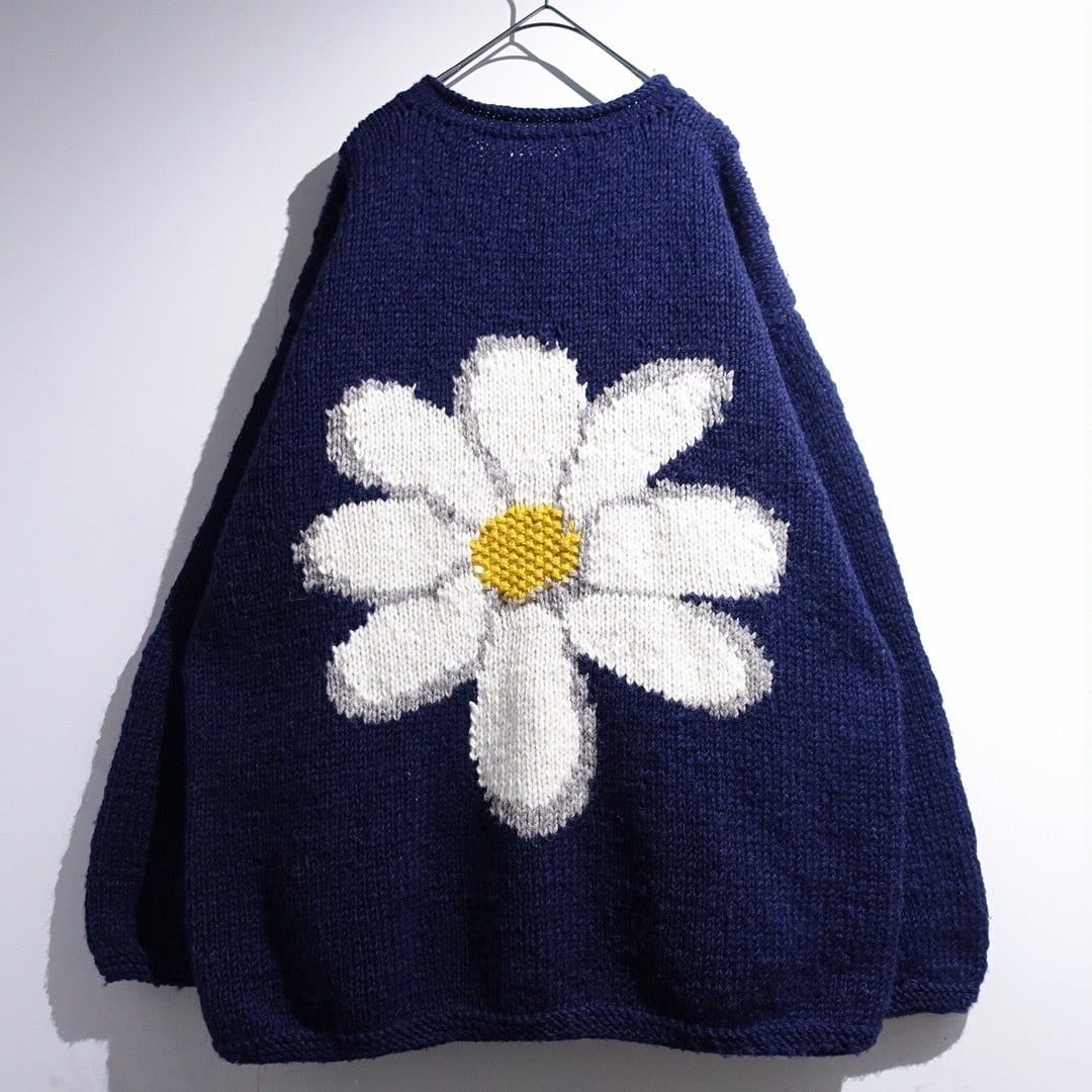 Navy Big Flower Motif Design Wool Ecuador Knit