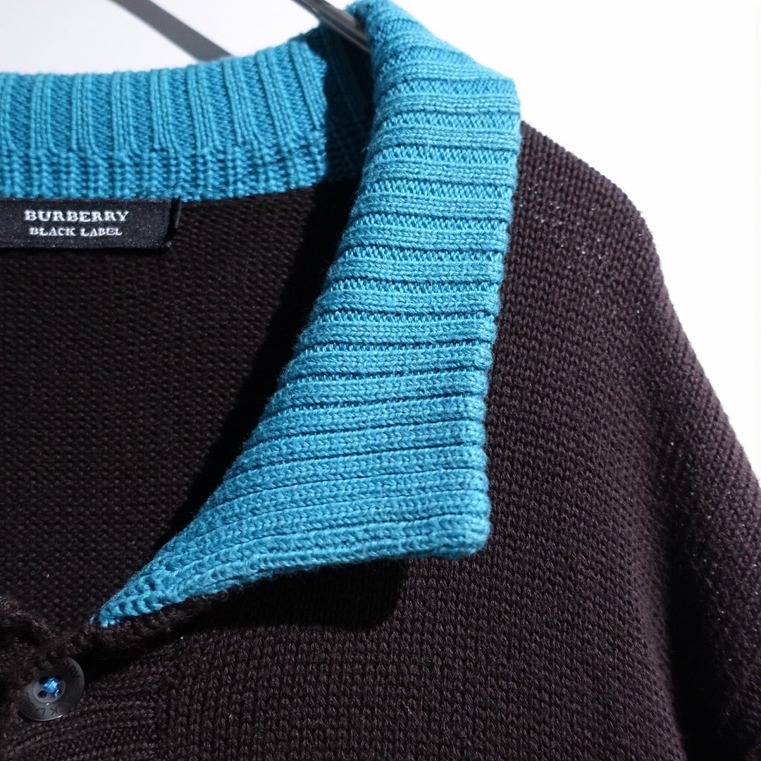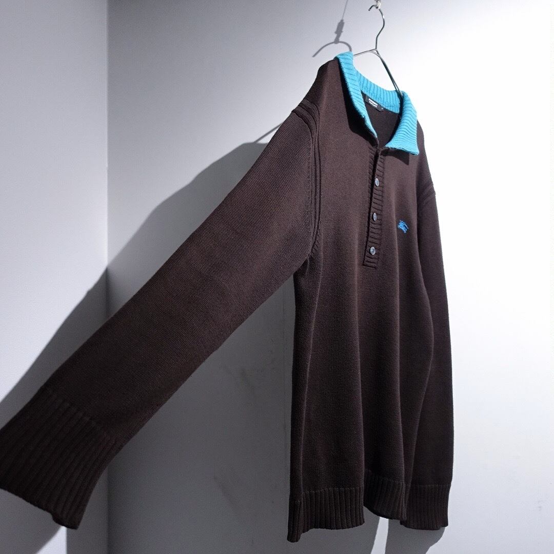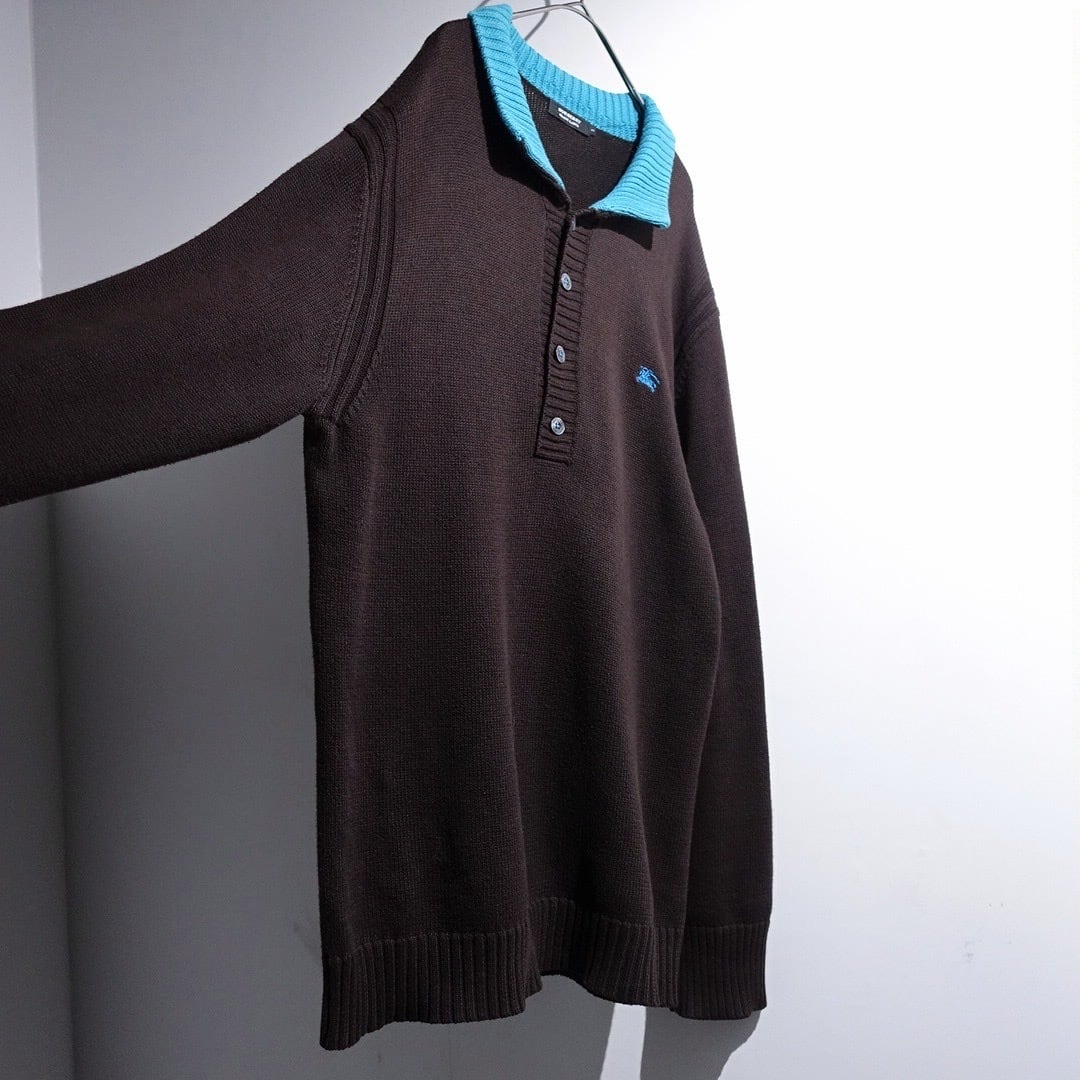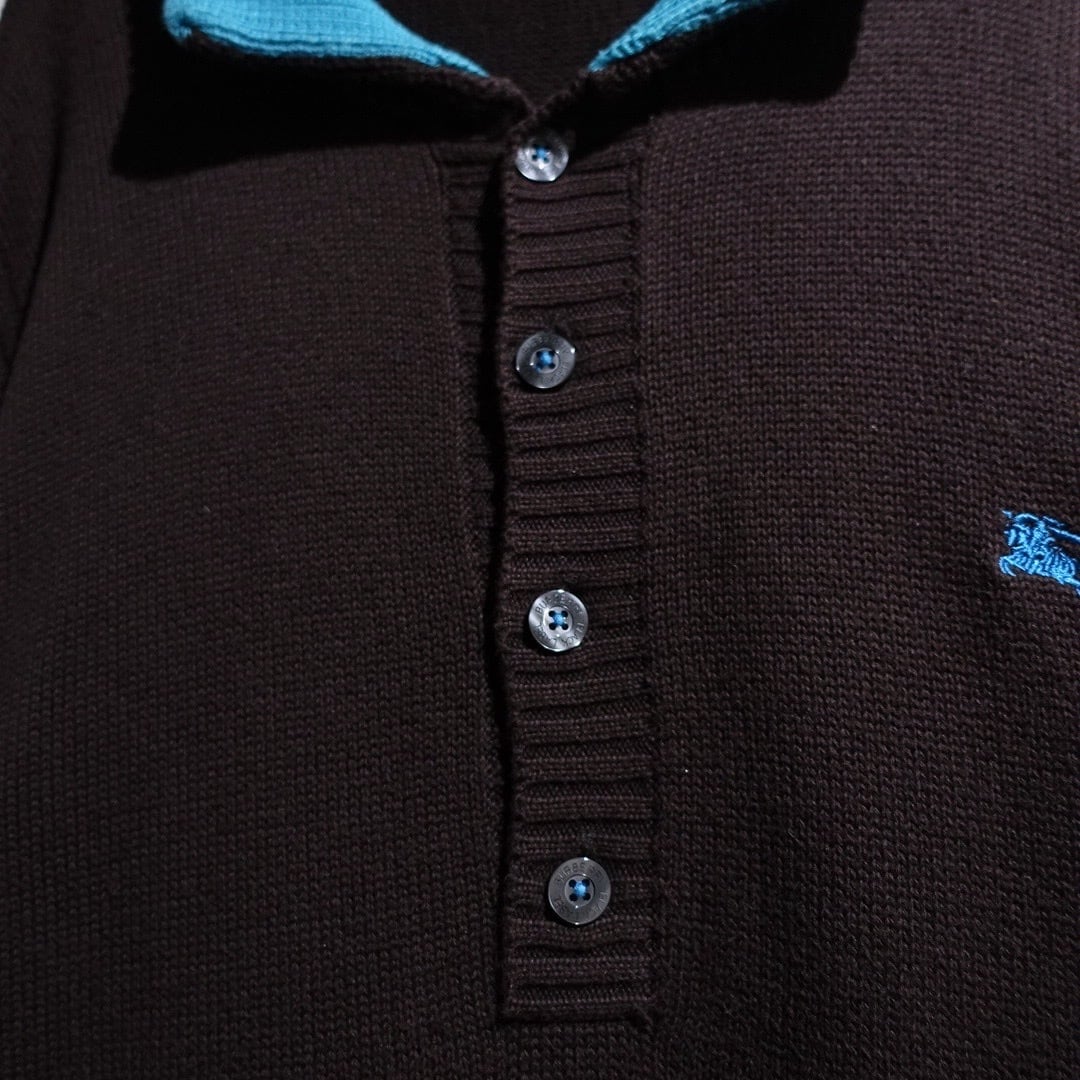 "Burberry" Brown × Light Blue Logo Switching Design Cotton Knit Polo