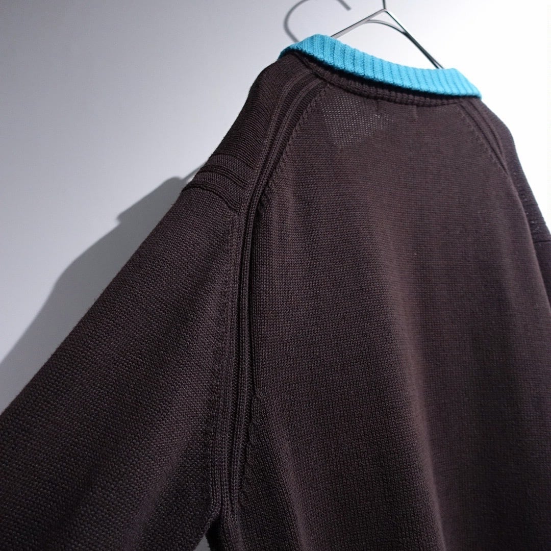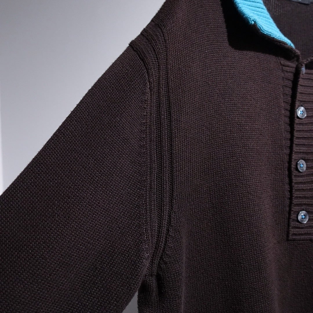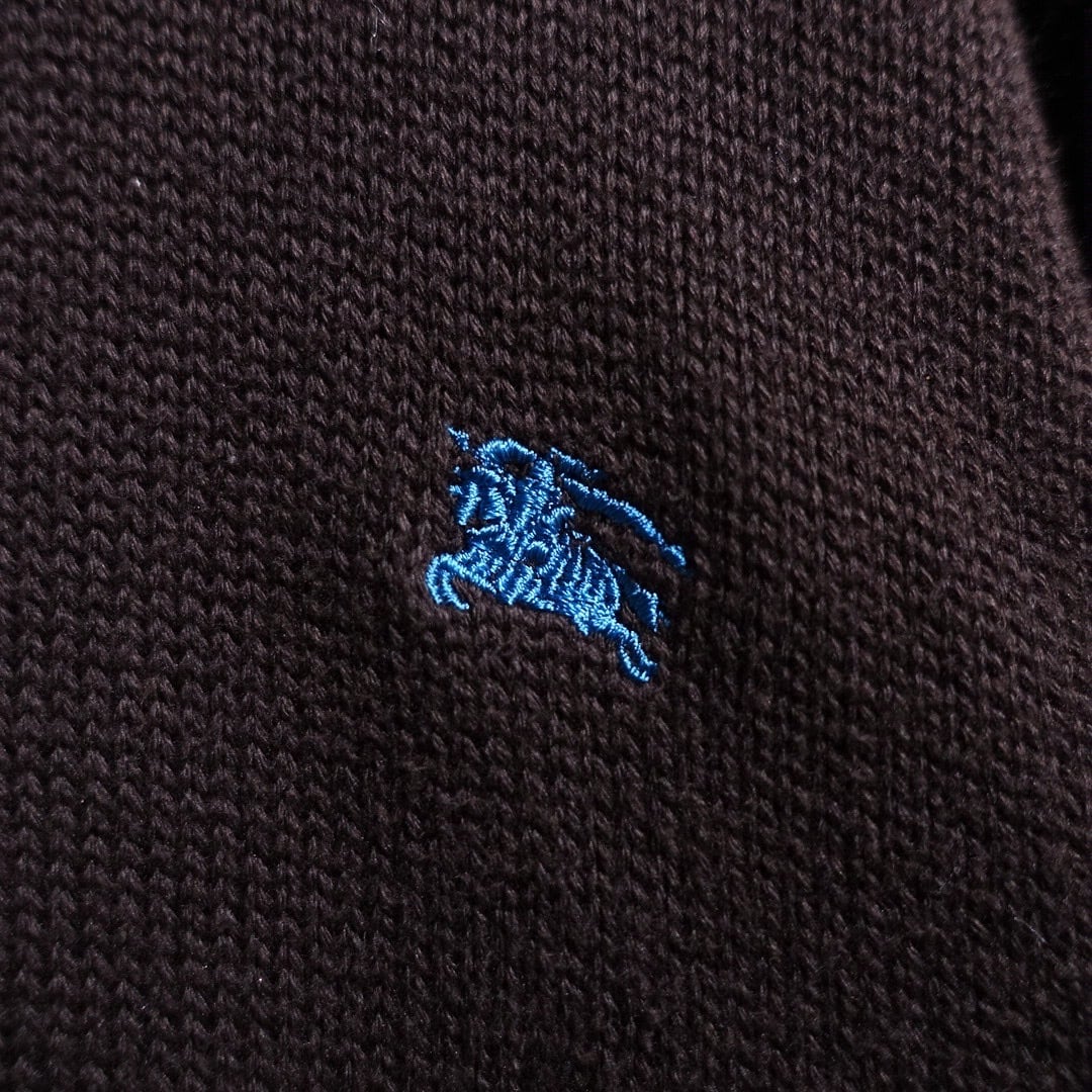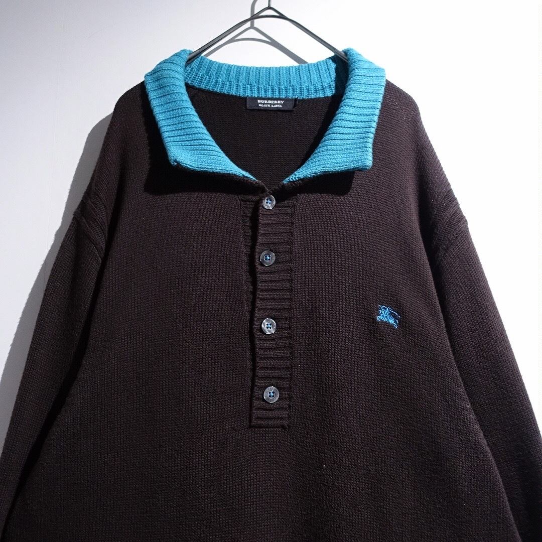 "Burberry" Brown × Light Blue Logo Switching Design Cotton Knit Polo