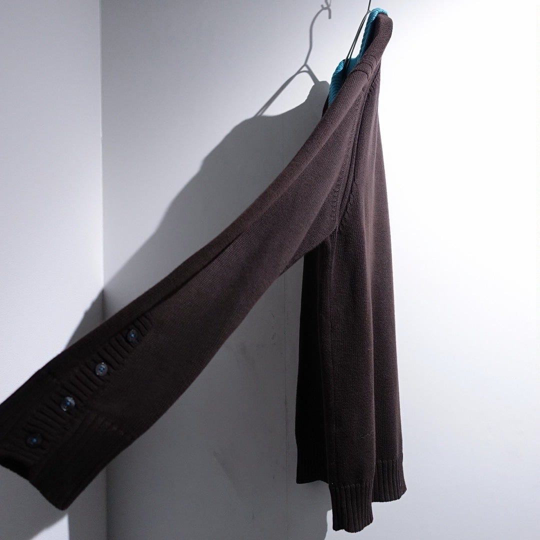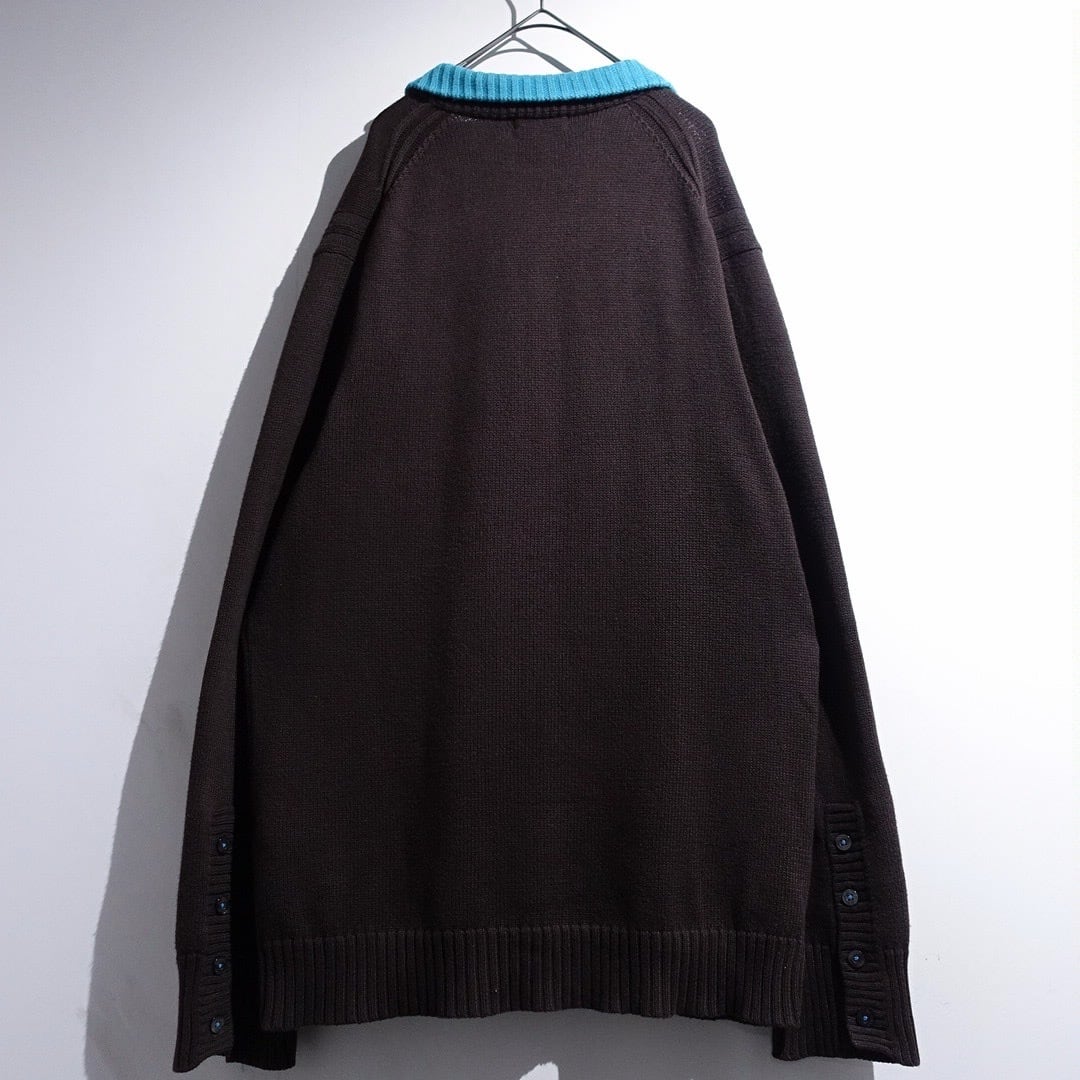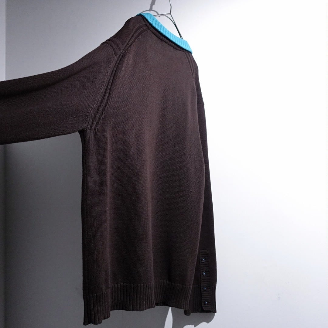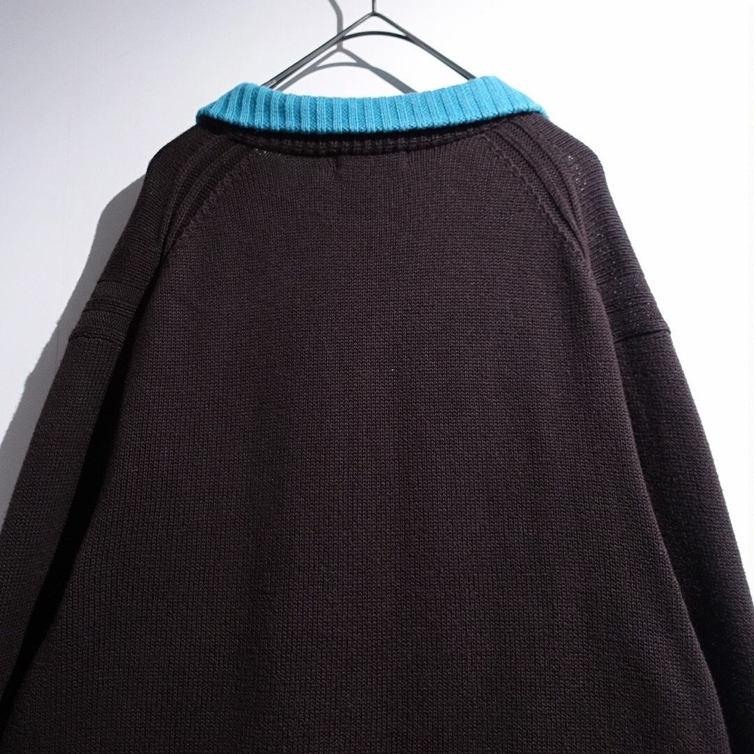 "Burberry" Brown × Light Blue Logo Switching Design Cotton Knit Polo