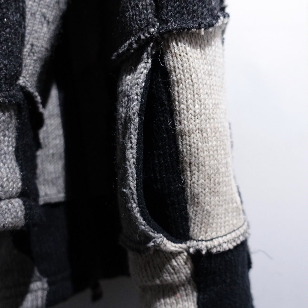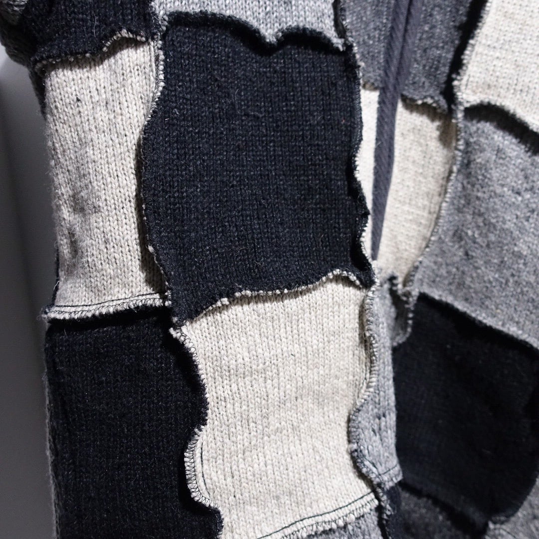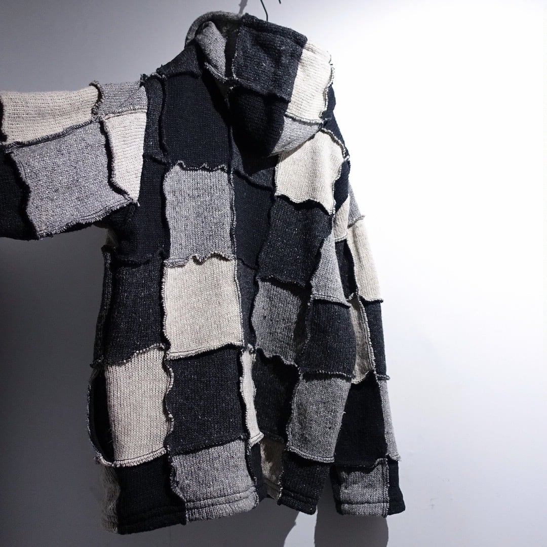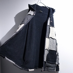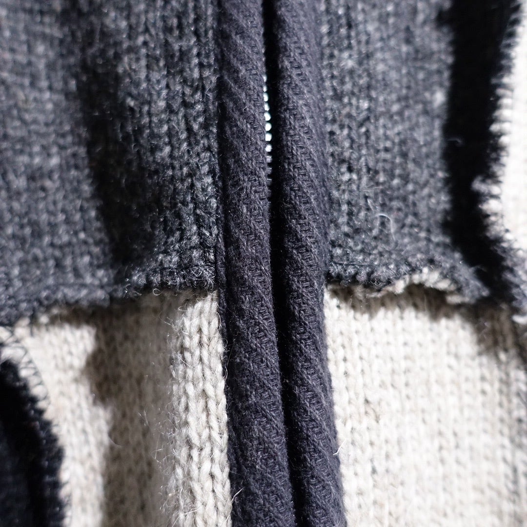 Monotone Patchwork 3D Design Wool Knit Zip Parka