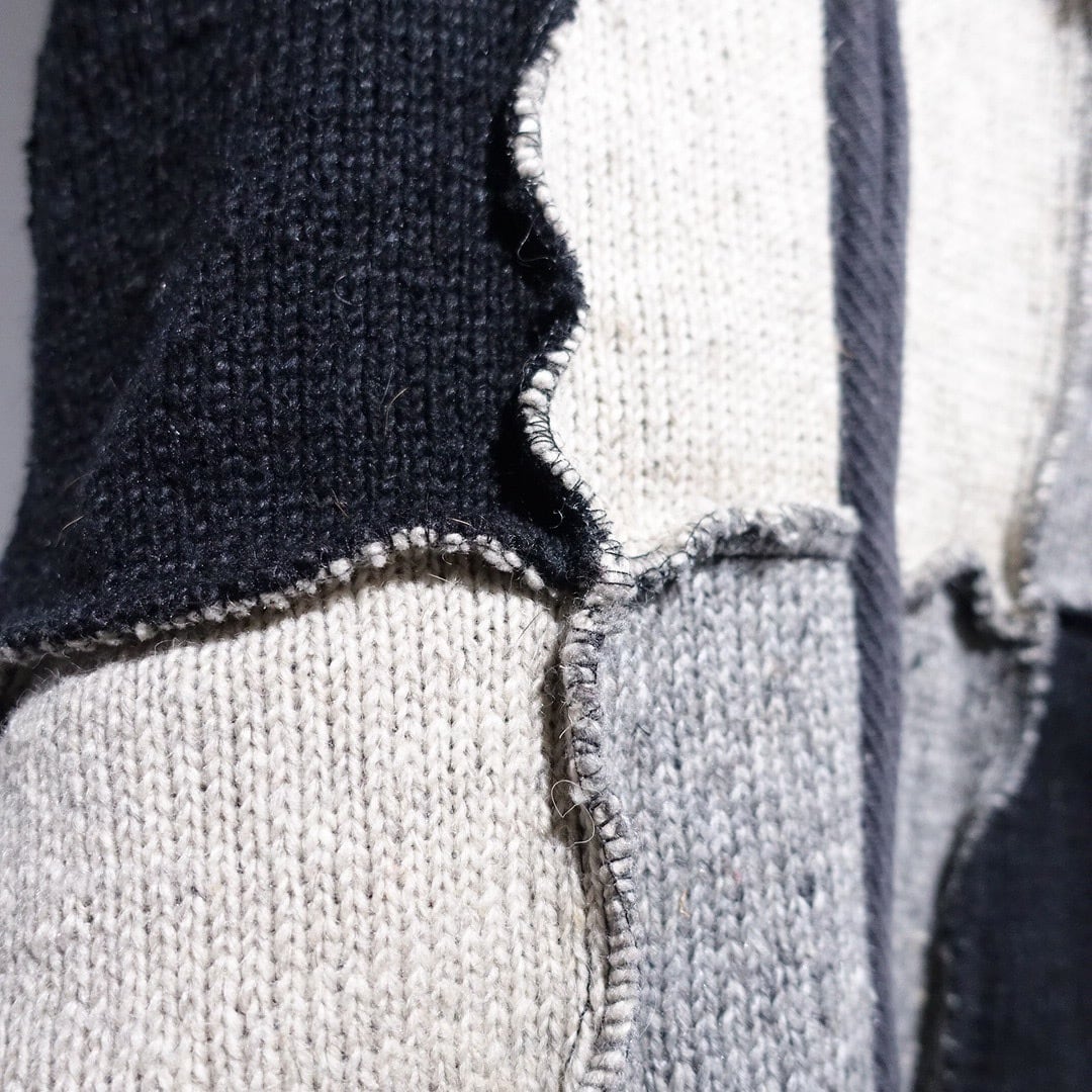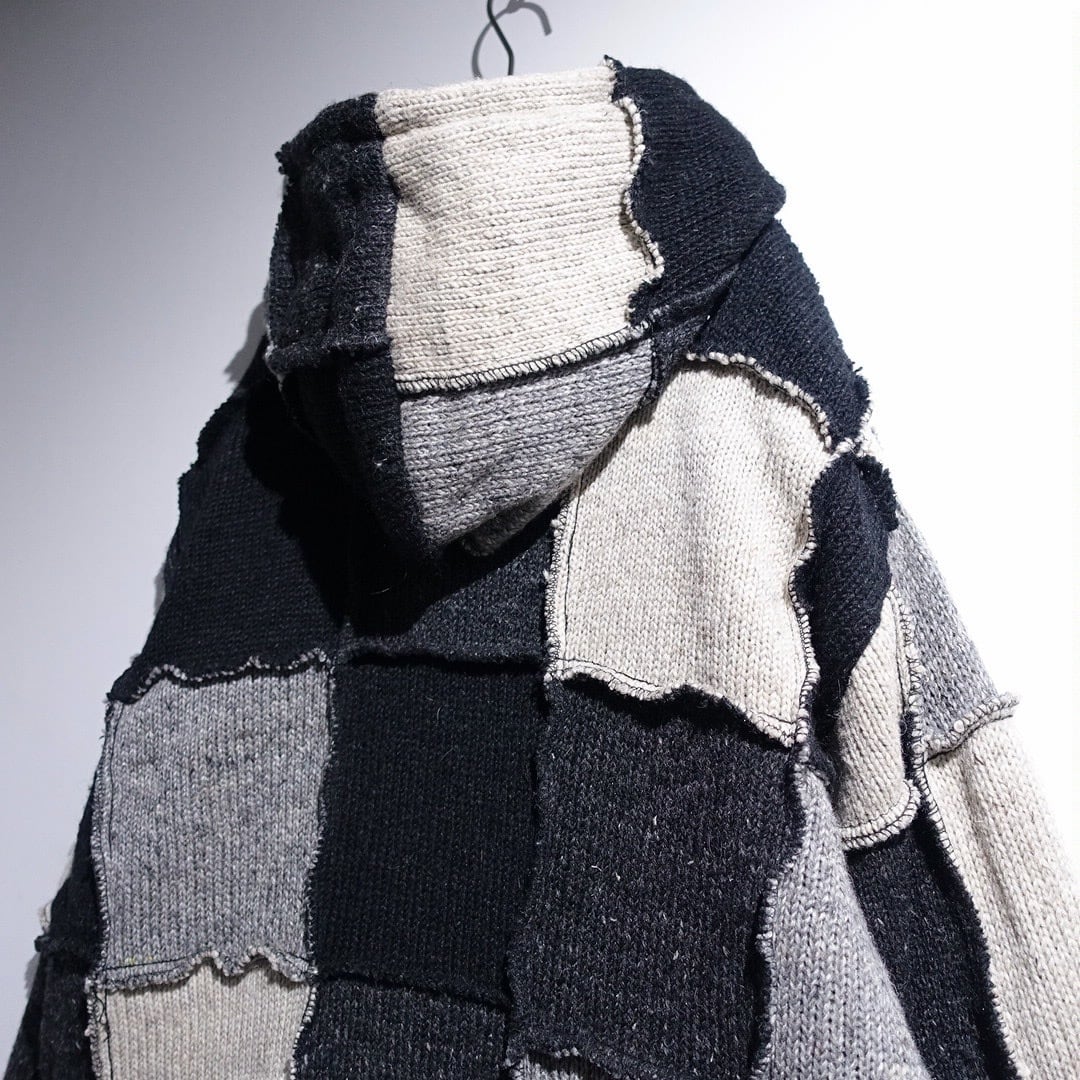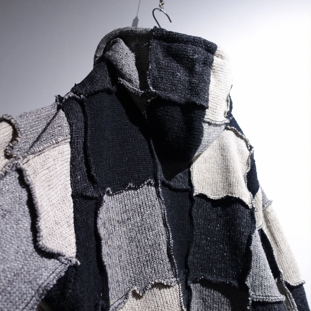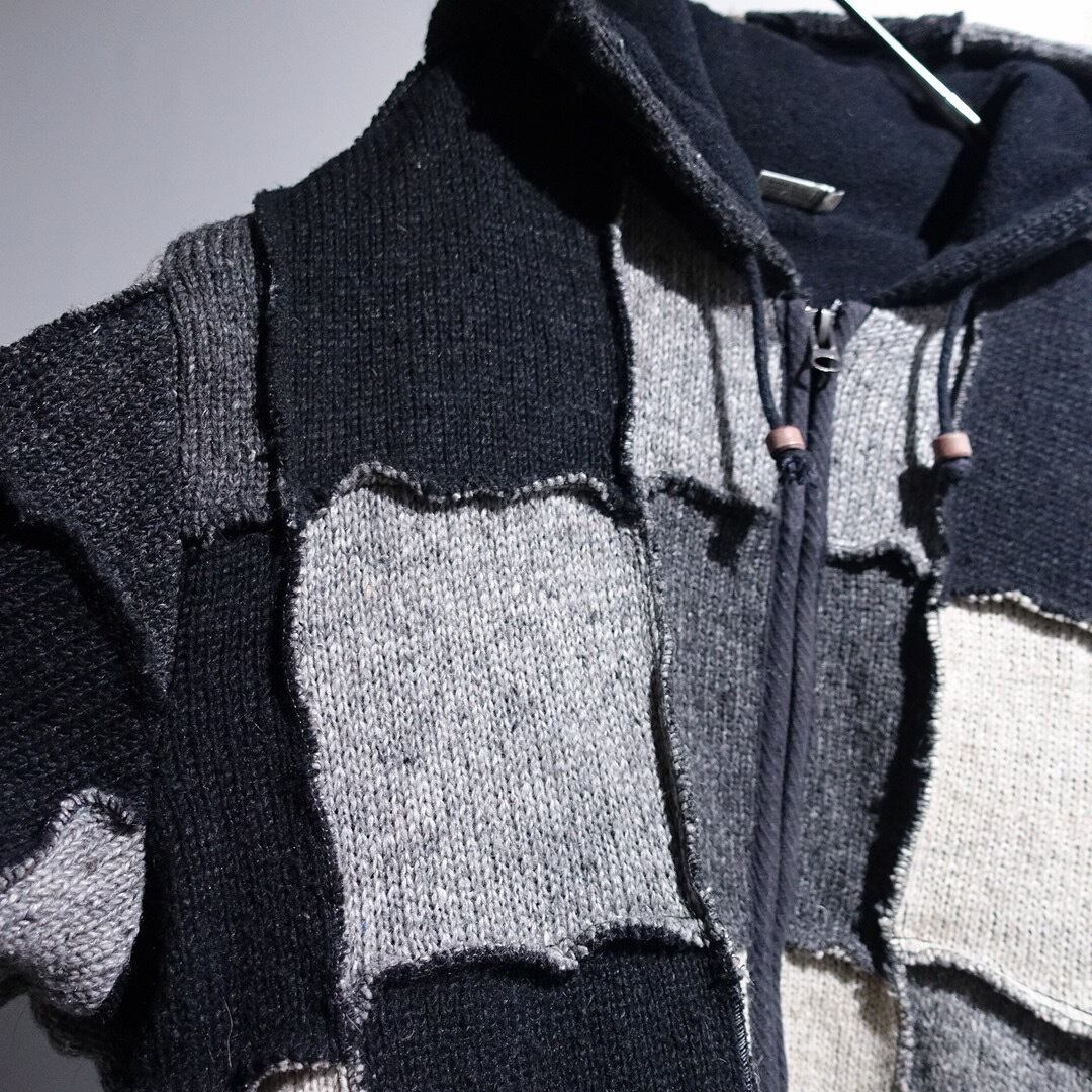 Monotone Patchwork 3D Design Wool Knit Zip Parka