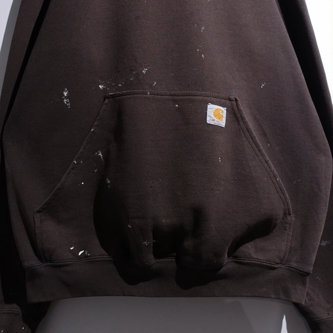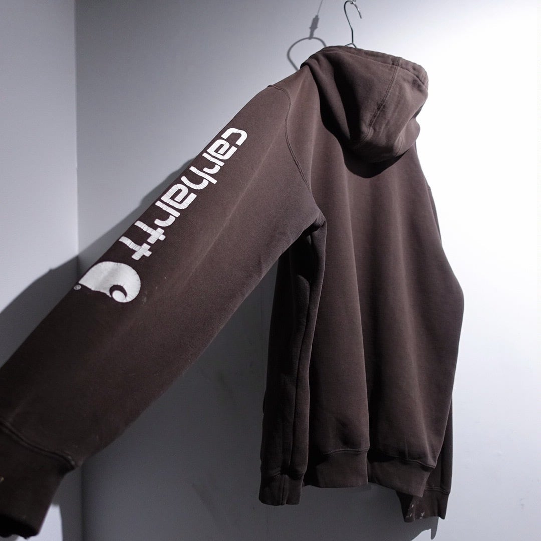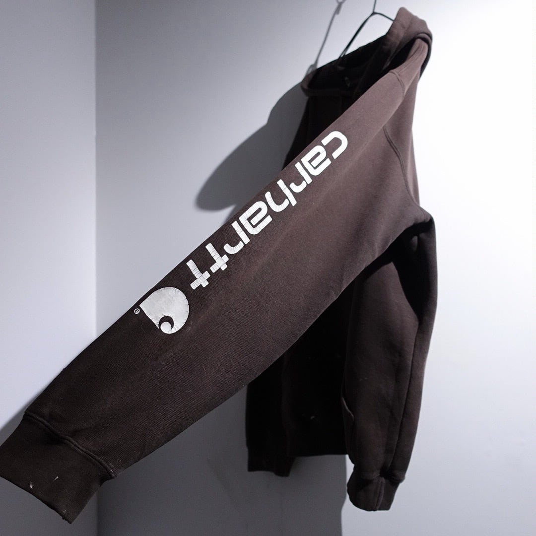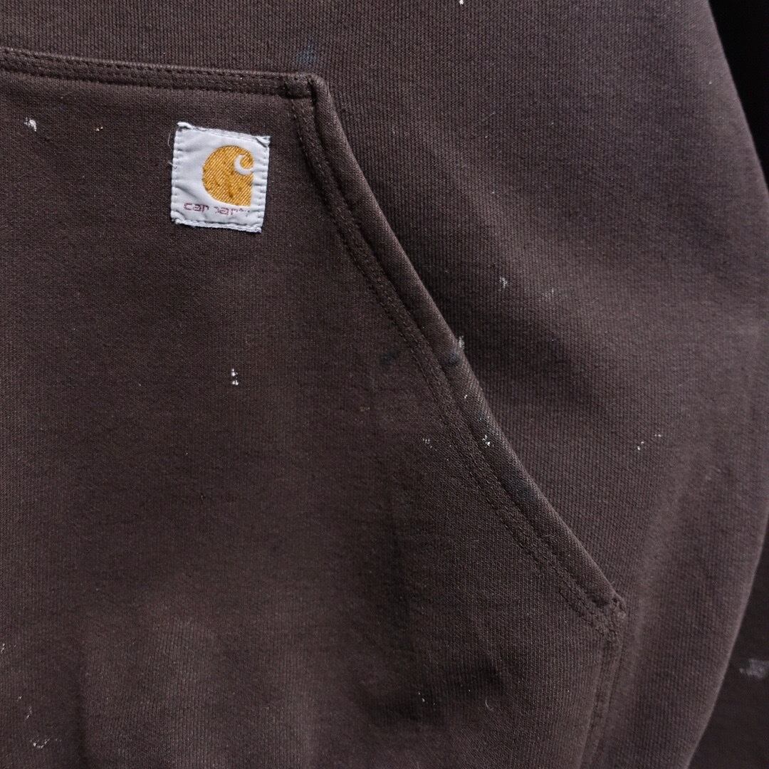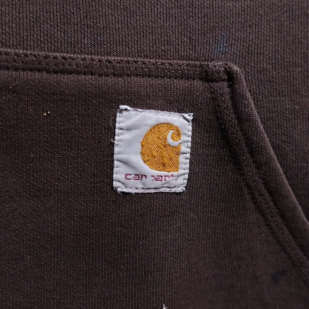 "Carhartt" Brown Faded Paint Logo Design Sweat Parka